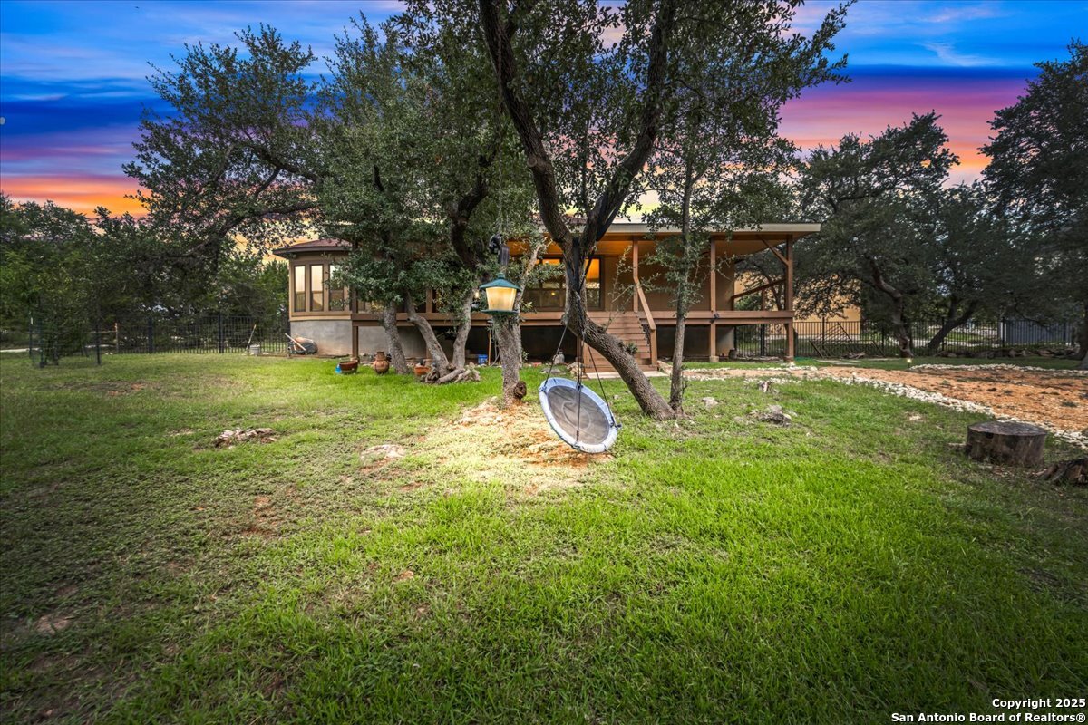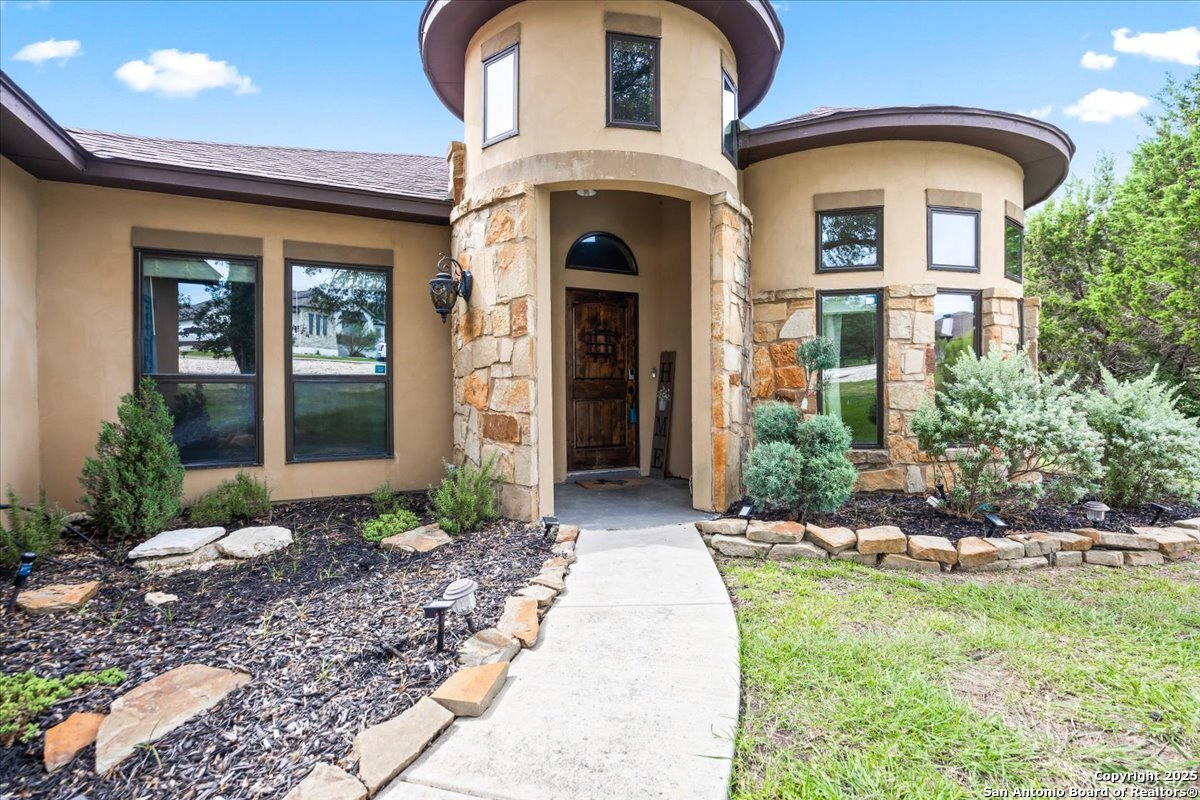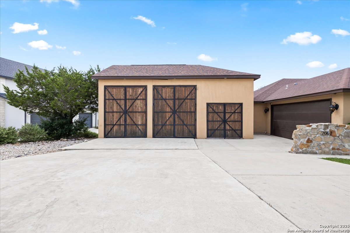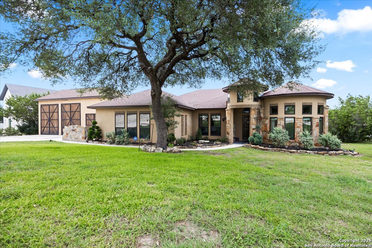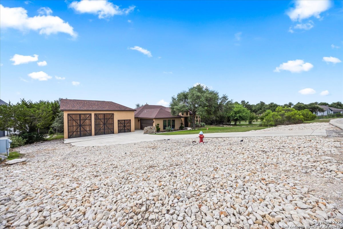 Elegant 1-Story Hill Country Retreat with Custom Upgrades and Stunning Sunset Views! Situated on a serene 1.11-acre lot in the sought-after Vintage Oaks community, this custom 5-bedroom, 3-bathroom home offers an unparalleled blend of luxury and functionality. With meticulous attention to detail and thoughtful upgrades throughout, this home is perfect for modern living and entertaining. A standout feature of this property is the brand-new detached 3-car garage, complete with 12-ft doors-ideal for accommodating larger vehicles, storage, or a workshop. Meanwhile, the original attached garage has been expertly converted into a fully climate-controlled space with ductwork, air conditioning, and heating, providing endless possibilities as a home gym, studio, or additional living area. The gourmet kitchen serves as the heart of the home, featuring a grand center island, high-level granite countertops, a 5-burner gas cooktop, black stainless steel Samsung appliances, and barstool seating. The open concept design effortlessly connects the kitchen to the dining, living, and outdoor spaces, making it perfect for entertaining. The luxurious owner's retreat is a true sanctuary, offering a sitting area filled with natural light, private patio access, and an en-suite bathroom with a walk-in shower, Jacuzzi tub, dual vanities, and an oversized walk-in closet. A private media room, accessed through charming double barn doors, provides the perfect spot for movie nights and gatherings. Two secondary bedrooms at the front of the home feature walk-in closets and share a full bathroom, while two additional bedrooms are located near the owner's suite and share another full bath. The 5th bedroom offers versatility as a home office or virtual learning space. Step outside to enjoy breathtaking Hill Country views on the extended covered patio, complete with an outdoor kitchen featuring a fridge, sink, and grill-perfect for hosting BBQs. The expansive backyard deck offers even more space to relax and soak in the tranquility of your surroundings. This exceptional property combines high-quality craftsmanship, modern amenities, and a peaceful setting to create the ultimate Hill Country retreat. Schedule your tour today!