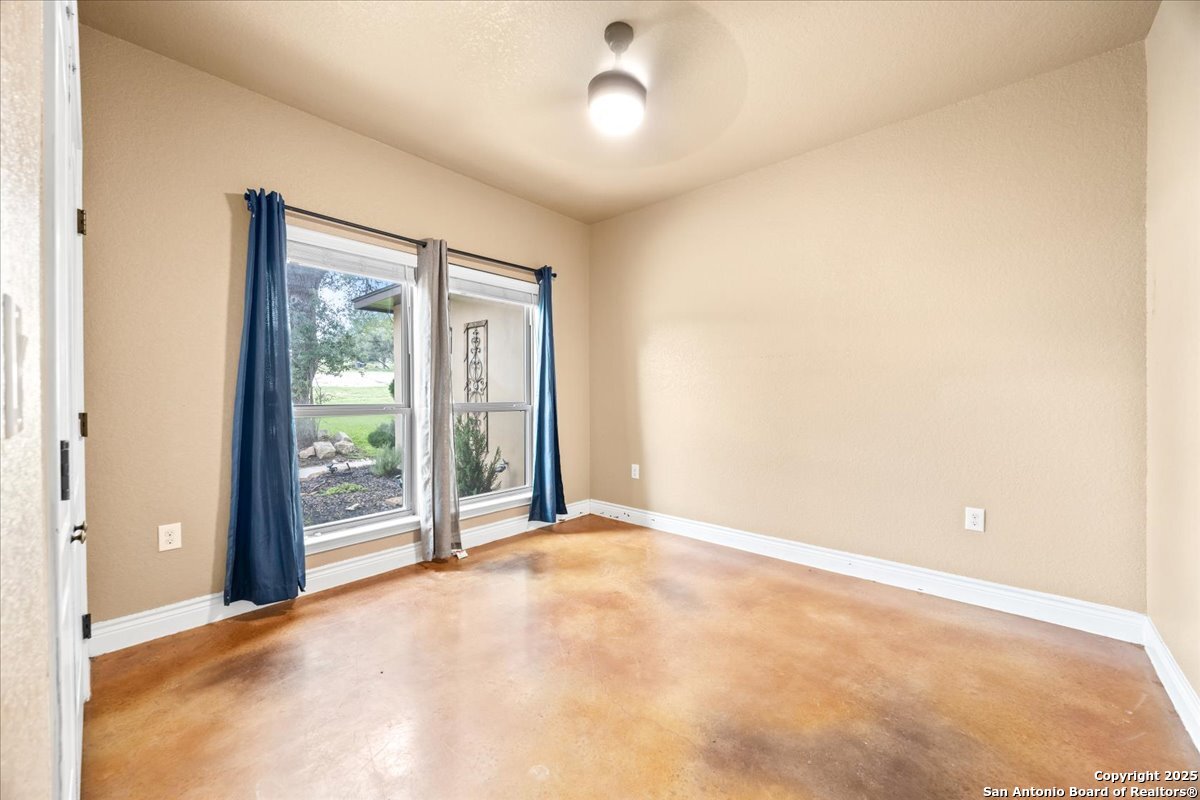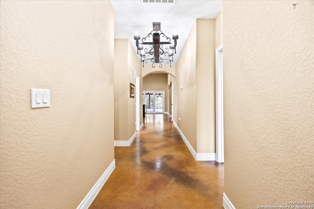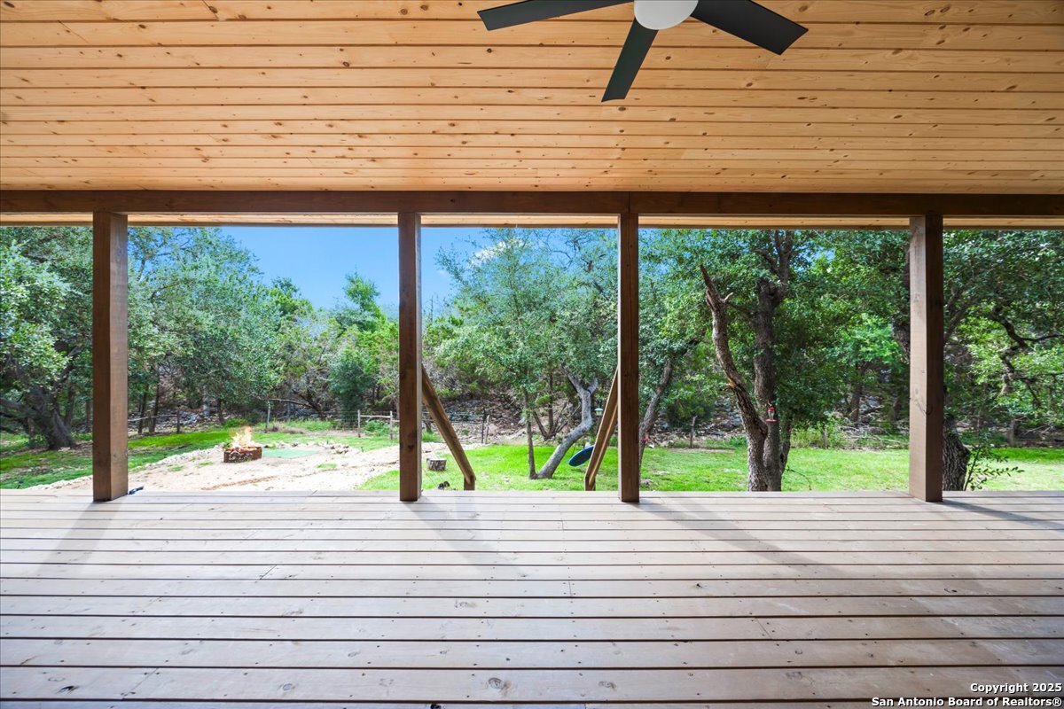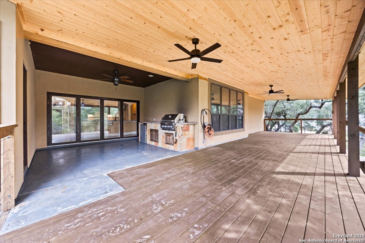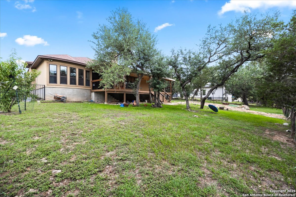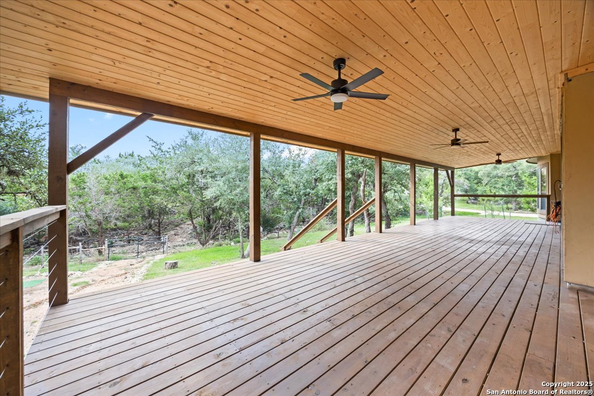 Elegant 1-Story Hill Country Retreat with Custom Upgrades and Stunning Sunset Views! Situated on a serene 1.11-acre lot in the sought-after Vintage Oaks community, this custom 5-bedroom, 3-bathroom home offers an unparalleled blend of luxury and functionality. With meticulous attention to detail and thoughtful upgrades throughout, this home is perfect for modern living and entertaining. A standout feature of this property is the brand-new detached 3-car garage, complete with 12-ft doors-ideal for accommodating larger vehicles, storage, or a workshop. Meanwhile, the original attached garage has been expertly converted into a fully climate-controlled space with ductwork, air conditioning, and heating, providing endless possibilities as a home gym, studio, or additional living area. The gourmet kitchen serves as the heart of the home, featuring a grand center island, high-level granite countertops, a 5-burner gas cooktop, black stainless steel Samsung appliances, and barstool seating. The open concept design effortlessly connects the kitchen to the dining, living, and outdoor spaces, making it perfect for entertaining. The luxurious owner's retreat is a true sanctuary, offering a sitting area filled with natural light, private patio access, and an en-suite bathroom with a walk-in shower, Jacuzzi tub, dual vanities, and an oversized walk-in closet. A private media room, accessed through charming double barn doors, provides the perfect spot for movie nights and gatherings. Two secondary bedrooms at the front of the home feature walk-in closets and share a full bathroom, while two additional bedrooms are located near the owner's suite and share another full bath. The 5th bedroom offers versatility as a home office or virtual learning space. Step outside to enjoy breathtaking Hill Country views on the extended covered patio, complete with an outdoor kitchen featuring a fridge, sink, and grill-perfect for hosting BBQs. The expansive backyard deck offers even more space to relax and soak in the tranquility of your surroundings. This exceptional property combines high-quality craftsmanship, modern amenities, and a peaceful setting to create the ultimate Hill Country retreat. Schedule your tour today!