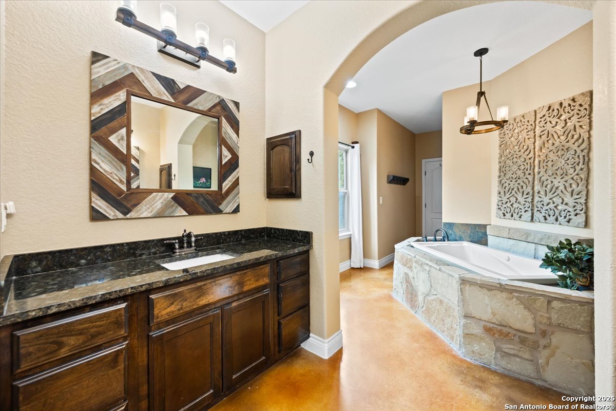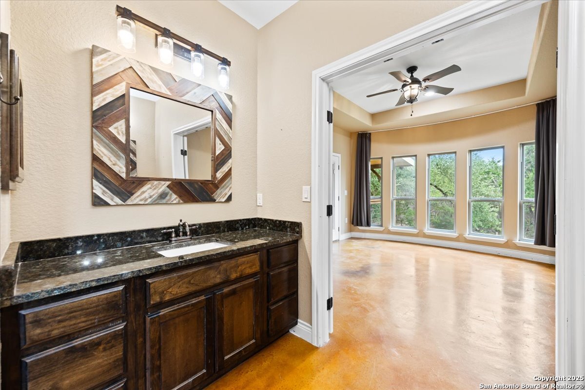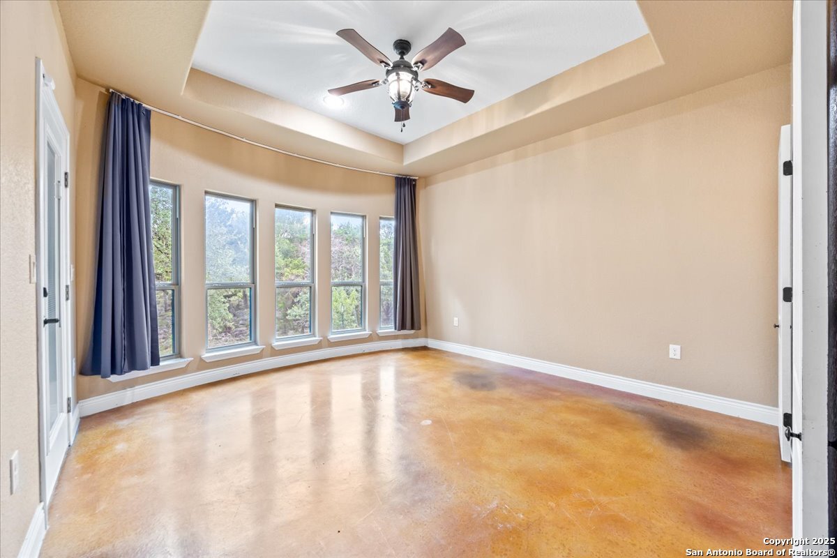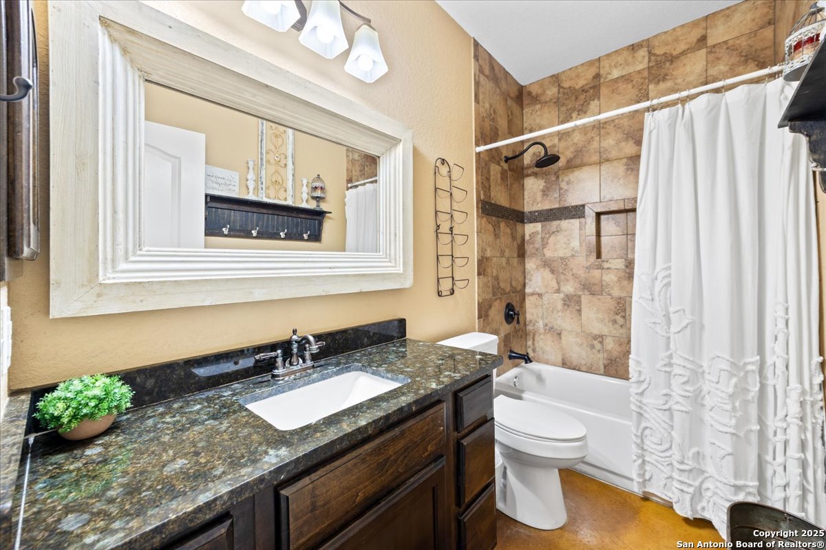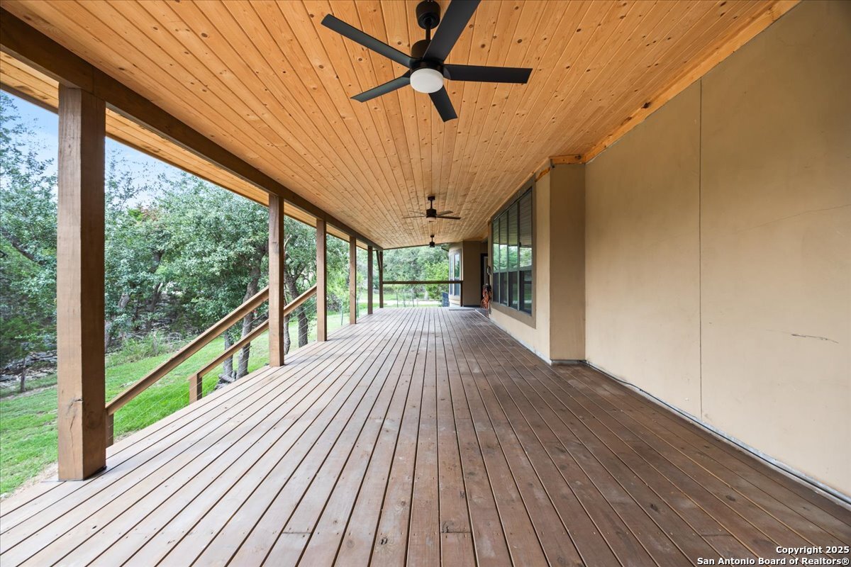 Elegant 1-Story Hill Country Retreat with Custom Upgrades and Stunning Sunset Views! Situated on a serene 1.11-acre lot in the sought-after Vintage Oaks community, this custom 5-bedroom, 3-bathroom home offers an unparalleled blend of luxury and functionality. With meticulous attention to detail and thoughtful upgrades throughout, this home is perfect for modern living and entertaining. A standout feature of this property is the brand-new detached 3-car garage, complete with 12-ft doors-ideal for accommodating larger vehicles, storage, or a workshop. Meanwhile, the original attached garage has been expertly converted into a fully climate-controlled space with ductwork, air conditioning, and heating, providing endless possibilities as a home gym, studio, or additional living area. The gourmet kitchen serves as the heart of the home, featuring a grand center island, high-level granite countertops, a 5-burner gas cooktop, black stainless steel Samsung appliances, and barstool seating. The open concept design effortlessly connects the kitchen to the dining, living, and outdoor spaces, making it perfect for entertaining. The luxurious owner's retreat is a true sanctuary, offering a sitting area filled with natural light, private patio access, and an en-suite bathroom with a walk-in shower, Jacuzzi tub, dual vanities, and an oversized walk-in closet. A private media room, accessed through charming double barn doors, provides the perfect spot for movie nights and gatherings. Two secondary bedrooms at the front of the home feature walk-in closets and share a full bathroom, while two additional bedrooms are located near the owner's suite and share another full bath. The 5th bedroom offers versatility as a home office or virtual learning space. Step outside to enjoy breathtaking Hill Country views on the extended covered patio, complete with an outdoor kitchen featuring a fridge, sink, and grill-perfect for hosting BBQs. The expansive backyard deck offers even more space to relax and soak in the tranquility of your surroundings. This exceptional property combines high-quality craftsmanship, modern amenities, and a peaceful setting to create the ultimate Hill Country retreat. Schedule your tour today!