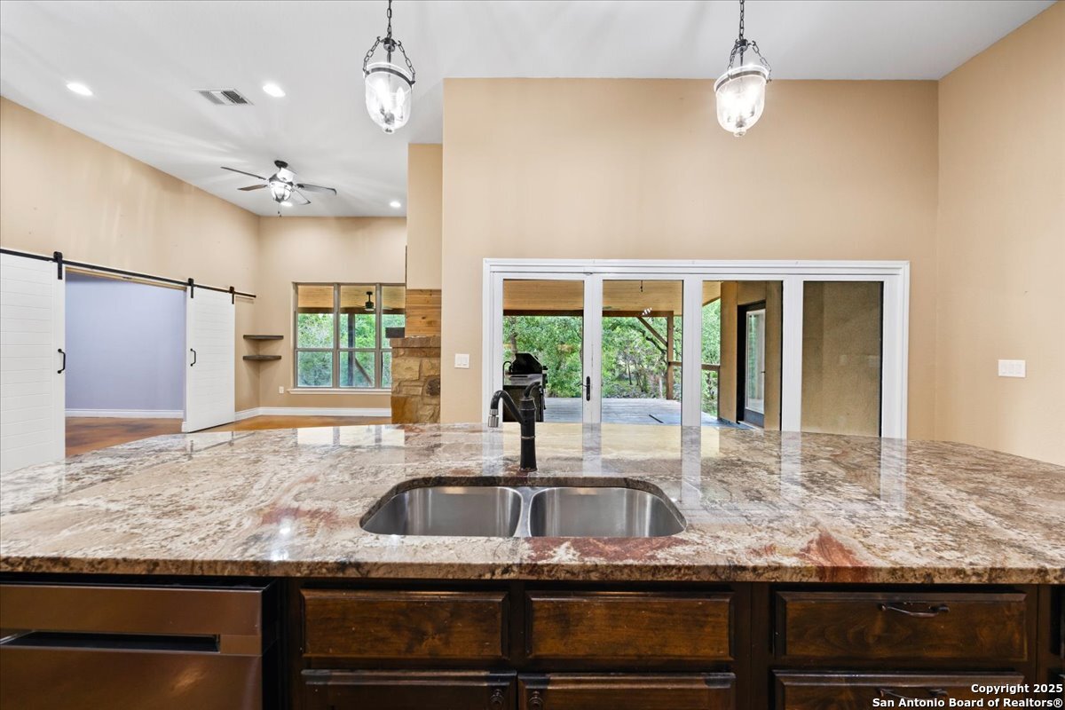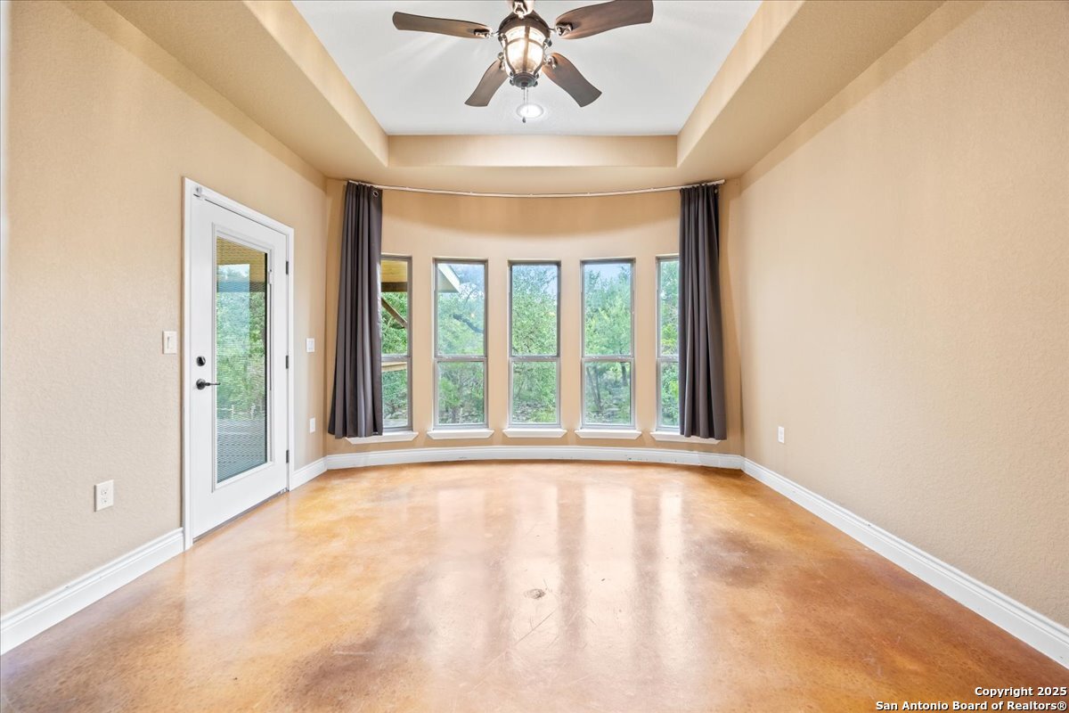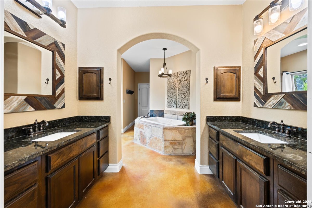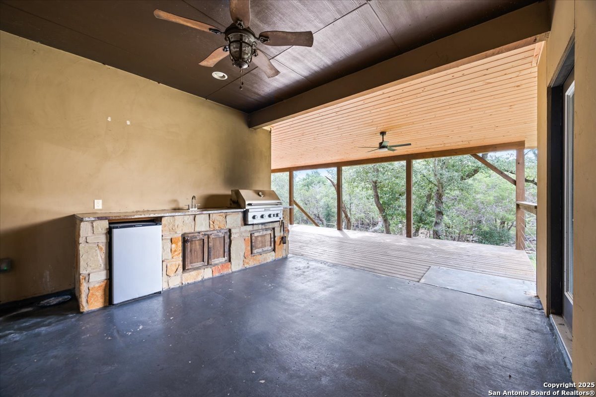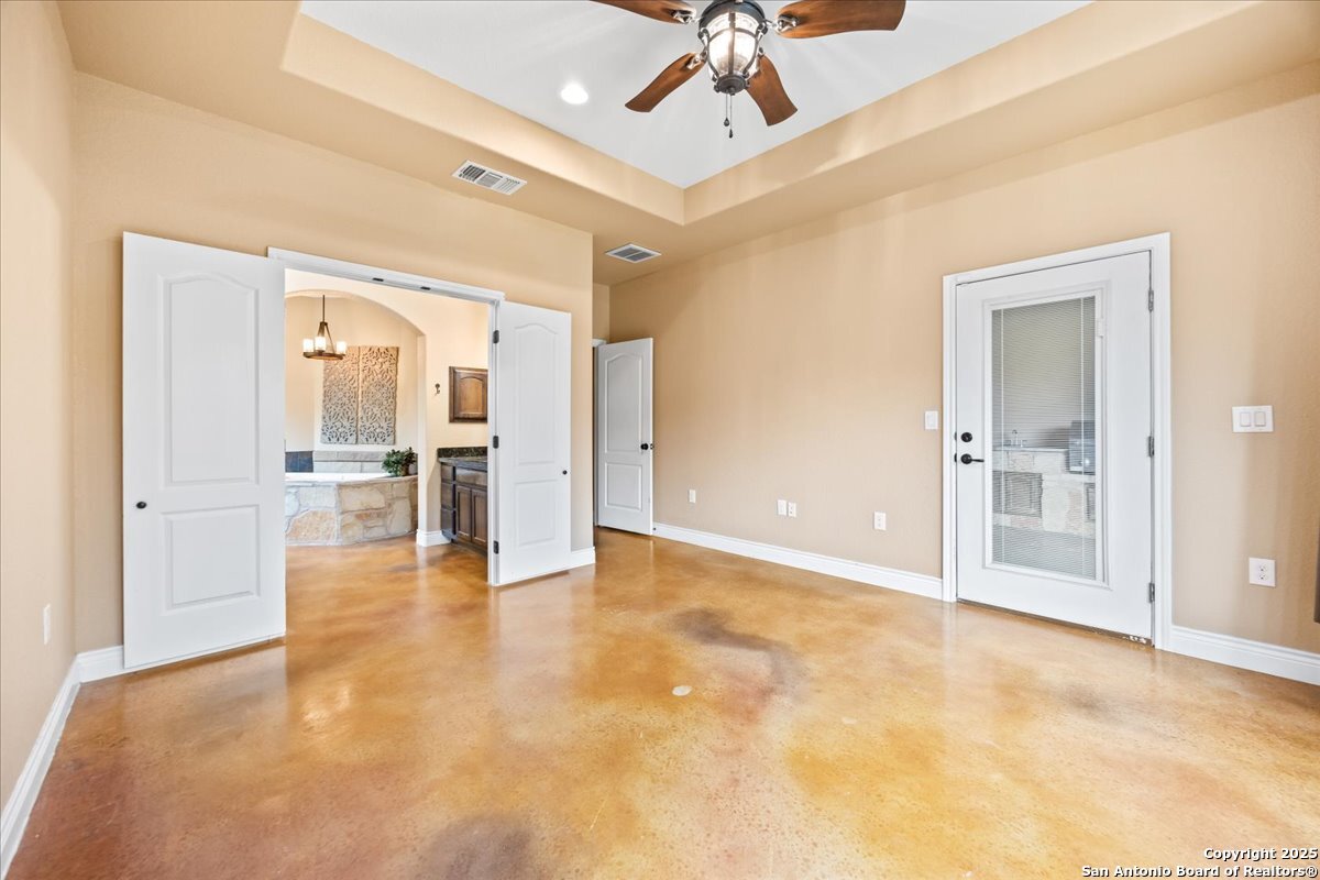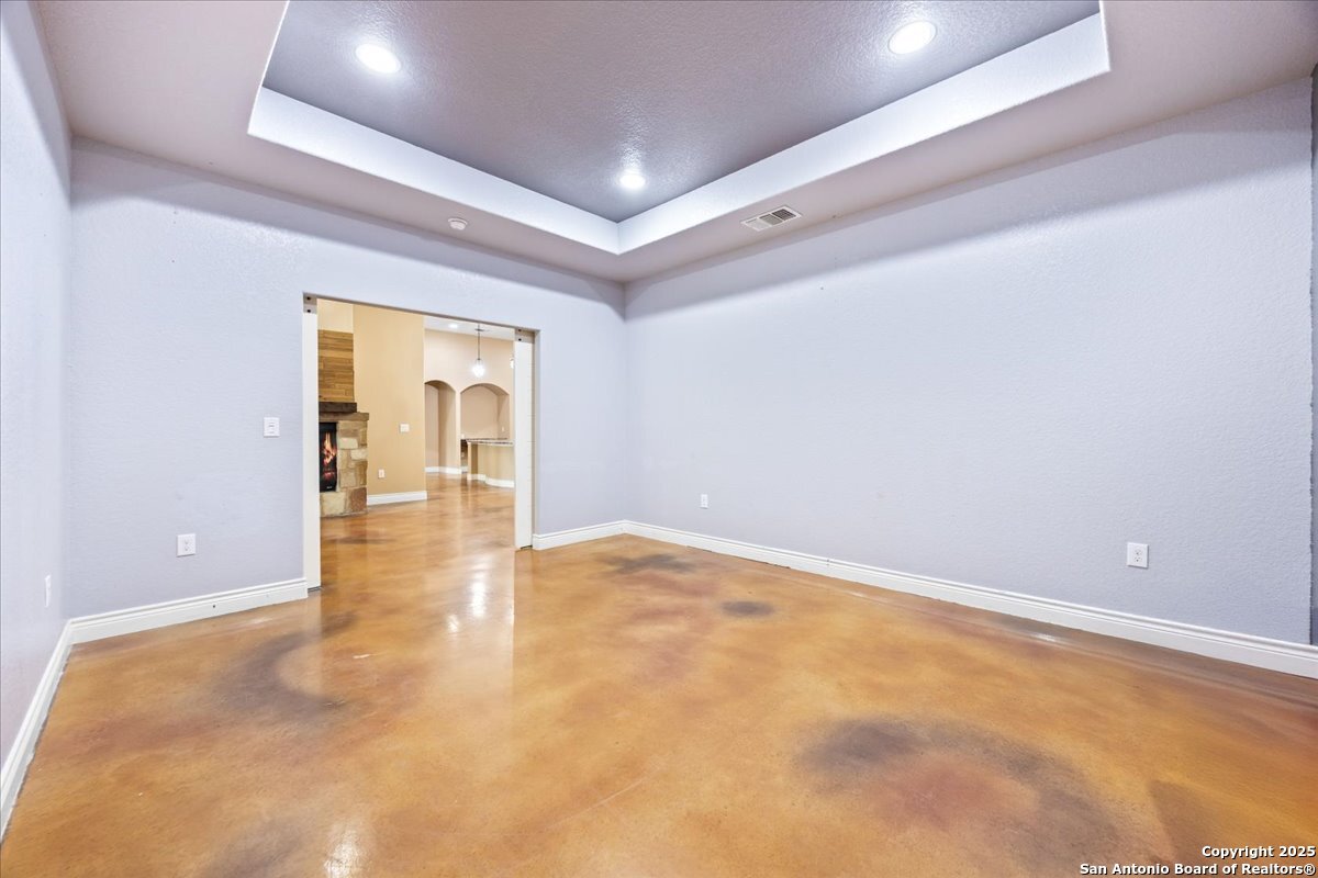 Elegant 1-Story Hill Country Retreat with Custom Upgrades and Stunning Sunset Views! Situated on a serene 1.11-acre lot in the sought-after Vintage Oaks community, this custom 5-bedroom, 3-bathroom home offers an unparalleled blend of luxury and functionality. With meticulous attention to detail and thoughtful upgrades throughout, this home is perfect for modern living and entertaining. A standout feature of this property is the brand-new detached 3-car garage, complete with 12-ft doors-ideal for accommodating larger vehicles, storage, or a workshop. Meanwhile, the original attached garage has been expertly converted into a fully climate-controlled space with ductwork, air conditioning, and heating, providing endless possibilities as a home gym, studio, or additional living area. The gourmet kitchen serves as the heart of the home, featuring a grand center island, high-level granite countertops, a 5-burner gas cooktop, black stainless steel Samsung appliances, and barstool seating. The open concept design effortlessly connects the kitchen to the dining, living, and outdoor spaces, making it perfect for entertaining. The luxurious owner's retreat is a true sanctuary, offering a sitting area filled with natural light, private patio access, and an en-suite bathroom with a walk-in shower, Jacuzzi tub, dual vanities, and an oversized walk-in closet. A private media room, accessed through charming double barn doors, provides the perfect spot for movie nights and gatherings. Two secondary bedrooms at the front of the home feature walk-in closets and share a full bathroom, while two additional bedrooms are located near the owner's suite and share another full bath. The 5th bedroom offers versatility as a home office or virtual learning space. Step outside to enjoy breathtaking Hill Country views on the extended covered patio, complete with an outdoor kitchen featuring a fridge, sink, and grill-perfect for hosting BBQs. The expansive backyard deck offers even more space to relax and soak in the tranquility of your surroundings. This exceptional property combines high-quality craftsmanship, modern amenities, and a peaceful setting to create the ultimate Hill Country retreat. Schedule your tour today!