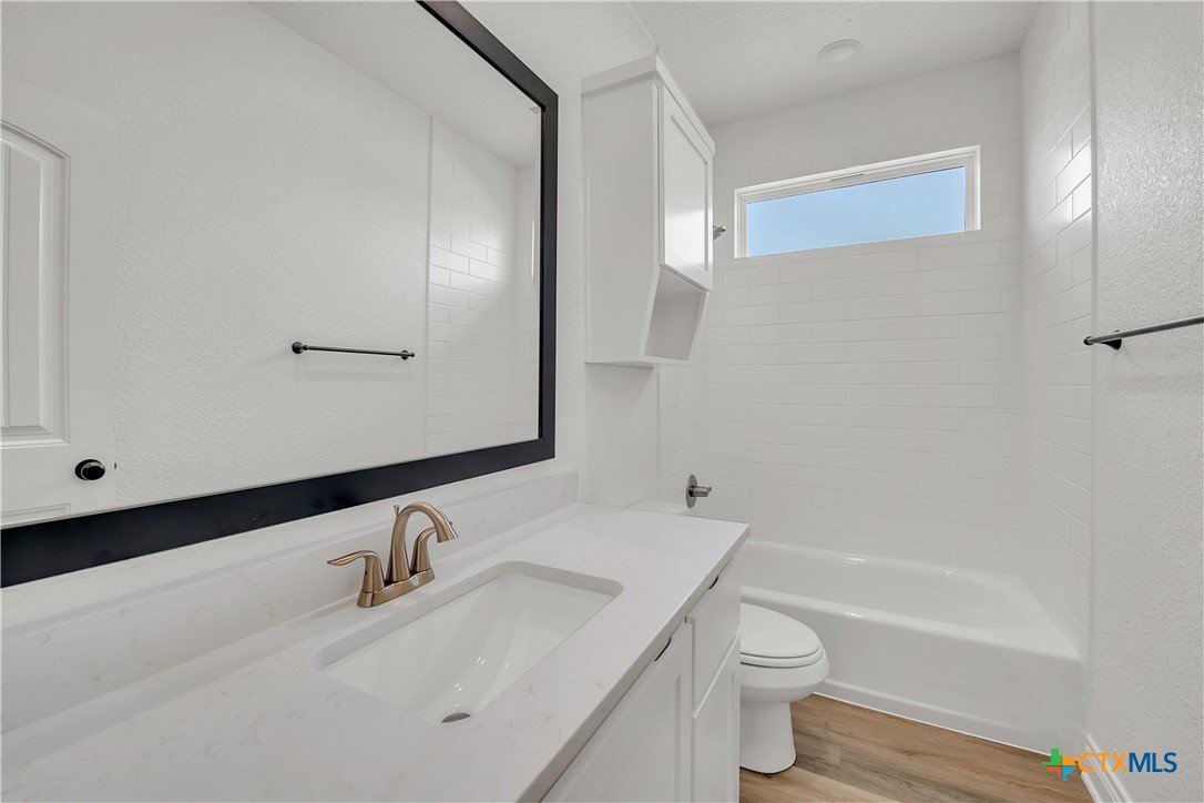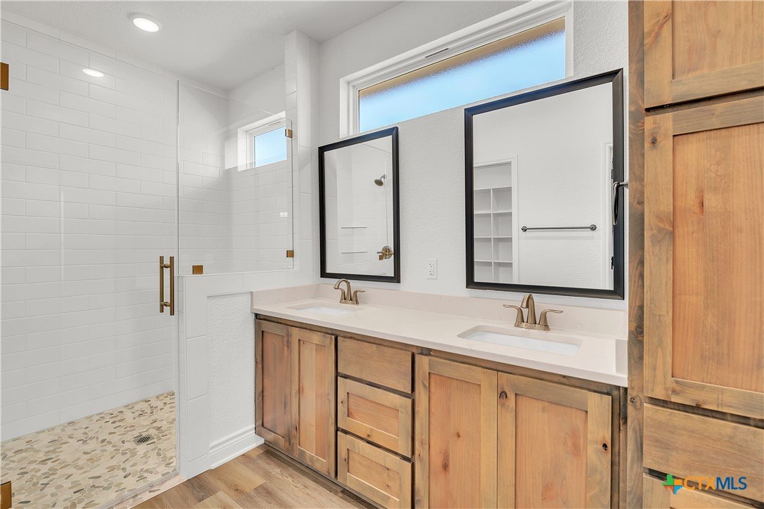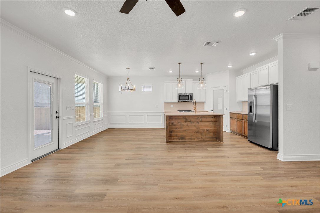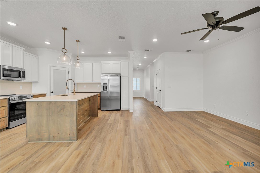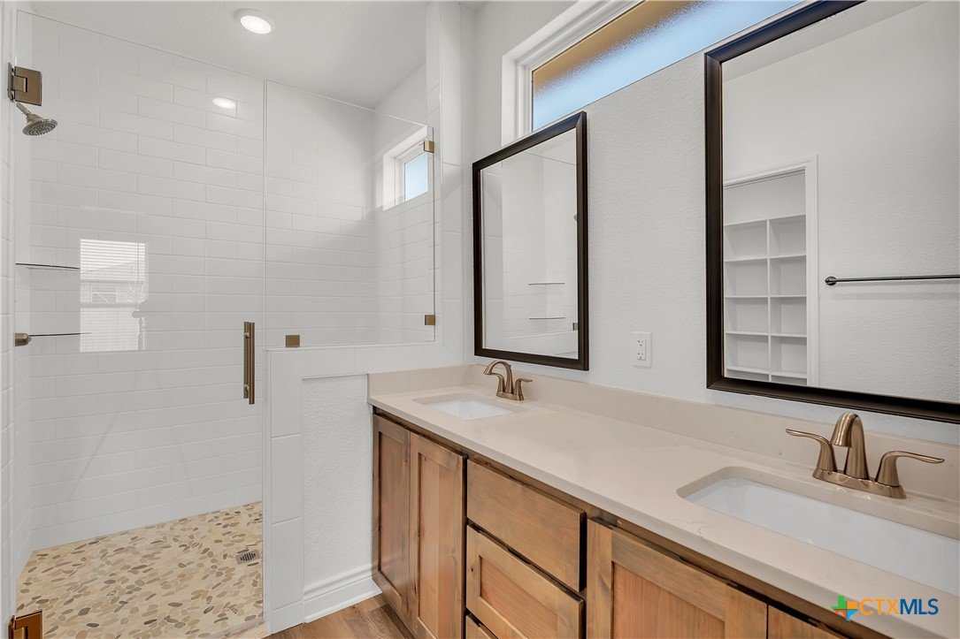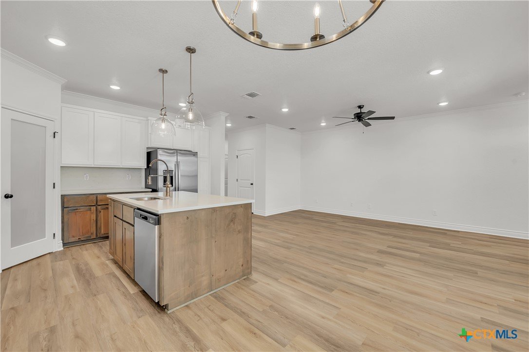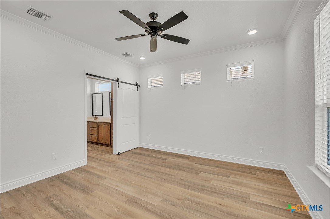 Welcome to your move-in ready dream home! This builder has nailed the thoughtful details in this stunning combination of rustic and modern! Upgraded kitchen fixtures, quartz countertops, crown molding in main living, sprinkler systems in front and back yard, and faux blinds are just a few of the numerous extra amenities provided in this gorgeous home! Convenient to schools and shopping, this home has it all!