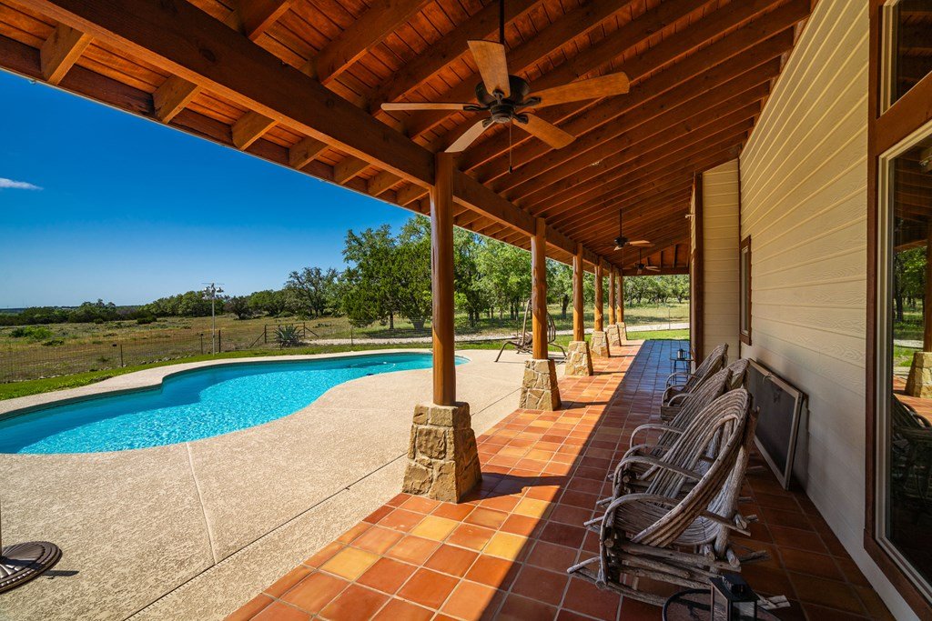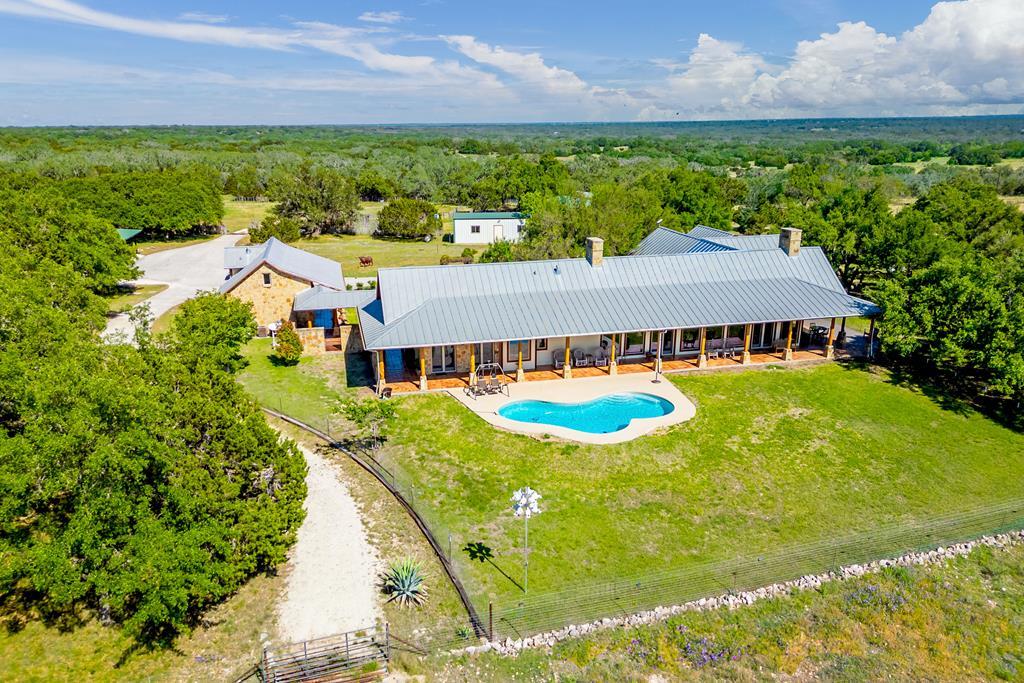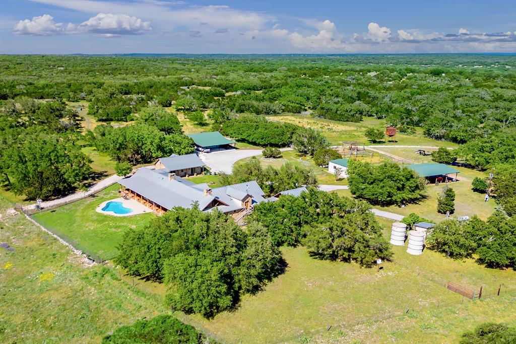 Axis Knoll Ranch (334.05 ac - UNRESTRICTED) is a classic estate ranch located west of historic Fredericksburg that embodies everything you and your family might want to live the Texas Hill Country lifestyle. This ranch features a 3,822 SF modern ranch-style home with a spectacular great room featuring vaulted ceilings, custom woodwork, 2 wood burning fireplaces, a large master BR that has a spacious walk-in shower with 2 shower heads, a garden tub, 2 vanity areas, and 2 walk-in closets. Other features include an office (could be converted to a bedroom), a separate full bathroom, a laundry/utility room, a wine cellar, and kitchen with a large island, two sinks, lots of cabinet space, five burner range, and two ovens. There is also an 858 SF, 2BR/2BA guest cabin, a beautiful outdoor living area with a swimming pool, 3,422 SF of covered porches, 2 insulated metal barns, stunning panoramic views, and tons of Axis deer and White-tailed deer. There are 4 water wells on the ranch, good fencing, and extensive livestock pens. There is an active Ag Exemption in place.