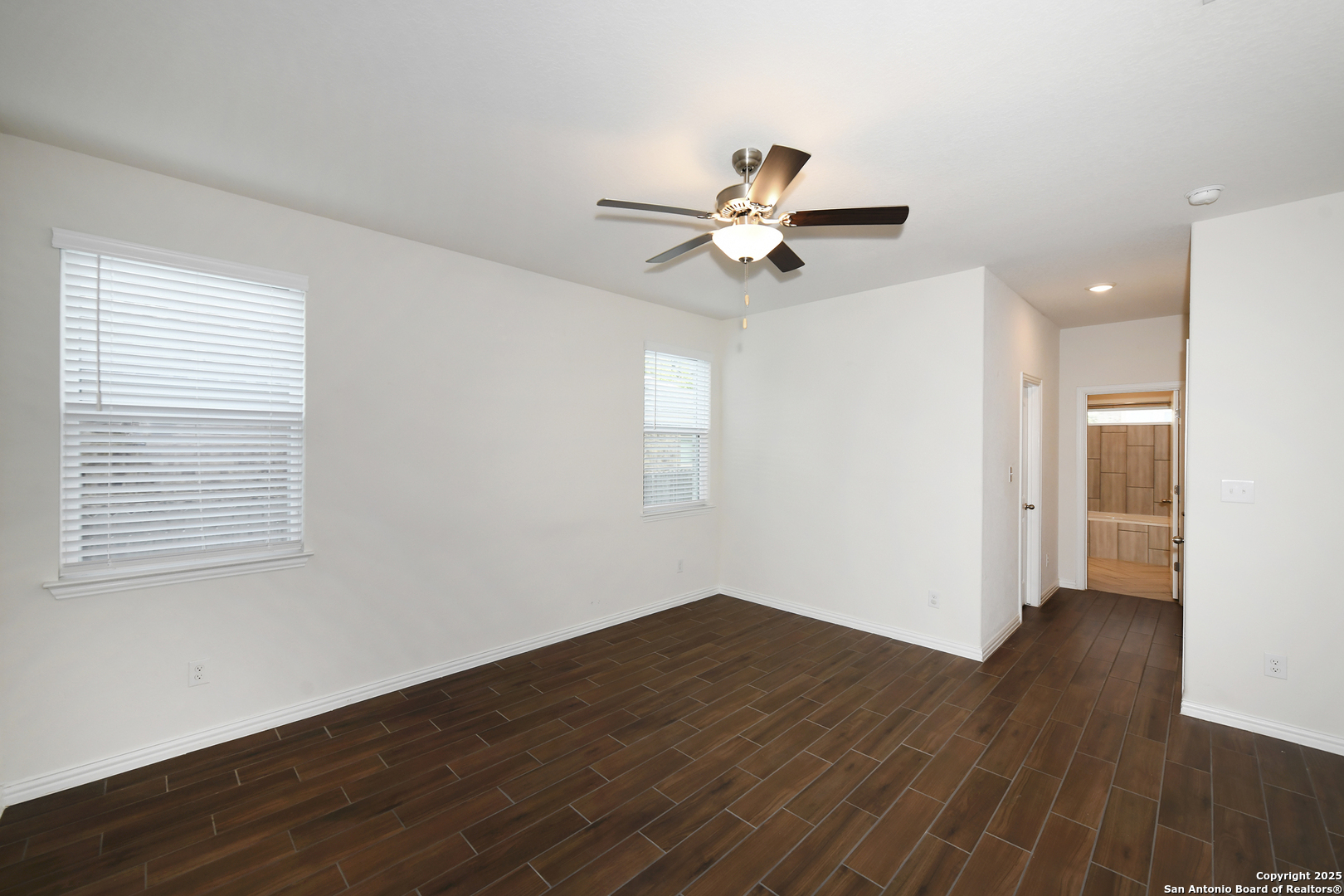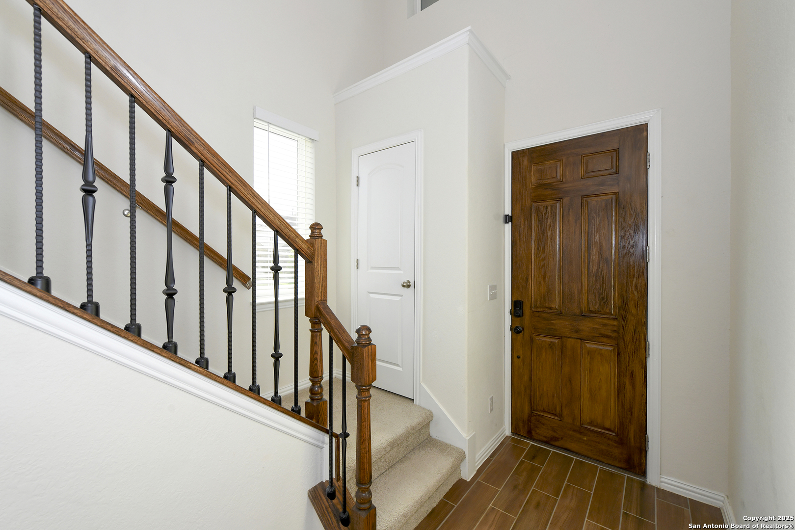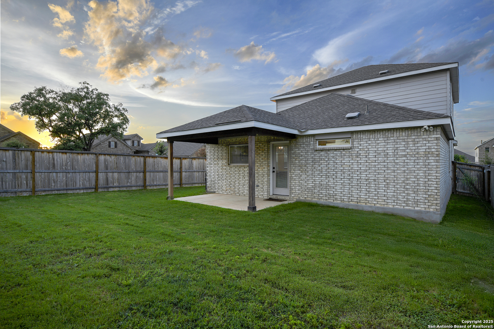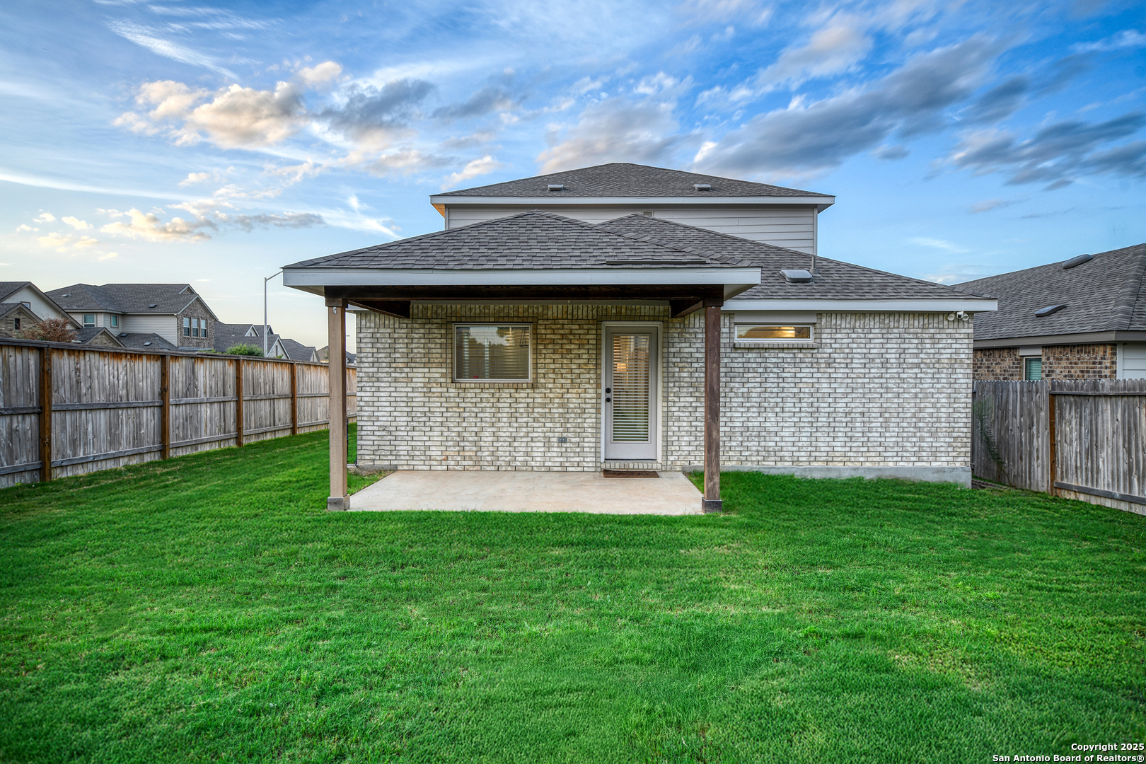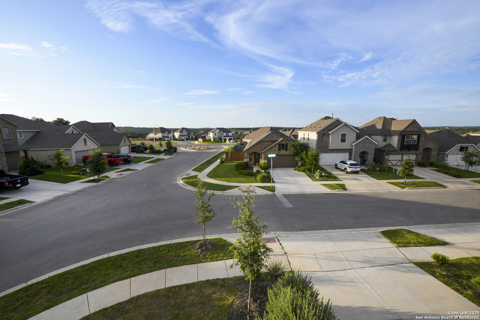 Come live in the well-developed (and still growing) community filled with amenities for the entire family! This two-story corner lot home, built by Gehan Homes, now Brightland Homes, has several upgrades to include extra lighting, outdoor soffit outlets for holiday lights, molding on kitchen cabinets, window blinds and more. Downstairs primary bedroom has larger walk-in closet and bathroom with double vanity and tub/shower combo. Wait until you go up the open stairwell to see to both the entryway and back to the living room and kitchen areas! There is more! From the upstairs game-room, walk out to the covered patio and enjoy the miles of beauty. Verifying correct square footage with builder documents to Appraisal District, closer to 2100 sf. Veramendi is a Planned Improvement District - PID for taxing purposes.
