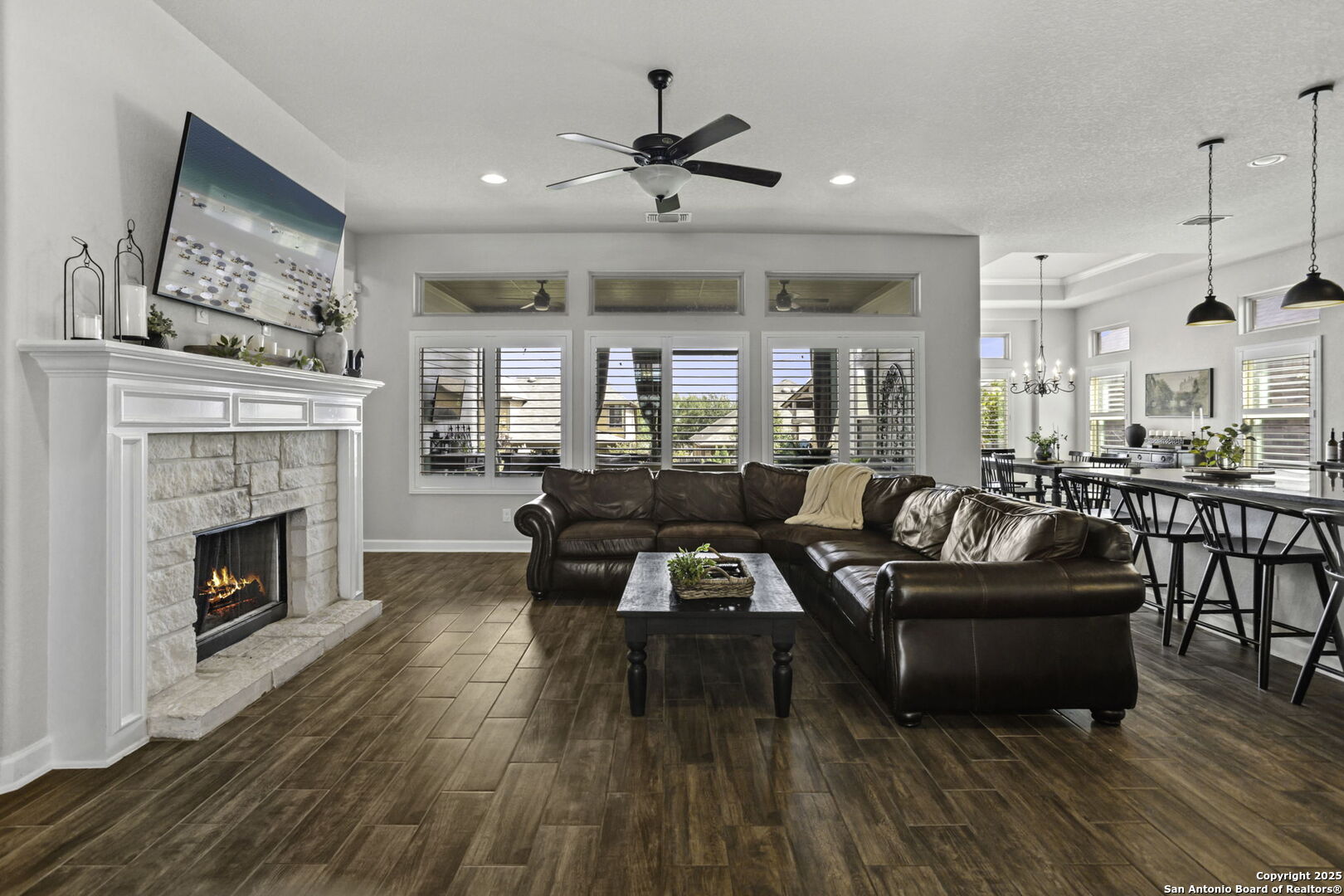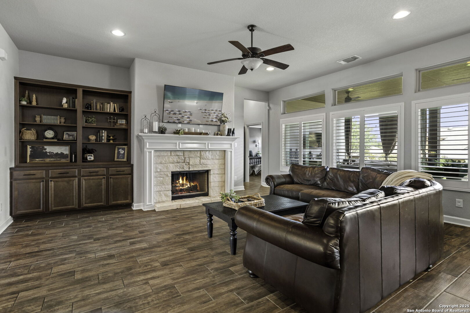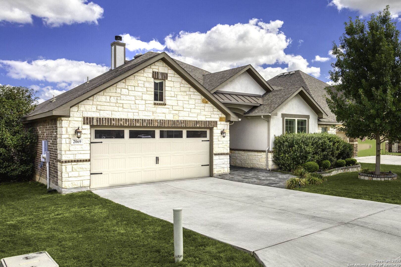 Welcome to 2069 Tejas Pecan - a beautifully maintained 3-bedroom, 2-bath home offering 2,067 square feet of thoughtfully designed living space, just minutes from the river and lake! Step through the grand entrance into an open floor plan that seamlessly connects the living, dining, and kitchen areas - perfect for entertaining or relaxing in style. Large windows fill the home with natural light, highlighting the spacious layout and creating a warm, inviting atmosphere. The primary suite features a luxurious garden tub, ideal for unwinding after a long day. Both bathrooms are well-appointed with modern finishes and ample storage. Enjoy outdoor living year-round with a full covered patio, perfect for morning coffee or evening gatherings. Built in 2017, this home combines contemporary comfort with quality construction. Don't miss your chance to own this beautiful home in a sought-after location with easy access to nature and water activities!