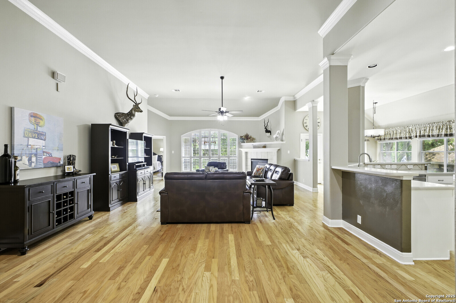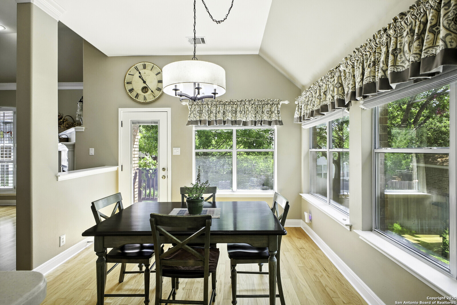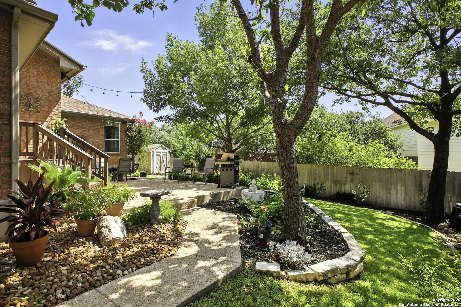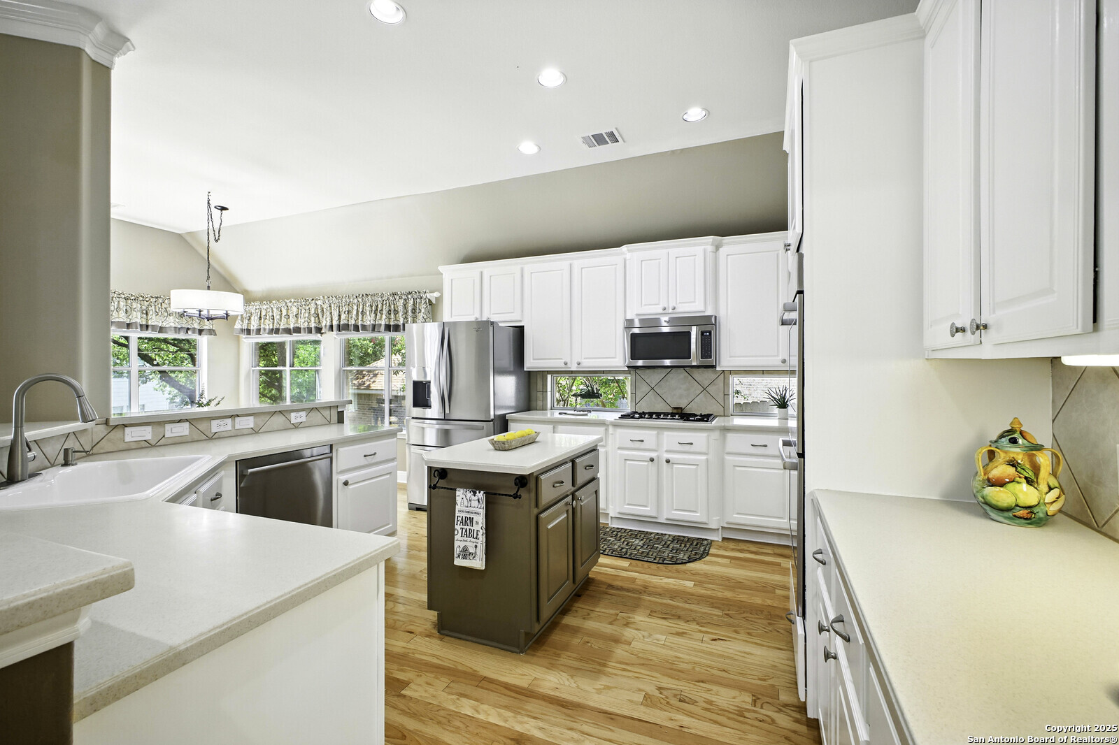 MULTIPLE OFFERS HAVE BEEN RECEIVED. Please submit your final and best offer by July 24 at 9:00 AM. Welcome Home to Stone Oak Living! Discover this beautifully maintained single-story home nestled in the heart of Stone Oak! This residence boasts exceptional curb appeal and inviting outdoor spaces. Inside, you'll love the spacious open floor plan offering 4 bedrooms, 2.5 baths, and an oversized garage-perfect for comfortable living. Gorgeous wood floors run throughout, making upkeep a breeze. The gourmet kitchen features solid surface countertops, stainless steel appliances, and double ovens, making it ideal for both home chefs and entertainers alike. Step outside to your perfectly manicured outdoor oasis, complete with a Mosquito Nix system and remote-controlled fogger, so you can enjoy the outdoors comfortably all year round. Enjoy neighborhood amenities, including a clubhouse, pool, playground, sports courts, and even a pickleball court! Plus, you're within walking distance of restaurants, HEB, and top-tier retail options. The neighborhood is served by highly rated NEISD schools. This home truly has it all. Schedule your tour today and make this dream home yours!