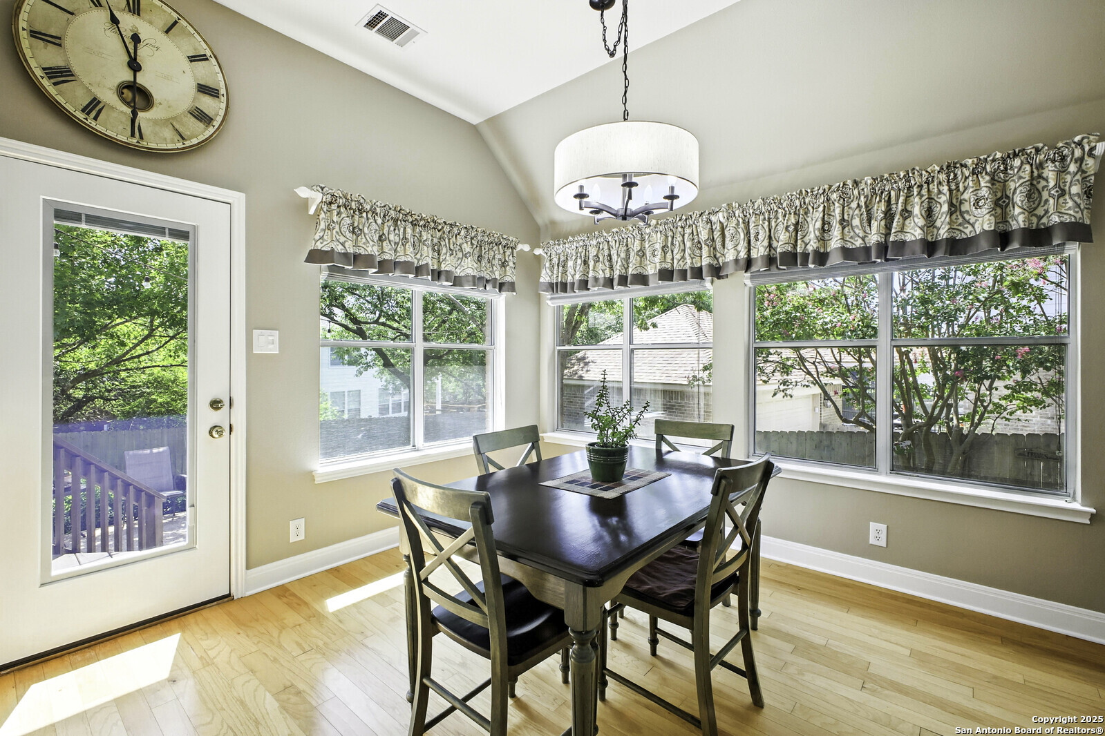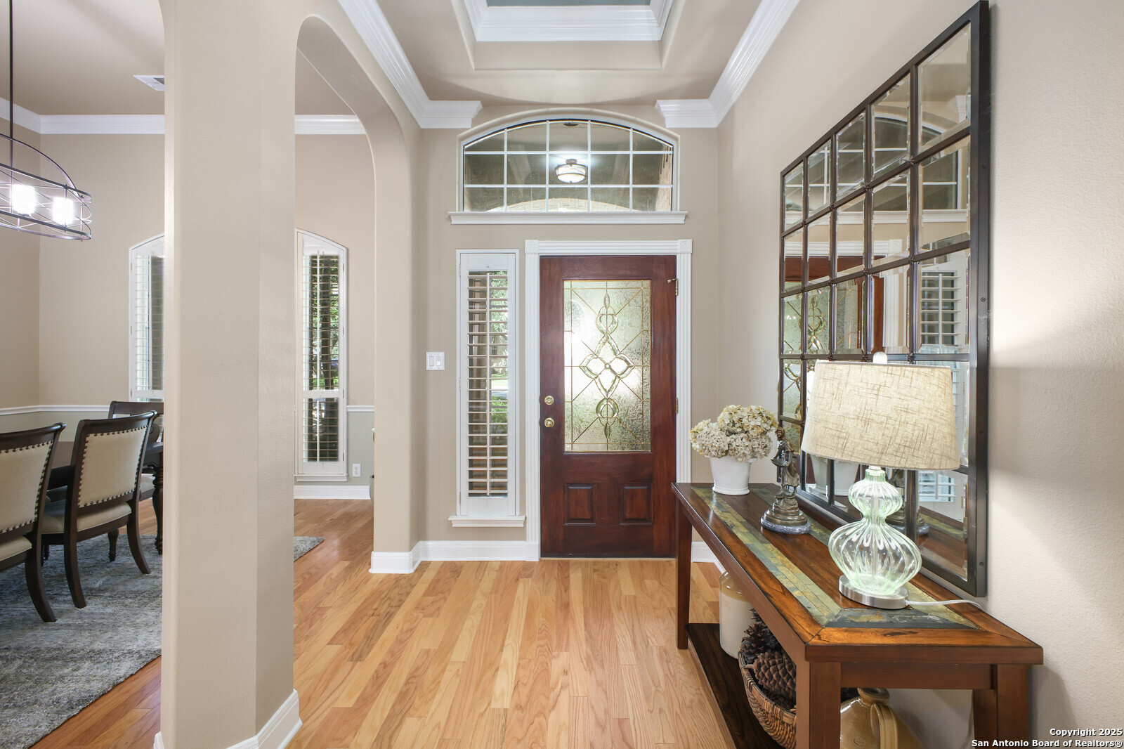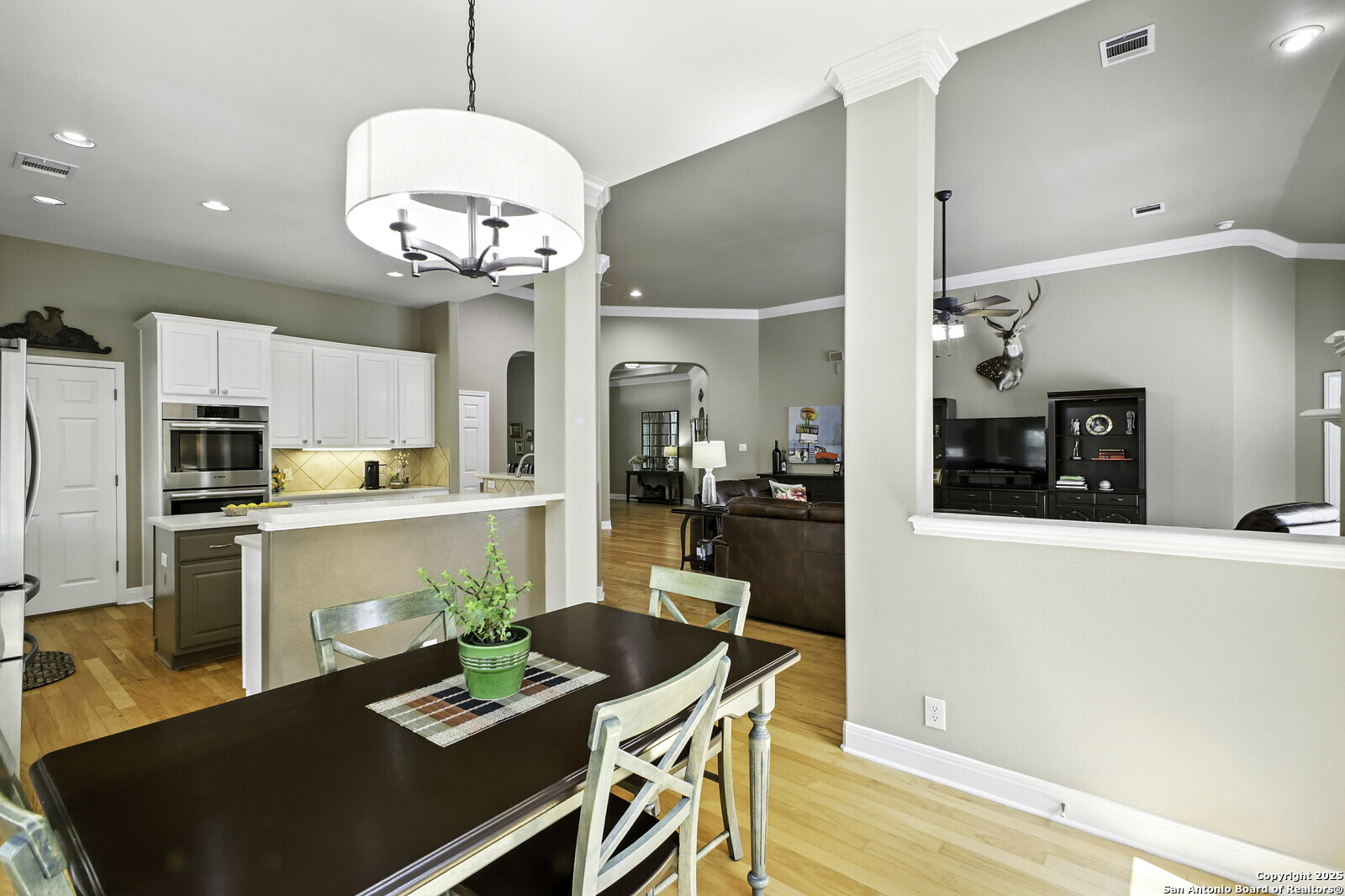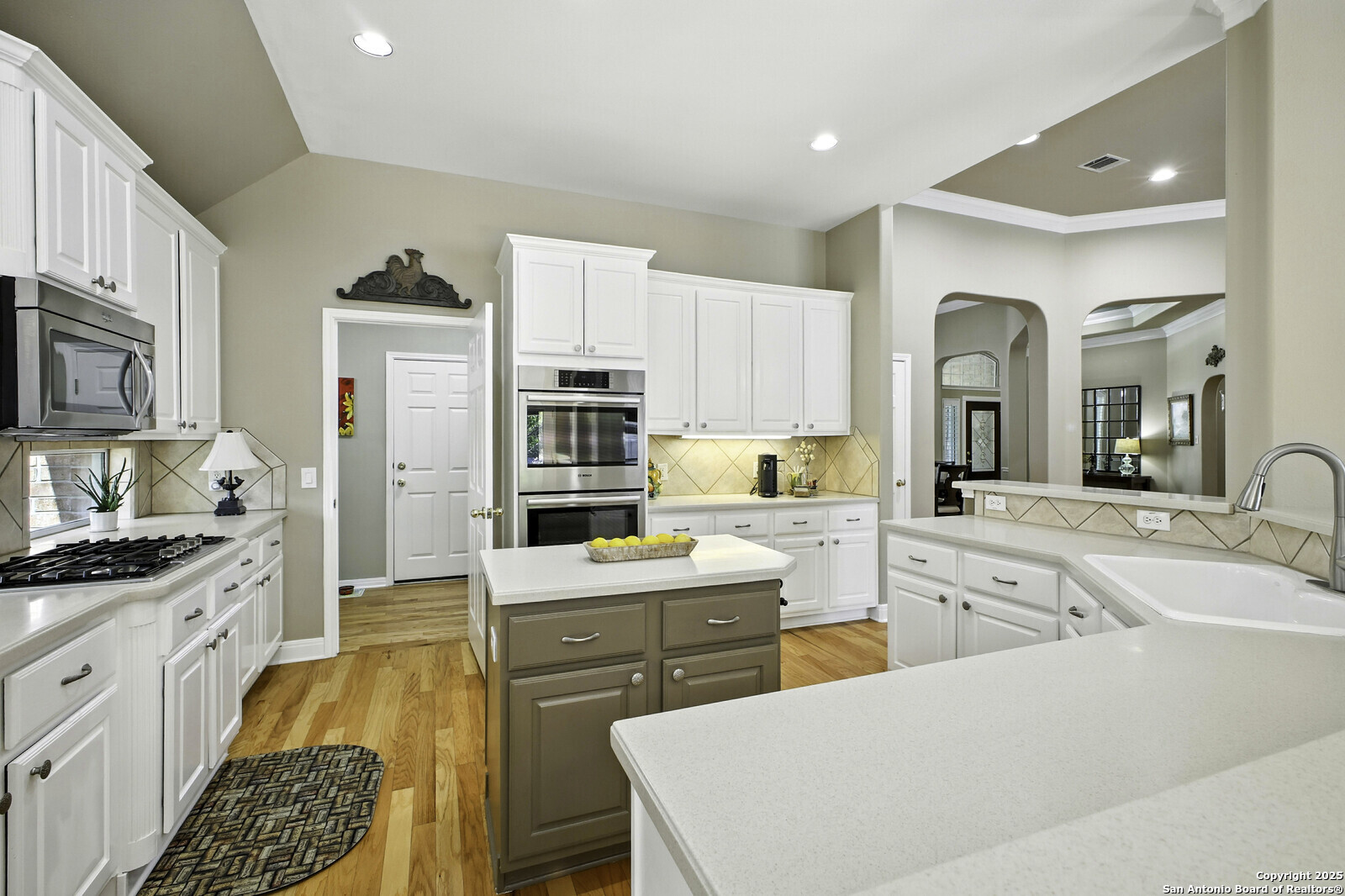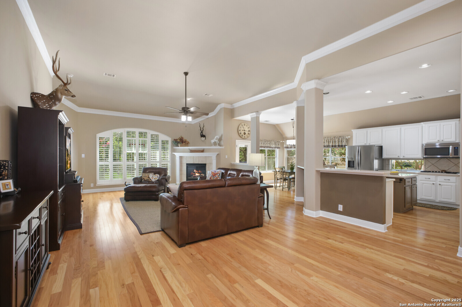 MULTIPLE OFFERS HAVE BEEN RECEIVED. Please submit your final and best offer by July 24 at 9:00 AM. Welcome Home to Stone Oak Living! Discover this beautifully maintained single-story home nestled in the heart of Stone Oak! This residence boasts exceptional curb appeal and inviting outdoor spaces. Inside, you'll love the spacious open floor plan offering 4 bedrooms, 2.5 baths, and an oversized garage-perfect for comfortable living. Gorgeous wood floors run throughout, making upkeep a breeze. The gourmet kitchen features solid surface countertops, stainless steel appliances, and double ovens, making it ideal for both home chefs and entertainers alike. Step outside to your perfectly manicured outdoor oasis, complete with a Mosquito Nix system and remote-controlled fogger, so you can enjoy the outdoors comfortably all year round. Enjoy neighborhood amenities, including a clubhouse, pool, playground, sports courts, and even a pickleball court! Plus, you're within walking distance of restaurants, HEB, and top-tier retail options. The neighborhood is served by highly rated NEISD schools. This home truly has it all. Schedule your tour today and make this dream home yours!
