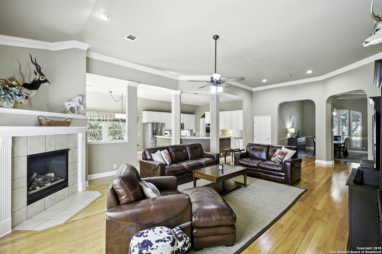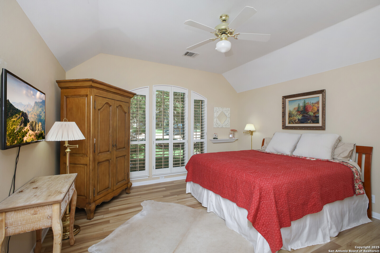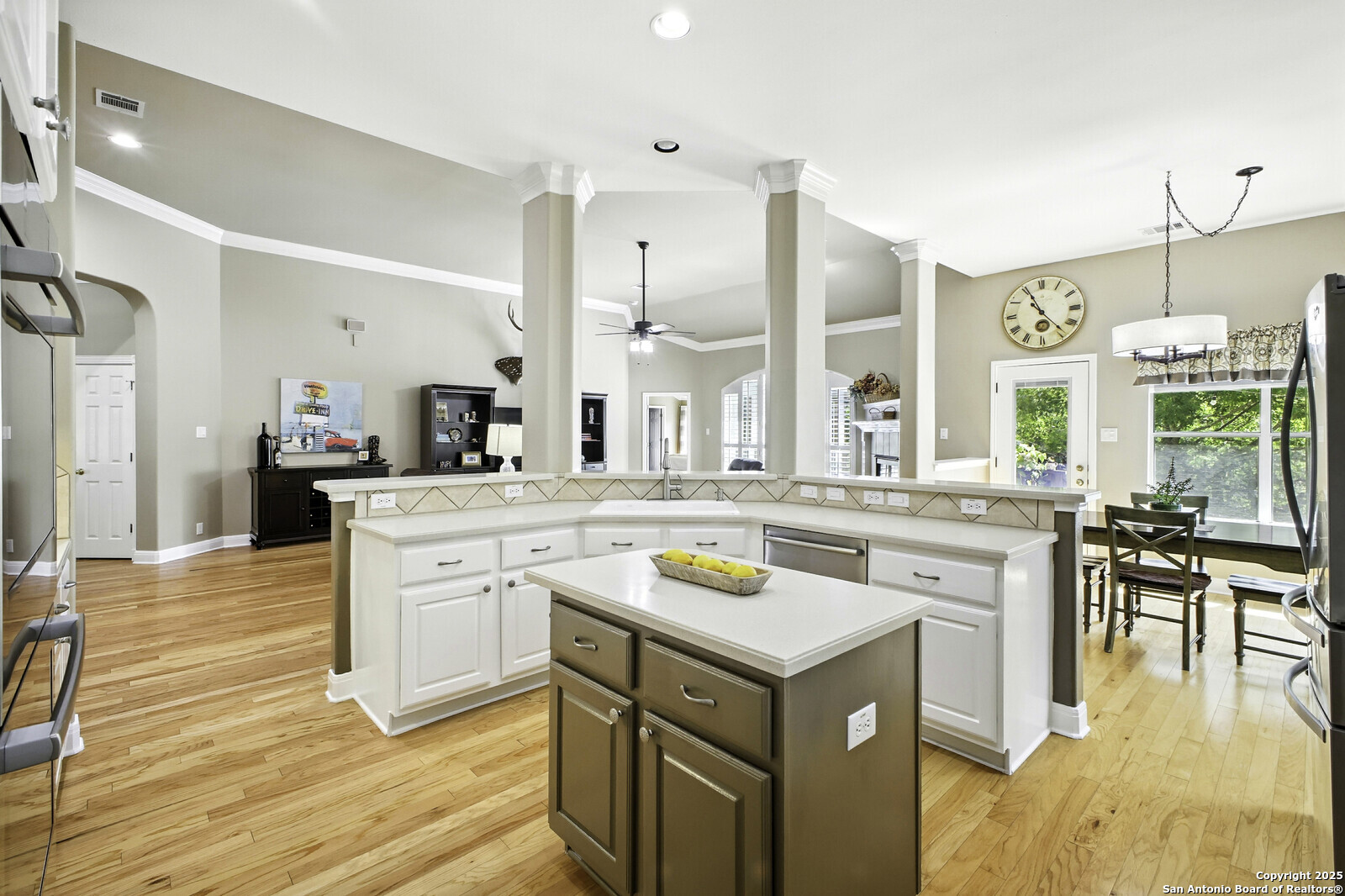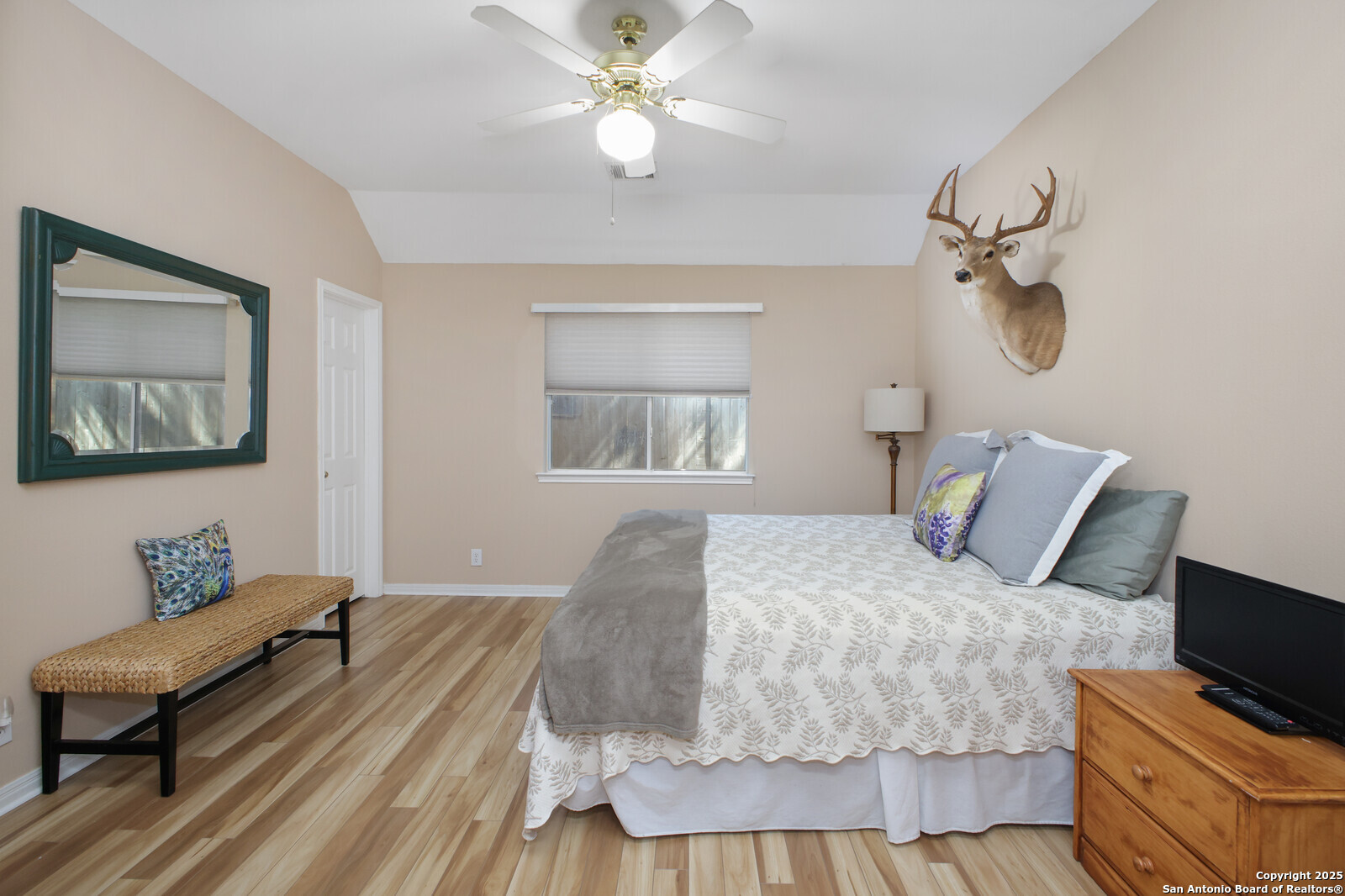 MULTIPLE OFFERS HAVE BEEN RECEIVED. Please submit your final and best offer by July 24 at 9:00 AM. Welcome Home to Stone Oak Living! Discover this beautifully maintained single-story home nestled in the heart of Stone Oak! This residence boasts exceptional curb appeal and inviting outdoor spaces. Inside, you'll love the spacious open floor plan offering 4 bedrooms, 2.5 baths, and an oversized garage-perfect for comfortable living. Gorgeous wood floors run throughout, making upkeep a breeze. The gourmet kitchen features solid surface countertops, stainless steel appliances, and double ovens, making it ideal for both home chefs and entertainers alike. Step outside to your perfectly manicured outdoor oasis, complete with a Mosquito Nix system and remote-controlled fogger, so you can enjoy the outdoors comfortably all year round. Enjoy neighborhood amenities, including a clubhouse, pool, playground, sports courts, and even a pickleball court! Plus, you're within walking distance of restaurants, HEB, and top-tier retail options. The neighborhood is served by highly rated NEISD schools. This home truly has it all. Schedule your tour today and make this dream home yours!