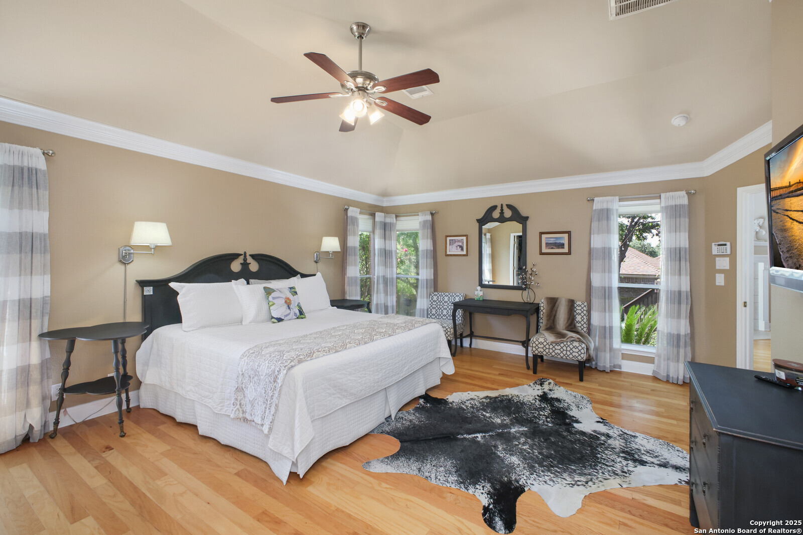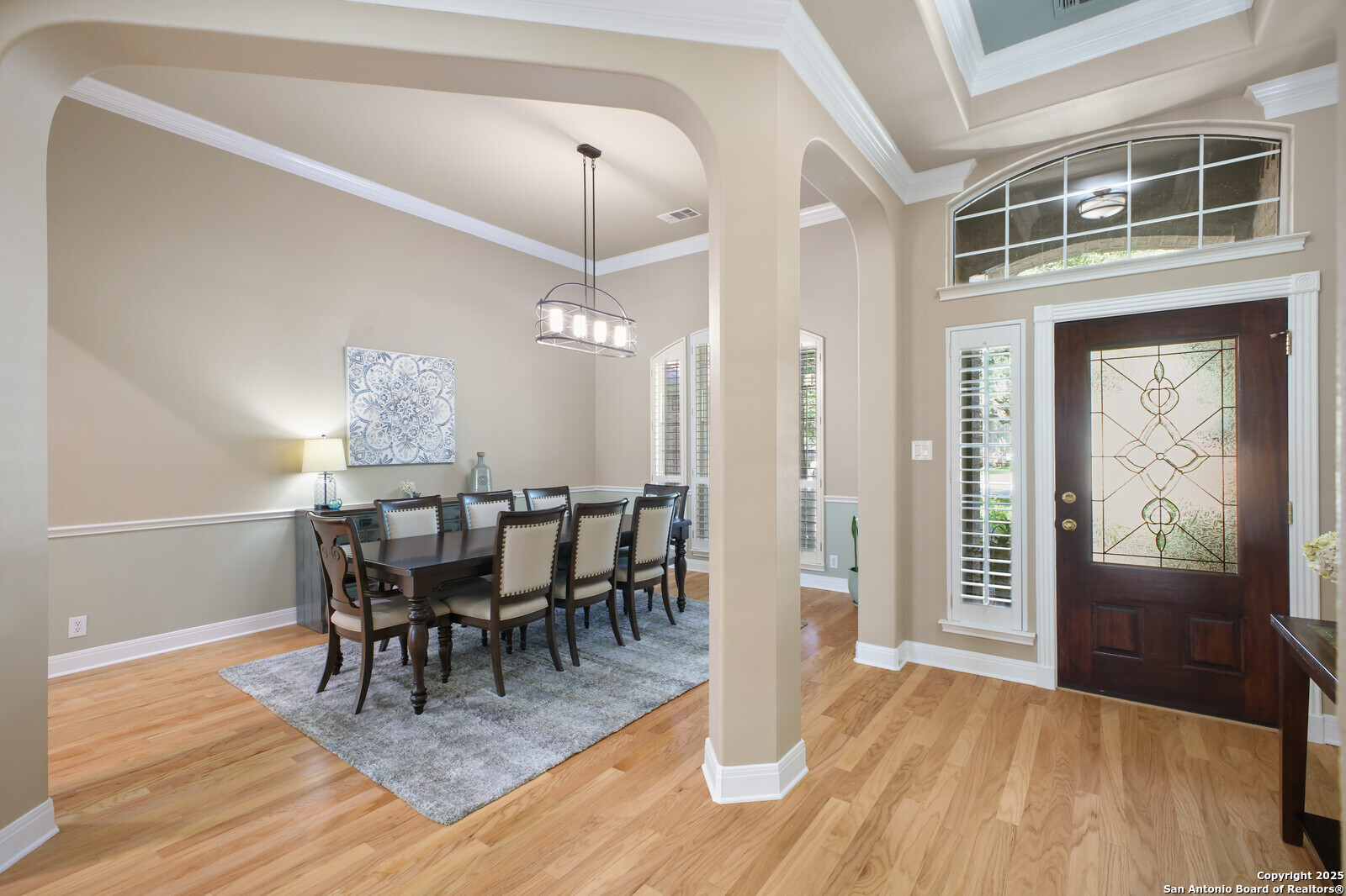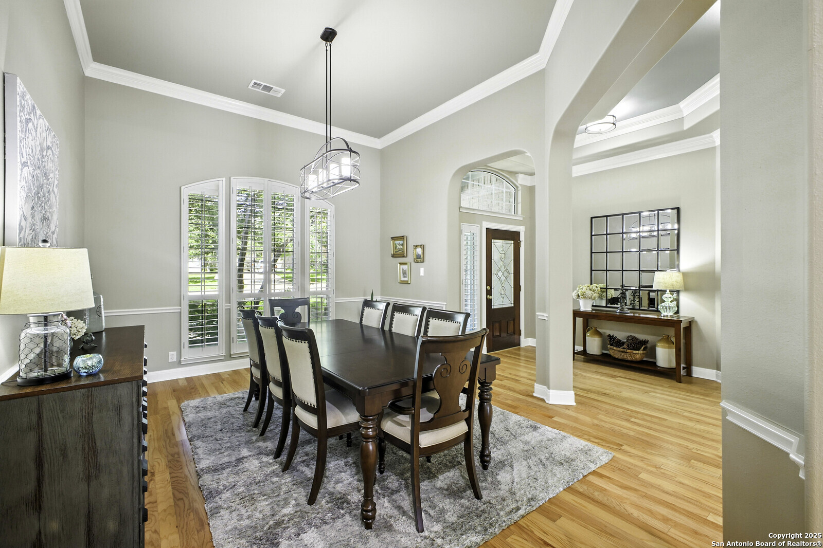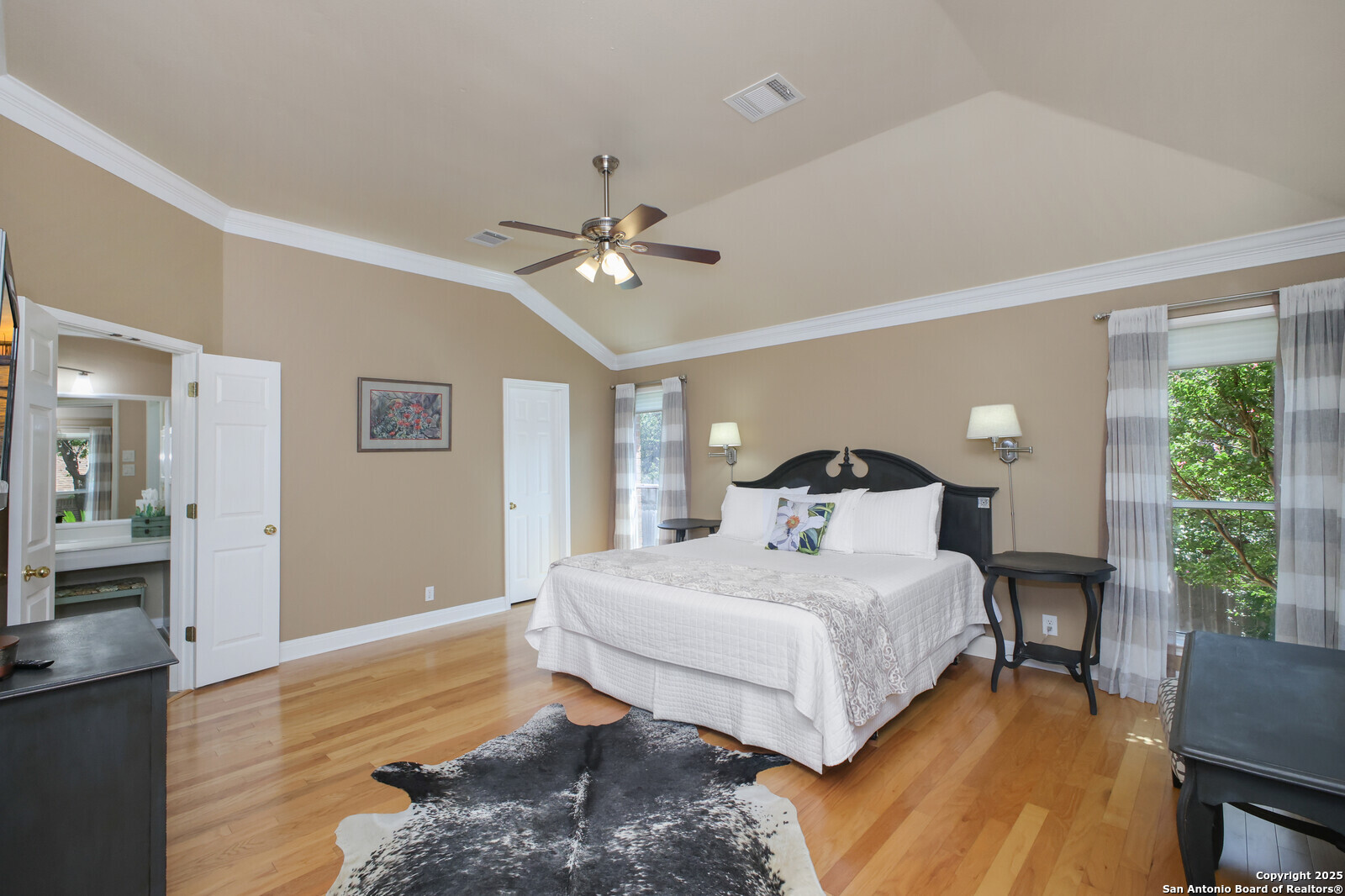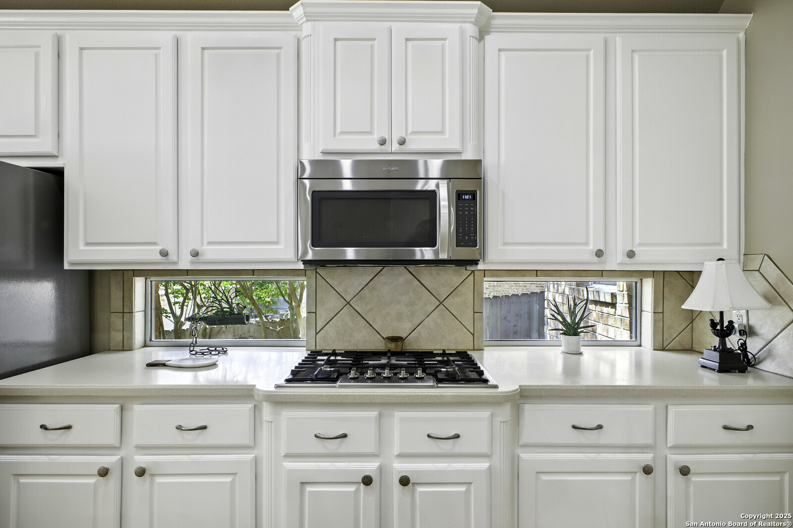 MULTIPLE OFFERS HAVE BEEN RECEIVED. Please submit your final and best offer by July 24 at 9:00 AM. Welcome Home to Stone Oak Living! Discover this beautifully maintained single-story home nestled in the heart of Stone Oak! This residence boasts exceptional curb appeal and inviting outdoor spaces. Inside, you'll love the spacious open floor plan offering 4 bedrooms, 2.5 baths, and an oversized garage-perfect for comfortable living. Gorgeous wood floors run throughout, making upkeep a breeze. The gourmet kitchen features solid surface countertops, stainless steel appliances, and double ovens, making it ideal for both home chefs and entertainers alike. Step outside to your perfectly manicured outdoor oasis, complete with a Mosquito Nix system and remote-controlled fogger, so you can enjoy the outdoors comfortably all year round. Enjoy neighborhood amenities, including a clubhouse, pool, playground, sports courts, and even a pickleball court! Plus, you're within walking distance of restaurants, HEB, and top-tier retail options. The neighborhood is served by highly rated NEISD schools. This home truly has it all. Schedule your tour today and make this dream home yours!