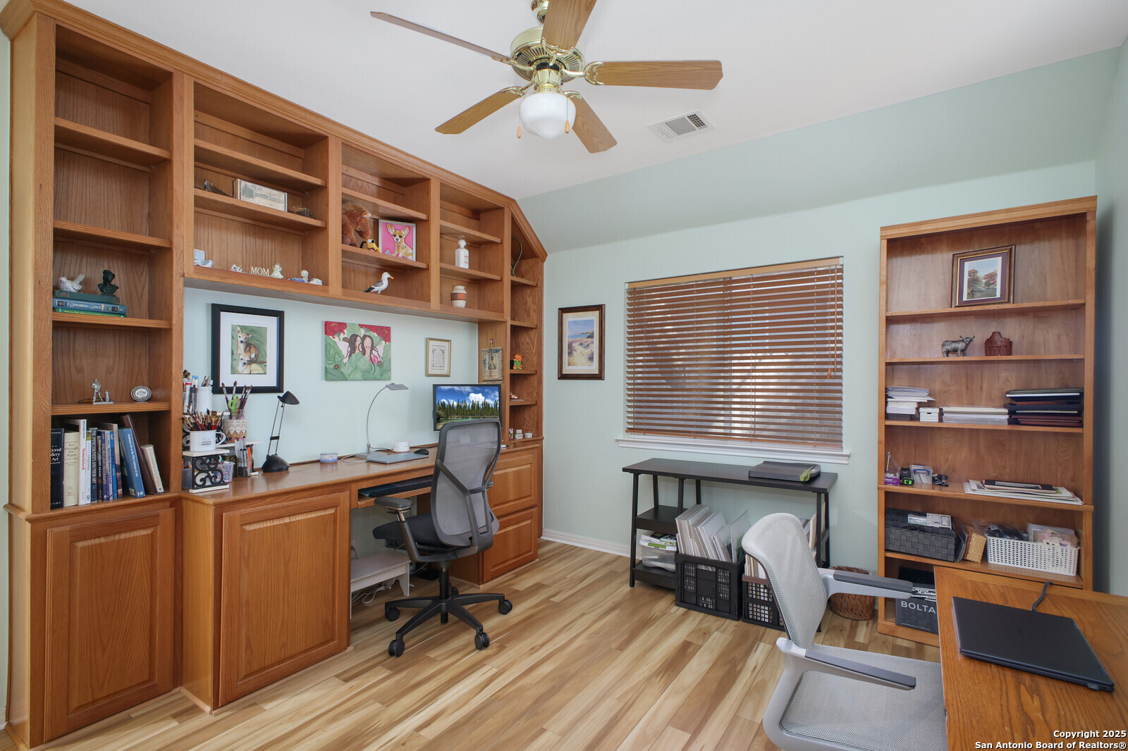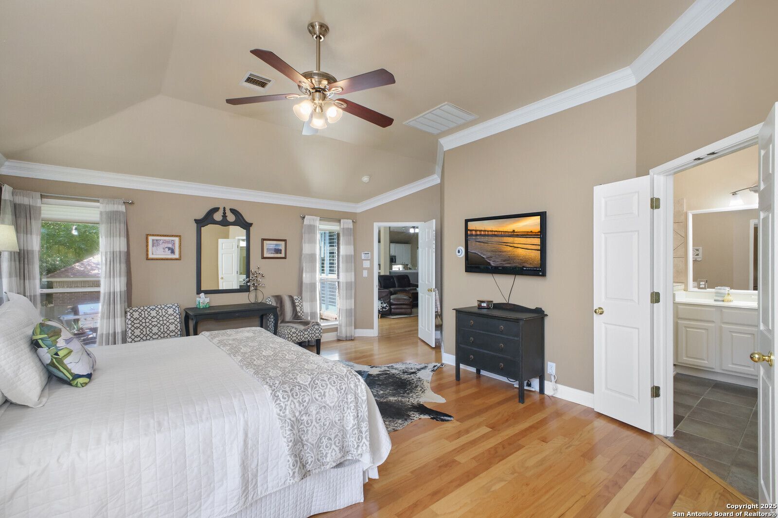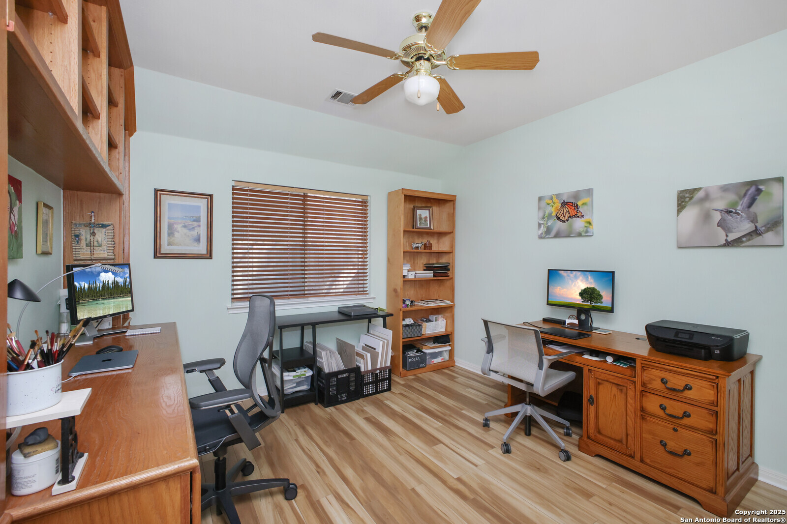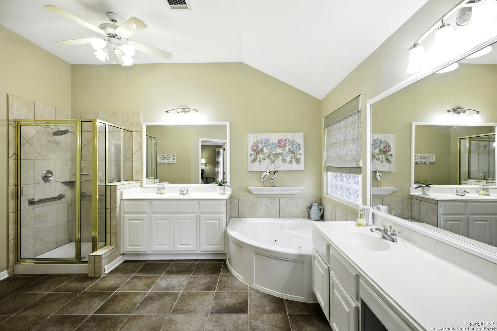 MULTIPLE OFFERS HAVE BEEN RECEIVED. Please submit your final and best offer by July 24 at 9:00 AM. Welcome Home to Stone Oak Living! Discover this beautifully maintained single-story home nestled in the heart of Stone Oak! This residence boasts exceptional curb appeal and inviting outdoor spaces. Inside, you'll love the spacious open floor plan offering 4 bedrooms, 2.5 baths, and an oversized garage-perfect for comfortable living. Gorgeous wood floors run throughout, making upkeep a breeze. The gourmet kitchen features solid surface countertops, stainless steel appliances, and double ovens, making it ideal for both home chefs and entertainers alike. Step outside to your perfectly manicured outdoor oasis, complete with a Mosquito Nix system and remote-controlled fogger, so you can enjoy the outdoors comfortably all year round. Enjoy neighborhood amenities, including a clubhouse, pool, playground, sports courts, and even a pickleball court! Plus, you're within walking distance of restaurants, HEB, and top-tier retail options. The neighborhood is served by highly rated NEISD schools. This home truly has it all. Schedule your tour today and make this dream home yours!