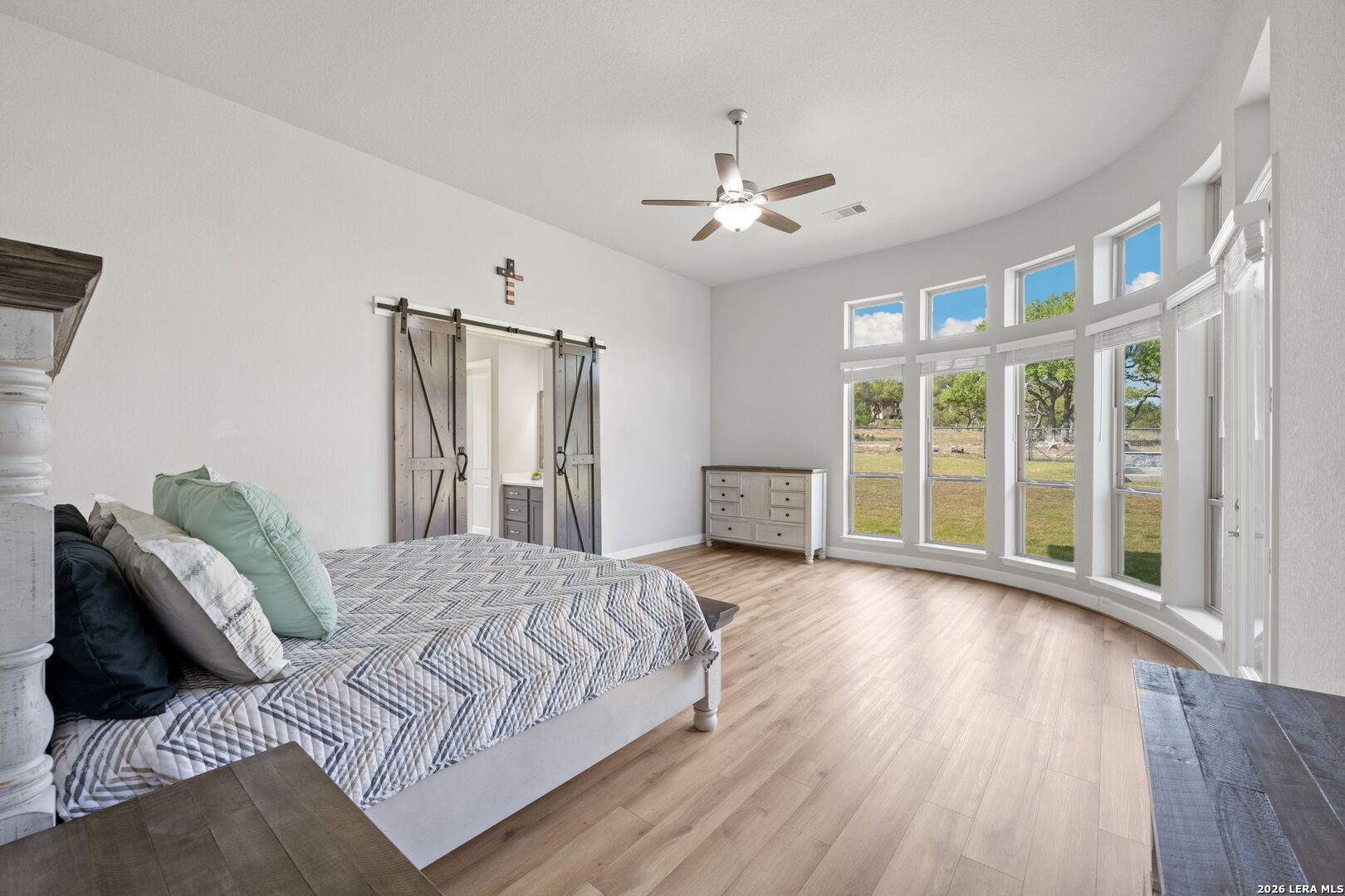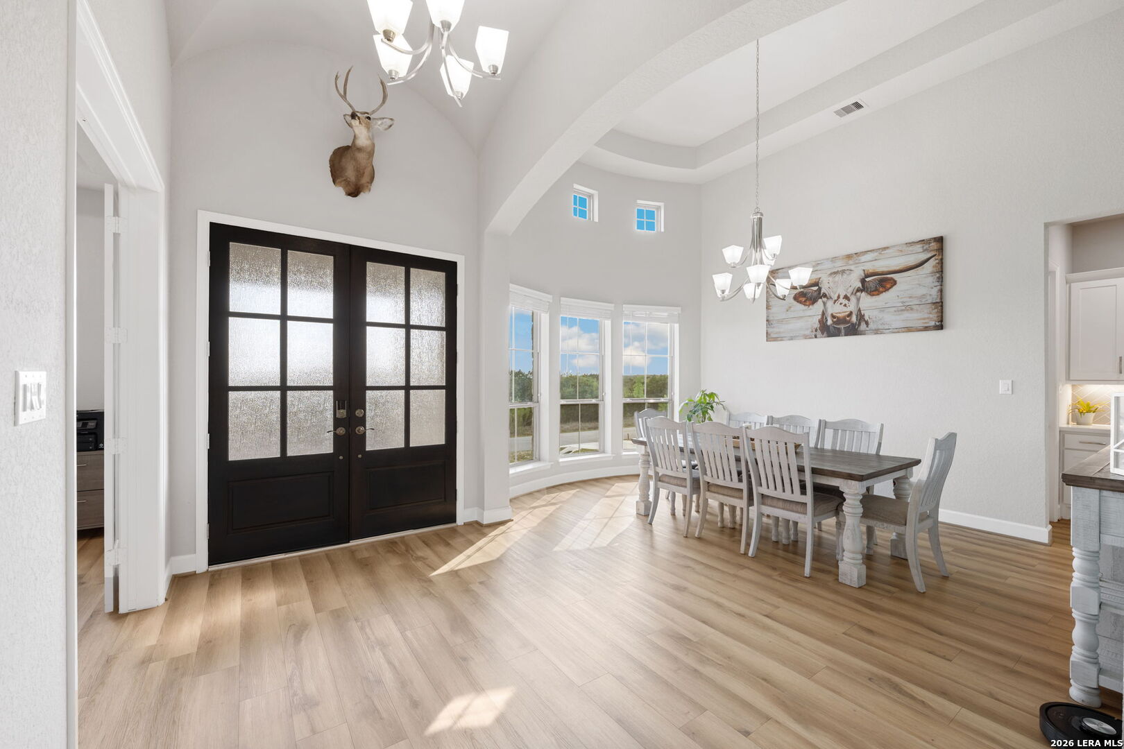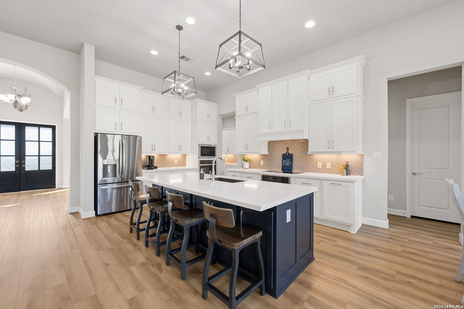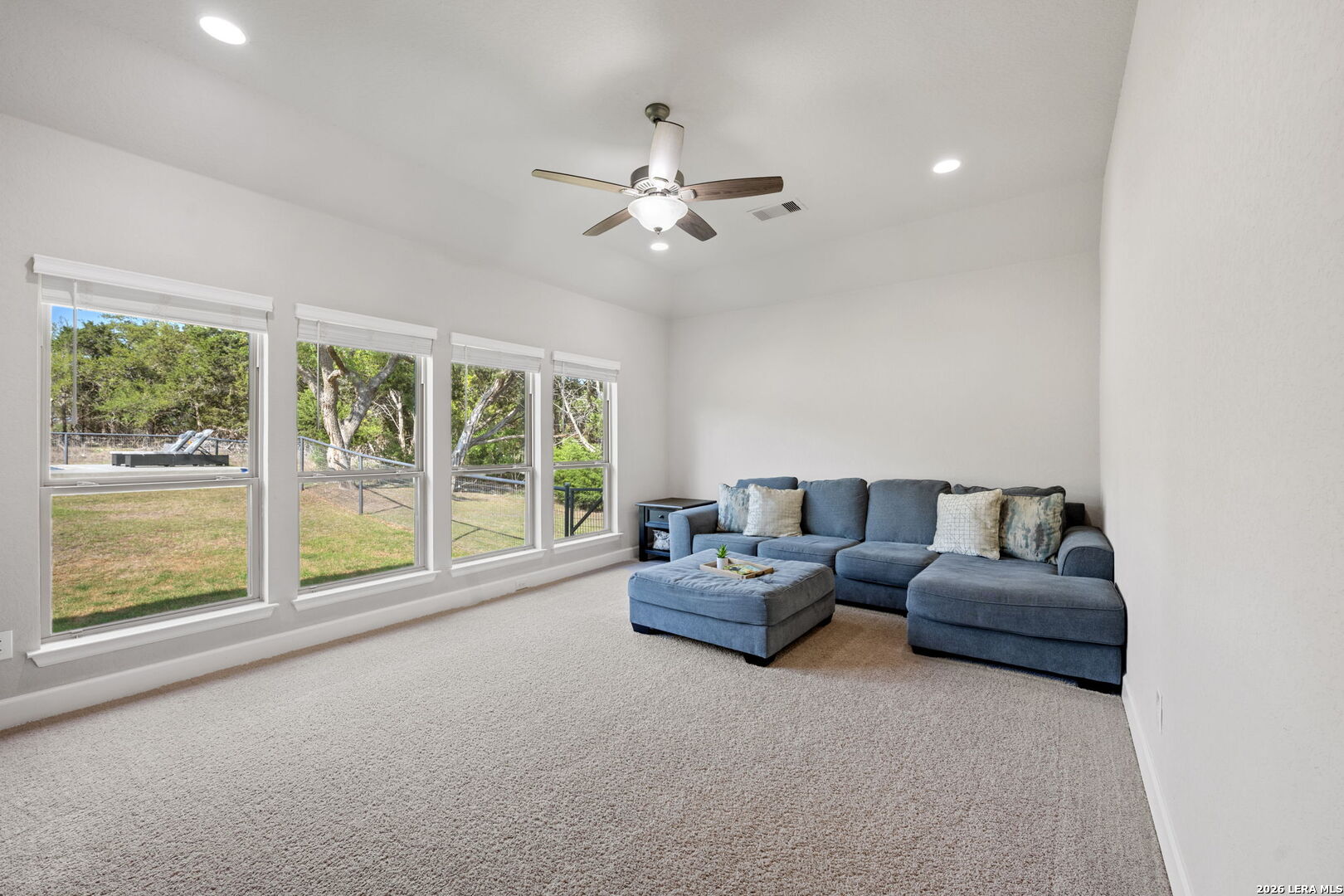 Welcome to an exceptional expression of Hill Country luxury in the highly coveted community of Vintage Oaks. Built in 2021 by Perry Homes, this 3,478 square foot residence is privately positioned on a premier cul-de-sac homesite, capturing sweeping panoramic views that set a new standard for elevated living in New Braunfels. From the moment you arrive, the home exudes a sense of presence and refinement, with intentional design, clean architectural lines, and a layout that seamlessly blends sophistication with livability. Inside, expansive living spaces are framed by natural light and curated finishes, creating an atmosphere that feels both elevated and inviting. At the heart of the home, the chef's kitchen is thoughtfully designed for both function and statement, featuring quartz countertops, double ovens, an oversized island, and a seamless transition into both formal and casual dining spaces. This central gathering space flows effortlessly into the main living area, where walls of windows showcase uninterrupted views of the resort-style backyard. Step outside to a private outdoor retreat designed for both relaxation and entertaining. The custom pool and spa serve as the focal point, surrounded by expansive patio space and a backdrop of rolling Hill Country views, delivering a true sense of privacy and escape. The primary suite is a secluded sanctuary, offering a spa-inspired bath complete with a garden tub, walk-in shower, and multiple oversized walk-in closets. Secondary bedrooms are thoughtfully positioned, connected by a well-appointed Jack and Jill bath, while a dedicated office and spacious game room provide flexibility for both work and lifestyle. Every element of this home has been carefully considered to deliver a balance of luxury, comfort, and functionality. Residents of Vintage Oaks enjoy access to one of the most sought-after amenity centers in the region, including resort-style pools, a lazy river, state-of-the-art fitness center, scenic walking trails, and a vibrant, community-driven atmosphere. This is more than a home, it is a statement. A rare opportunity to own a newer construction property with commanding views, luxury outdoor living, and timeless design in one of the Texas Hill Country's premier communities.