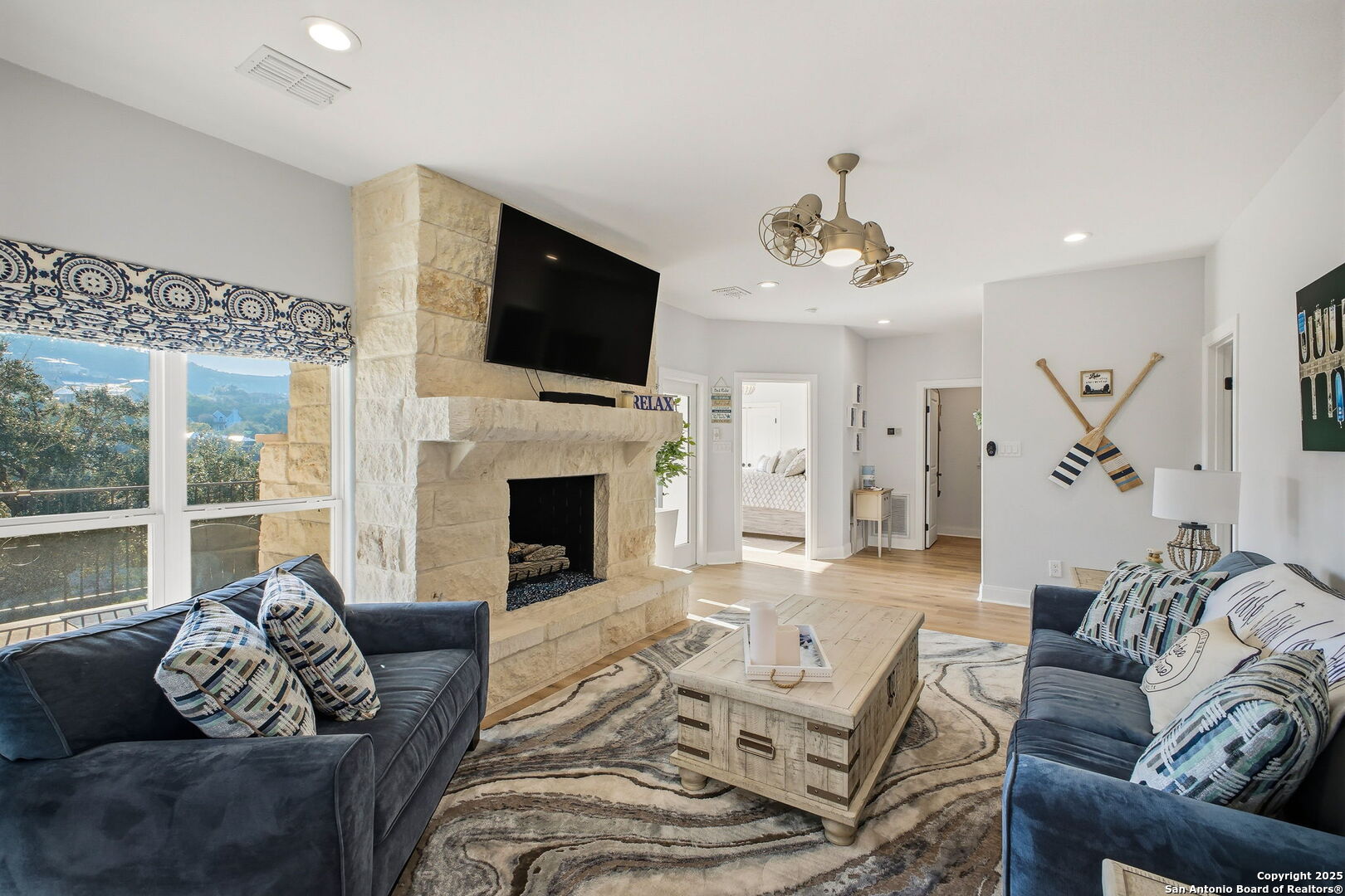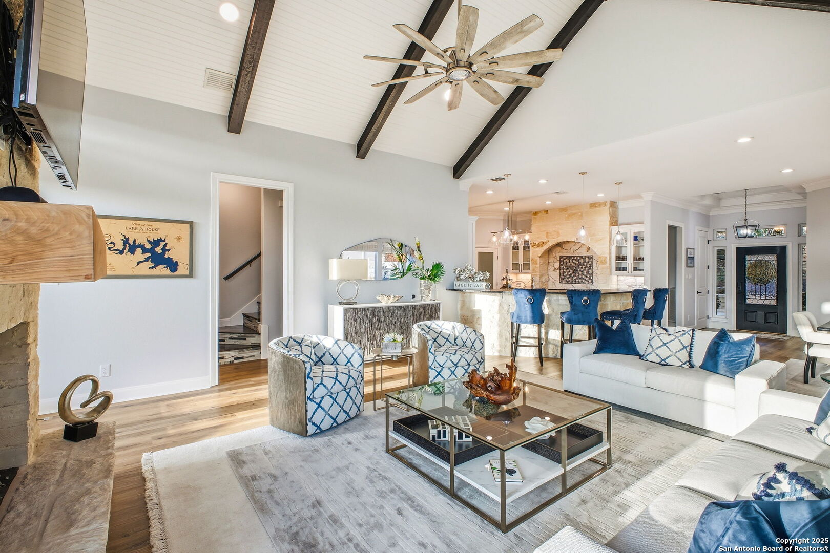 Welcome to your dream escape nestled in the heart of the Texas Hill Country! This stunning 4-bedroom, 4.5-bath luxury residence offers the perfect blend of elegance and comfort, with breathtaking views of Canyon Lake and upscale features throughout. New HVAC, completely remodeled interior, new outdoor kitchen with full wireless Sonos system. Step into an open-concept living space filled with natural light, thanks to expansive windows that frame the tranquil water views. The living room centers around a striking stone-wrapped fireplace, adding warmth and charm to the refined interior. The chef's dream kitchen is equipped with premium gas cooking, high-end appliances and custom cabinetry. Host guests in style with seamless indoor-outdoor living-step outside to the spacious wood deck and fully equipped outdoor kitchen, ideal for lakefront gatherings and sunset dining. Enjoy serene mornings and peaceful evenings overlooking the water, surrounded by mature trees and the rolling beauty of the Hill Country. This home offers luxury lakeside living at its finest-whether you're looking for a full-time residence or a high-end getaway.