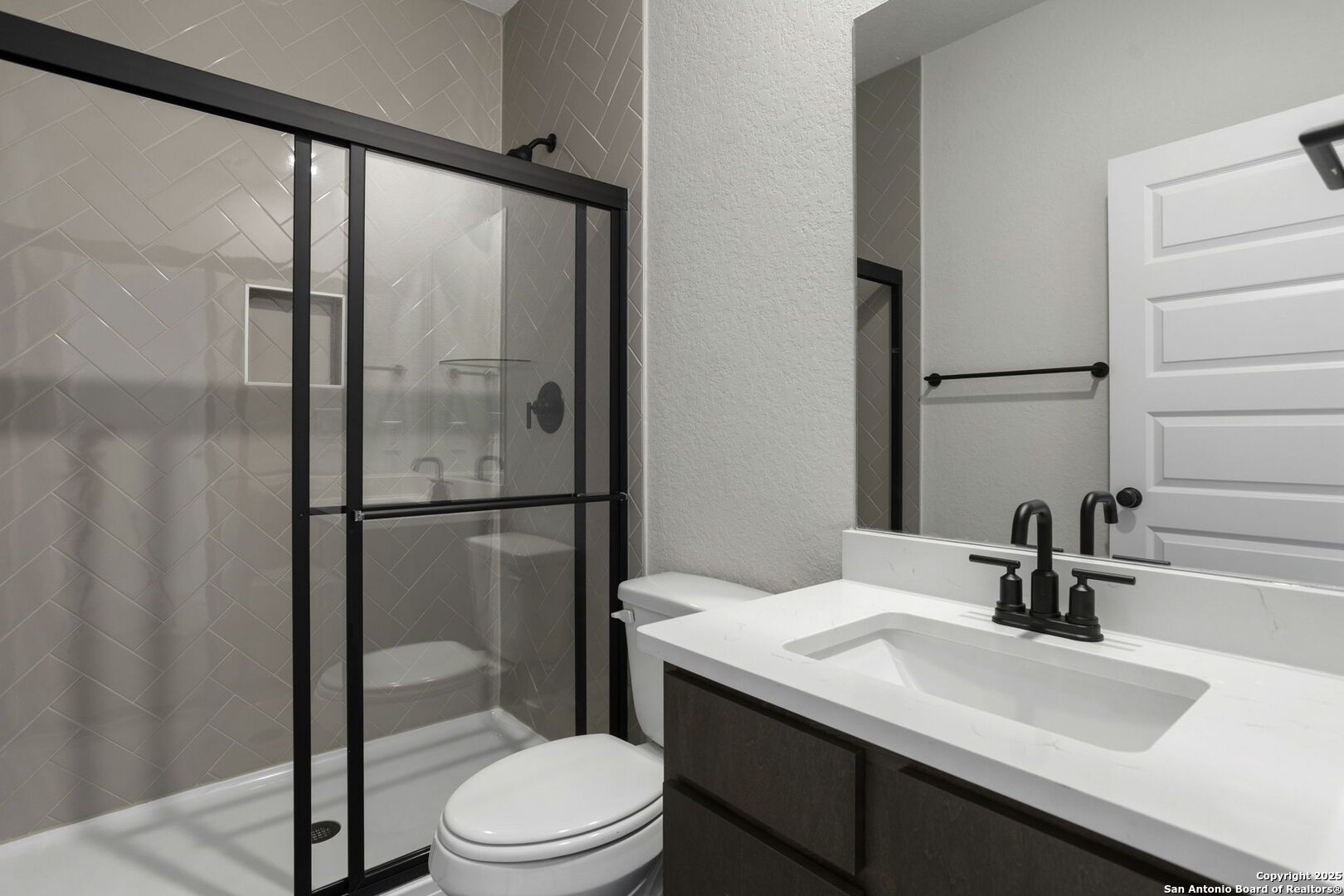 Welcome to 2079 Kinglake Gate - Scenic Luxury in Weltner Farms Located in the picturesque community of Weltner Farms in New Braunfels, TX, this stunning Chisos Mountain View floor plan offers 4 bedrooms, 3.5 bathrooms, a dedicated study, and 2,938 sq ft of thoughtfully designed living space across two levels-plus no rear neighbors for added privacy and serene Hill Country views. Key Features Spacious & Elegant Design: Step into a grand foyer that leads to a bright, open-concept layout where the kitchen, dining, and living areas flow seamlessly-perfect for entertaining. The kitchen features gas appliances, a walk-in pantry, and a cozy dining nook. Luxurious Primary Suite: Located on the main floor, the primary suite is a true retreat, complete with a fireplace, soaking tub, walk-in shower, dual vanities, and a custom walk-in closet with a private washer and dryer. Flexible Living Spaces: Upstairs, you'll find secondary bedrooms, a spacious loft ideal for a game room or media space, and a convenient laundry room. A dedicated study on the main floor offers flexibility for remote work, a playroom, or formal dining. Outdoor Living: Enjoy peaceful Hill Country views from the expansive covered patio, with no rear neighbors for added tranquility. Additional Highlights: Located in Comal ISD Low tax rate Close to the Guadalupe River, Schlitterbahn, local dining, shopping, and entertainment Special features include a dedicated study and greenbelt homesite