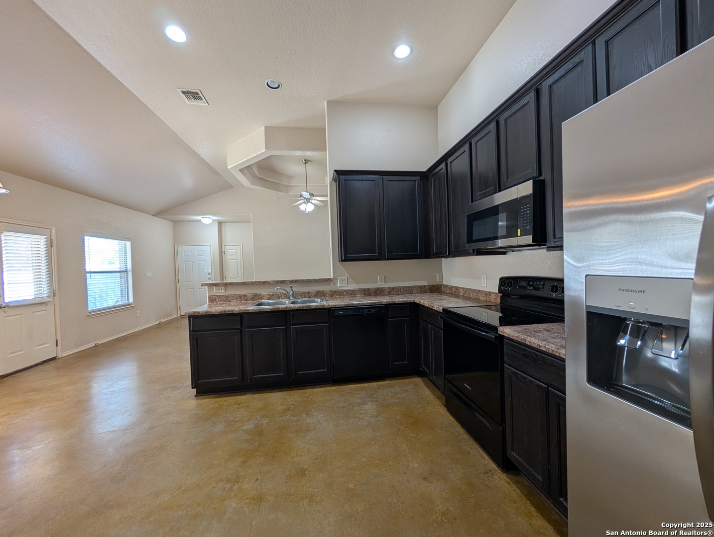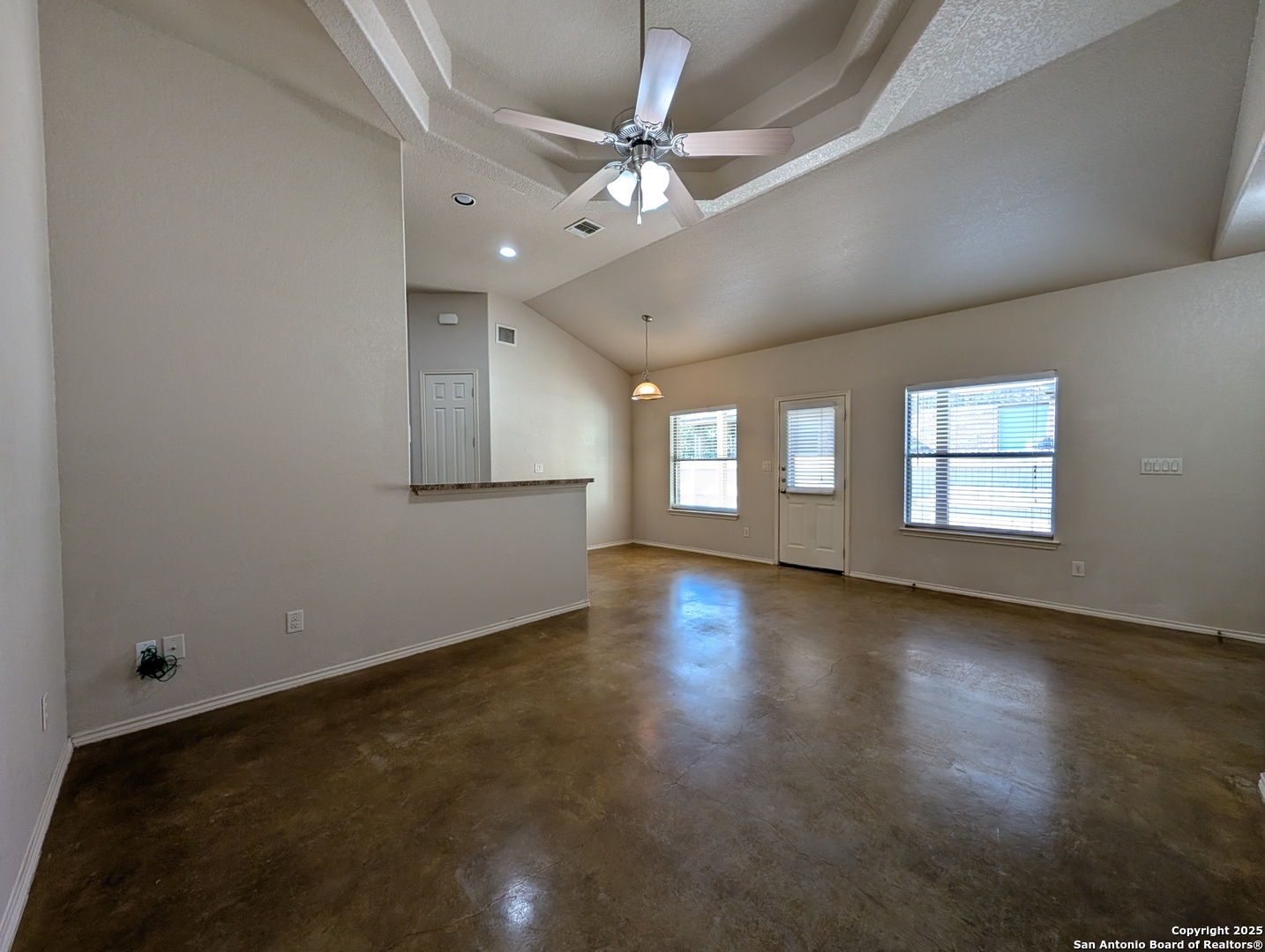 3/2/1 in Oelkers Acres. Close to Creekside area shopping, restaurants , & entertainment. 3.4 Miles to Downtown New Braunfels. Flooring is stained concrete floors, no carpet! Front yard mow & trim paid by owner. Kitchen includes: fridge, stove / oven range electric, dishwasher, built in microwave, breakfast bar, recessed lighting, & a pantry. Other Features: ceiling fans, high ceilings, trayed ceilings, vaulted ceilings, primary has walk in closet, sprinkler system, garage door opener, washer & dryer connections in garage, covered back patio, & a fenced in Yard. CISD. 2 pets ok, 50 lbs max ( no aquariums ) ** 2 weeks free rent ( 14 days) off the first full months rent ***