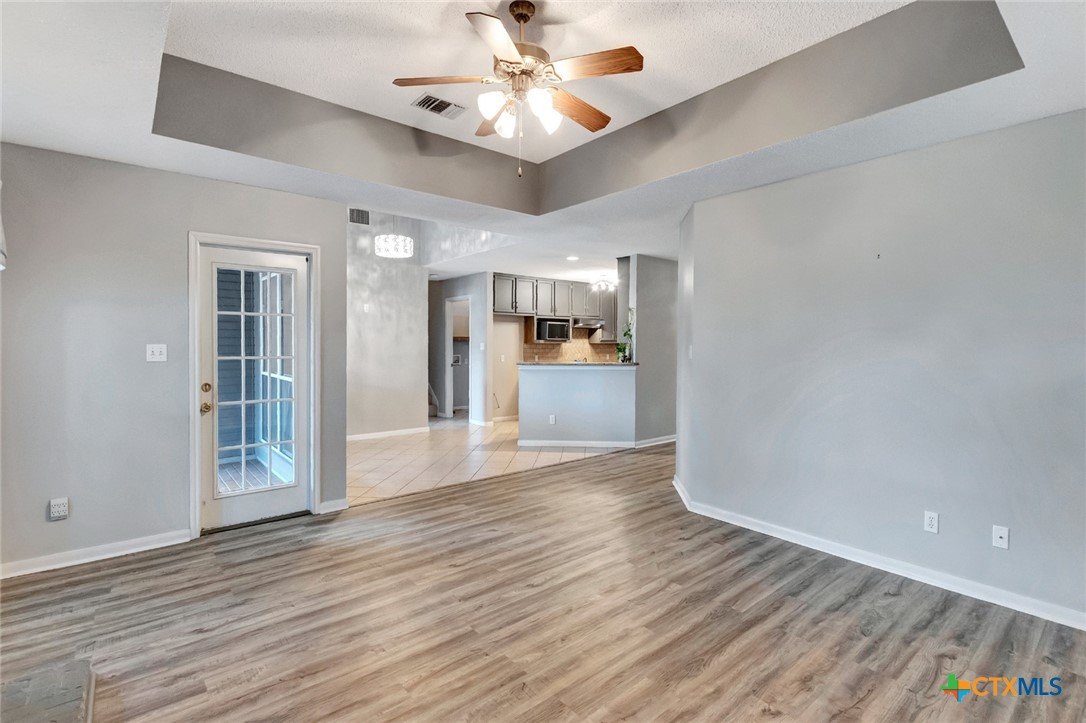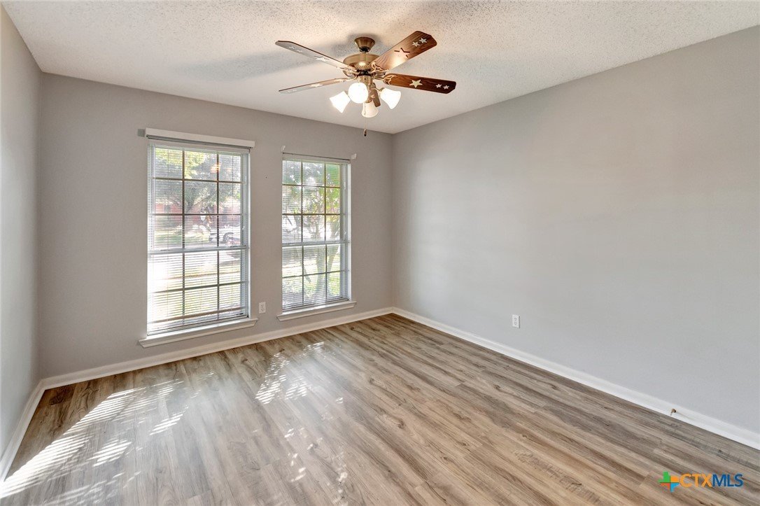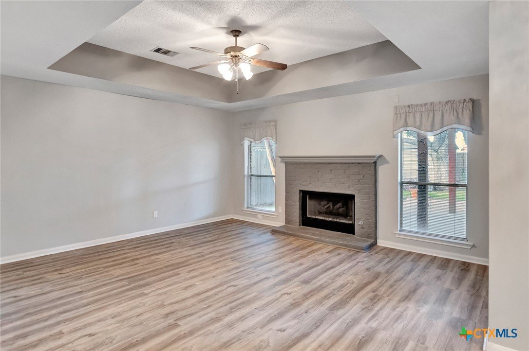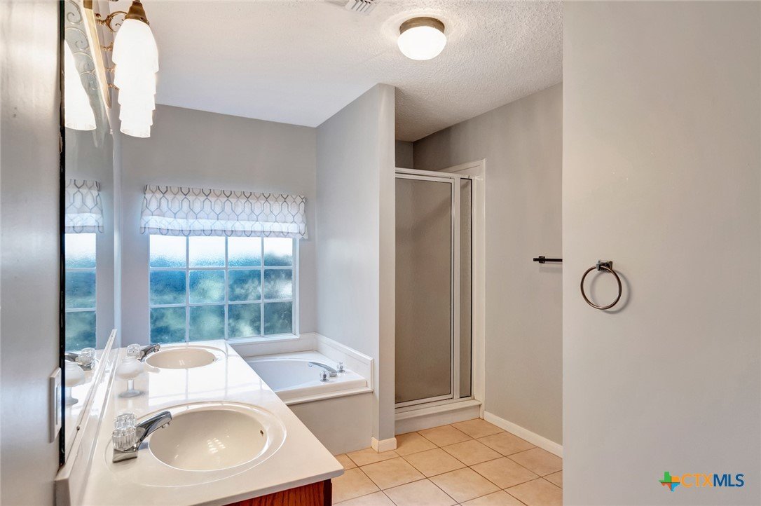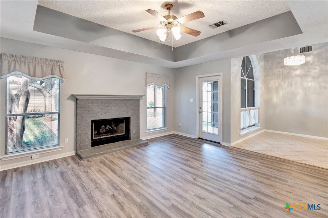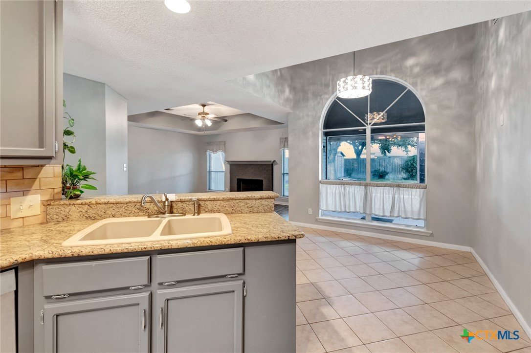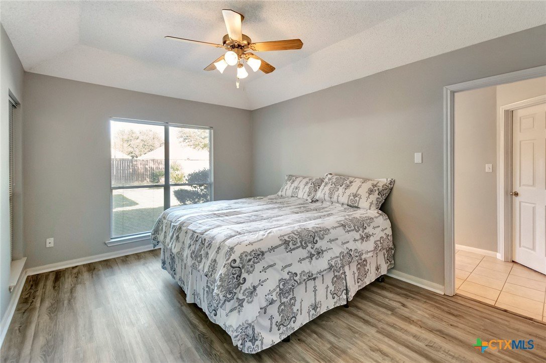 This charming 3-bedroom, 2-bath home located in Eagle Creek is ready for new owners! Step inside to find beautiful new vinyl plank flooring that offers the look of wood with modern durability. The updated kitchen boasts granite countertops, a stylish tile backsplash, and newer appliances. The spacious living area is perfect for relaxing, featuring a cozy fireplace with gas logs. The split-bedroom floor plan provides added privacy, and the guest bath has been updated with a stunning tiled walk-in shower. The primary suite is a retreat of its own with double vanities, a large walk-in closet, and a separate tub and shower. Upstairs, you'll find a massive second living area in the loft, perfect for a game room, office, or additional lounging space. Outside, the backyard is ideal for entertaining, featuring a covered deck with a pergola and a handy storage building. Located in a neighborhood known for its great schools, this home is a must-see!