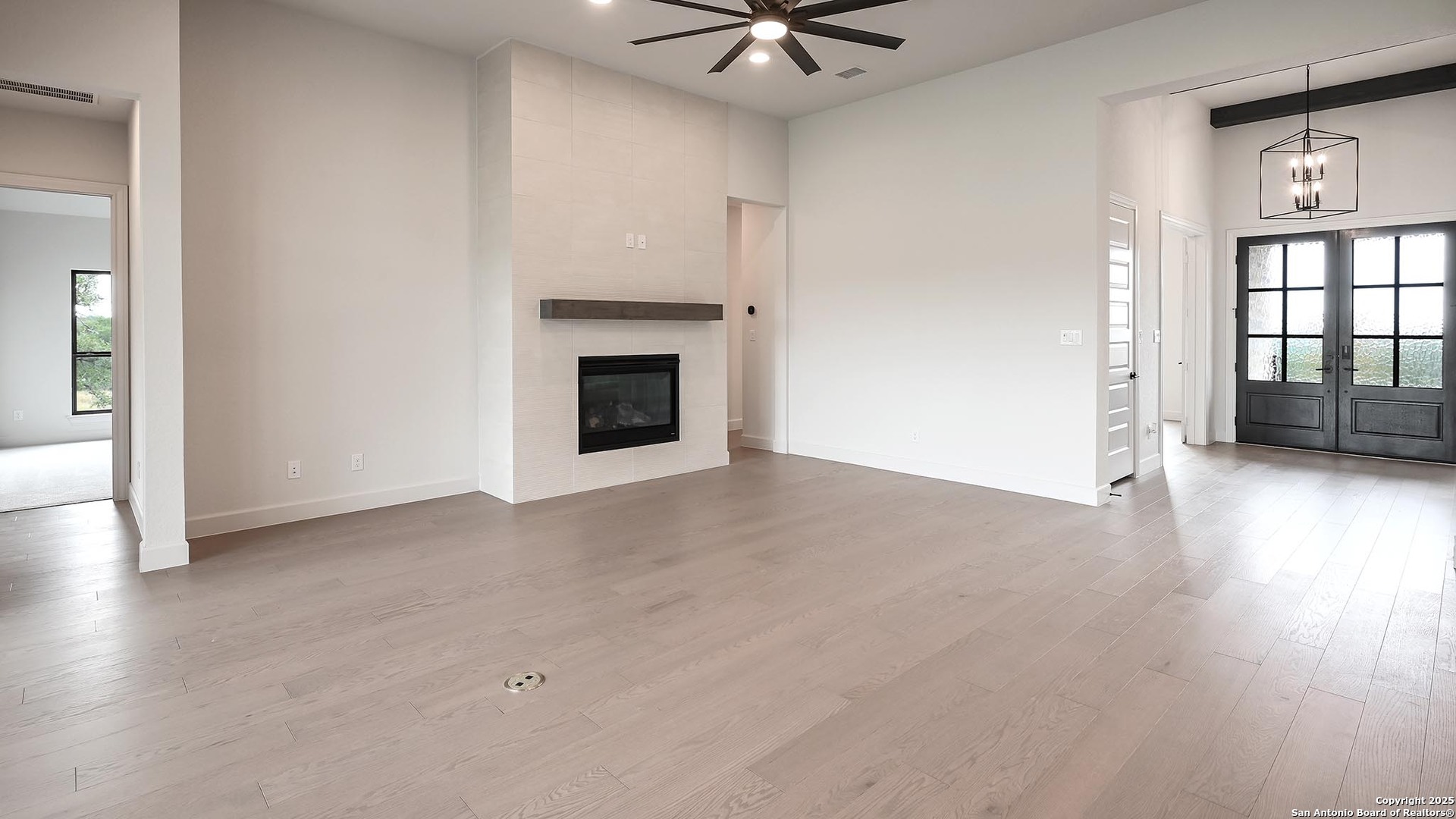Featured on a 1 acre homesite. Double door entry with a 13-foot ceiling. Hardwood floors throughout living areas. Home office with French doors. Elegant formal dining room with a tray ceiling set at entry. Spacious family room features a sliding glass door, wood mantel fireplace and opens to the morning area. Kitchen features island with built-in seating space, two wall ovens, 5-burner gas cooktop, walk-in pantry and a Butler's pantry. Game room just off the family room. Private primary suite with a 12-foot ceiling and a curved wall of windows. Primary bath includes a freestanding tub, separate glass-enclosed shower, dual vanities, a linen closet and two large walk-in closets. Secondary bedrooms, a linen closet and a Hollywood bath complete this beautiful one-story design. Covered backyard patio. Mud room just off the three-car garage.