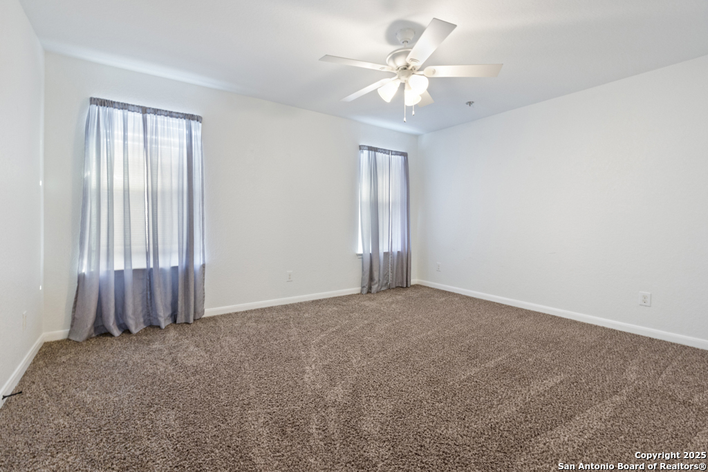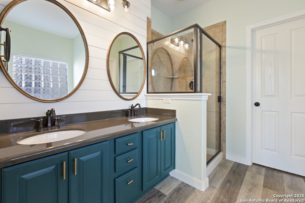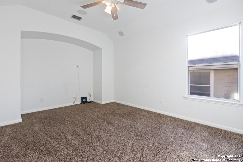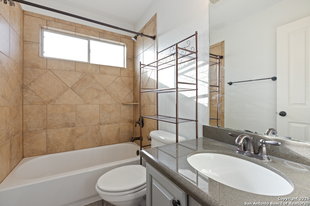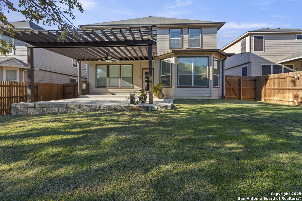 Immaculate home now available for lease in the Saddle Creek subdivision of Cibolo, TX, where no detail was overlooked. This beautifully upgraded home features vinyl plank flooring, a board-and-batten entryway, and upgraded lighting throughout. The kitchen offers quality cabinetry, granite countertops, a tiled backsplash, and matching stainless steel appliances. The primary bedroom is conveniently located downstairs and includes a spacious en suite bath with double vanities, a large garden tub, separate shower, and upgraded mirrors. Upstairs you'll find three additional bedrooms, a large game room, and a separate media room, providing plenty of flexible living space. The backyard is perfect for entertaining with a patio, pergola, storage shed, and plenty of room to enjoy, and the home also includes a water softener. Ideally located with easy access to I-35 and I-10 and just a short drive to Randolph AFB, this gem of a home is a must-see and will not disappoint.