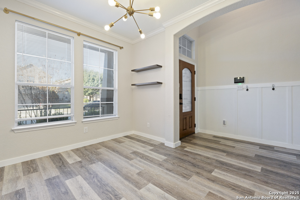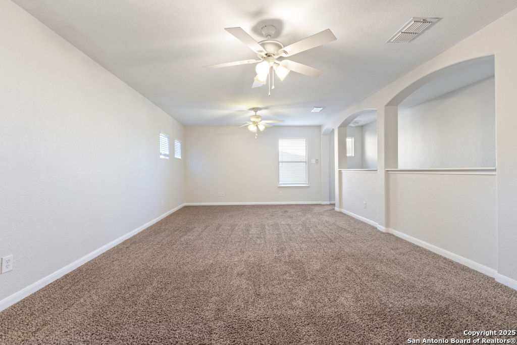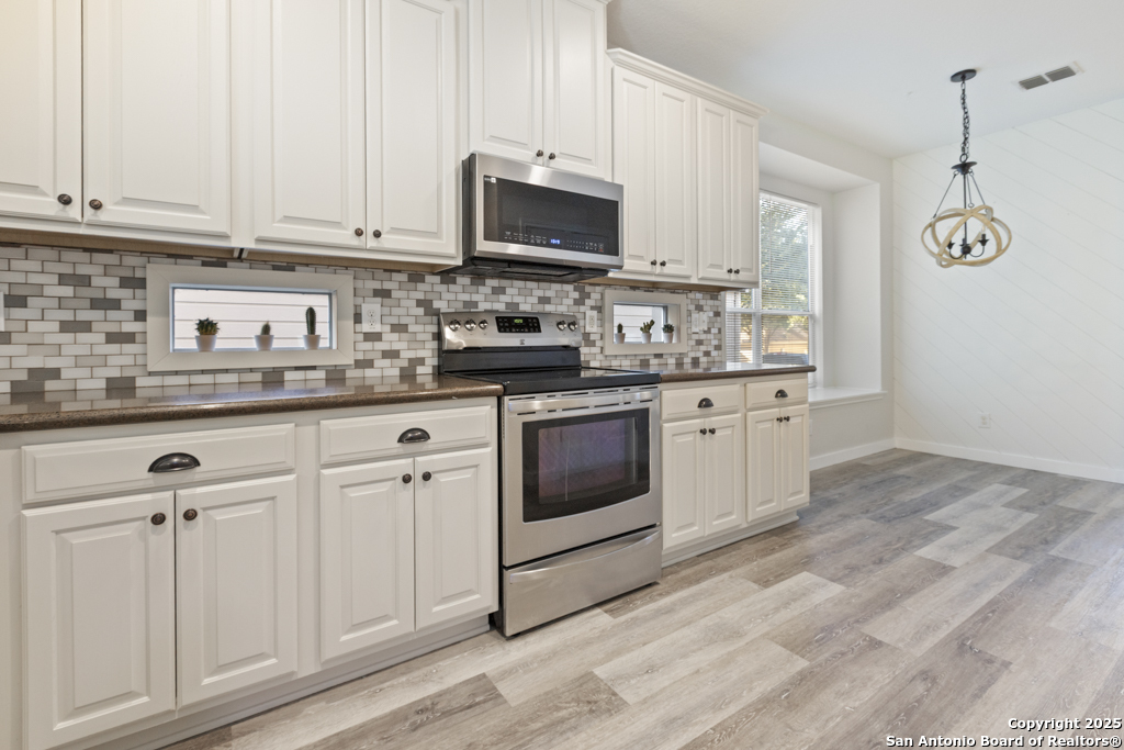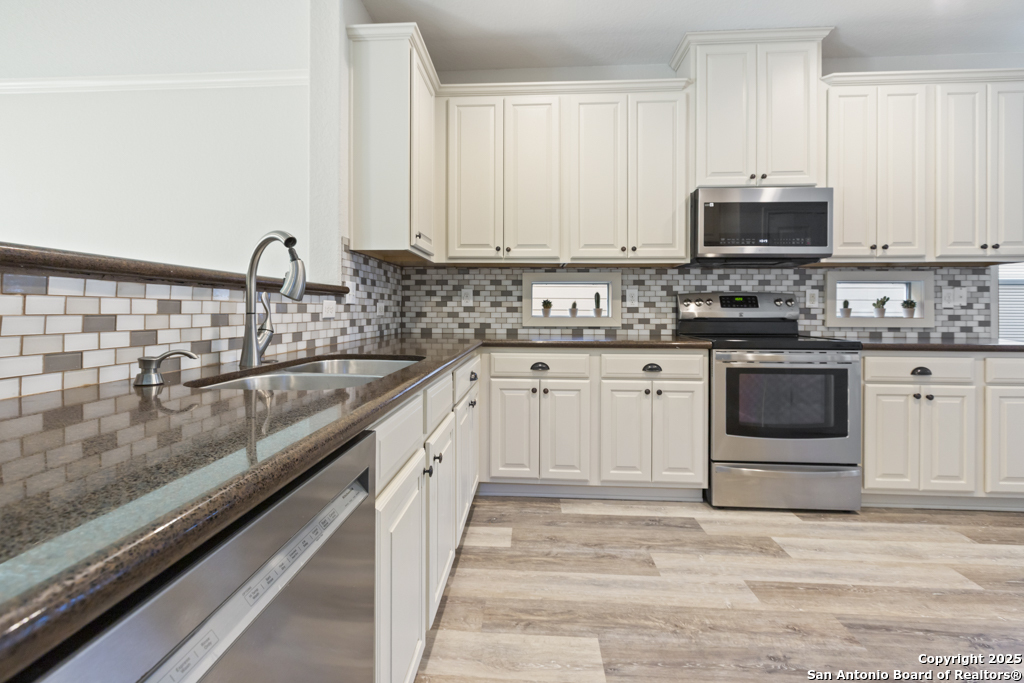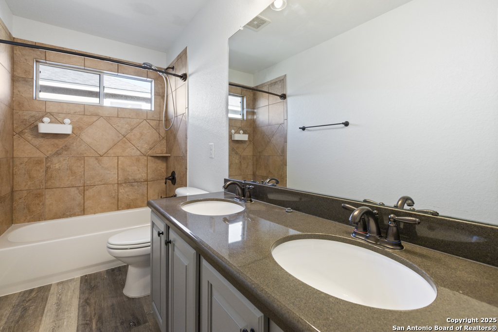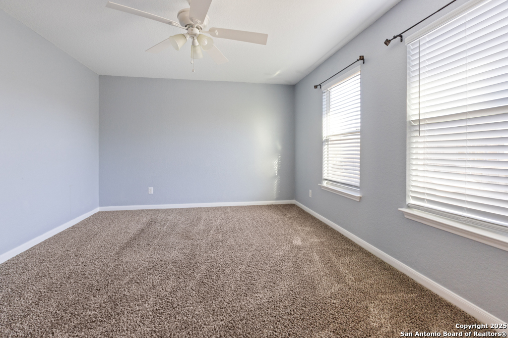 Immaculate home now available for lease in the Saddle Creek subdivision of Cibolo, TX, where no detail was overlooked. This beautifully upgraded home features vinyl plank flooring, a board-and-batten entryway, and upgraded lighting throughout. The kitchen offers quality cabinetry, granite countertops, a tiled backsplash, and matching stainless steel appliances. The primary bedroom is conveniently located downstairs and includes a spacious en suite bath with double vanities, a large garden tub, separate shower, and upgraded mirrors. Upstairs you'll find three additional bedrooms, a large game room, and a separate media room, providing plenty of flexible living space. The backyard is perfect for entertaining with a patio, pergola, storage shed, and plenty of room to enjoy, and the home also includes a water softener. Ideally located with easy access to I-35 and I-10 and just a short drive to Randolph AFB, this gem of a home is a must-see and will not disappoint.