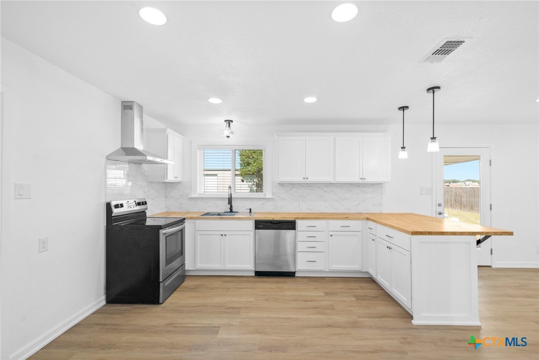 If you’re looking for a home that honestly has it all, you need to check this one out in Cedar Ridge. It’s a three-bedroom, two-bath home on a half-acre, just outside city limits, so you save money on taxes, which is a huge plus. The whole place has been updated, starting with super durable flooring and fresh paint throughout. It feels modern, bright, and actually welcoming when you walk inside. The kitchen’s one of the best features: new cabinets, butcher block countertops, deep sink, and a huge window over the sink. There’s a bar counter perfect for friends or quick meals, plus stainless appliances and pendant lights that make it look like something out of a design magazine. All the bedrooms have new blinds, trim, and baseboards, so they don’t feel outdated. Both bathrooms are fully renovated with modern fixtures and tile, really clean and comfortable. There’s even a spacious utility room so laundry isn’t squeezed into a closet. Outside, everything’s been improved with new paint, a custom gutter system, French drains, and front and back lights. The yard’s big with fresh landscaping, carpet grass, and granite rock flower beds, along with a 6’ privacy fence. But for anyone who values space or projects, the shop out back is on another level. It’s 30x40 feet, with three 10x10 bay doors and full electricity. You could easily park multiple vehicles, work on hobbies, start a workshop, or even use the space for parties. It’s one of those rare features that gives you real options. There is a covered porch and a large wooden deck, perfect for grilling or relaxing with friends. The driveway and culvert are brand new concrete, and important things like the water heater, AC system, and roof have all been taken care of. It’s move-in ready with no HOA drama. If you want a home that’s both practical and stylish, come tour this place and see for yourself.