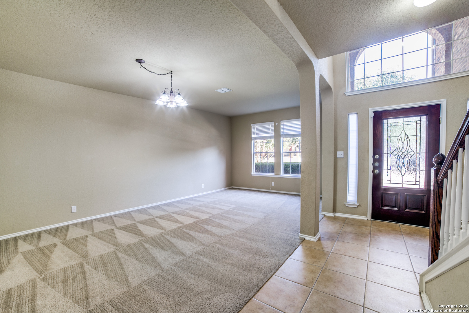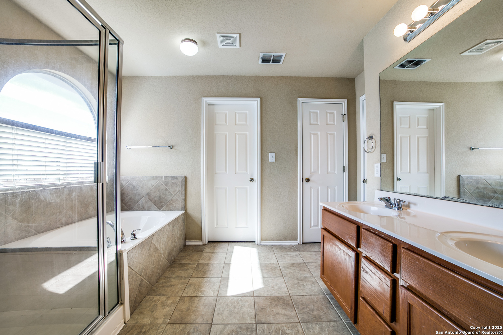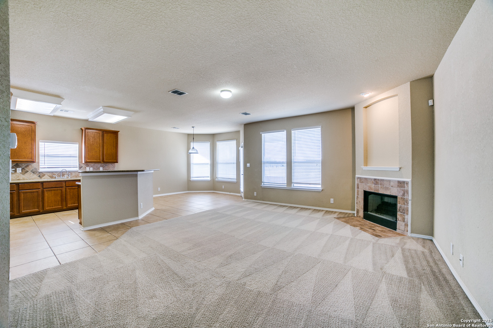 This spacious 4-bedroom, 2.5-bath home in Falcon Ridge is move-in ready! Featuring an open floor plan with high ceilings and arched walkways, this home offers both style and functionality. A formal dining room sits off the entry, while the kitchen boasts ample cabinet and counter space, black appliances, and a breakfast bar that flows into the family room with a cozy wood-burning fireplace. A dedicated office provides the perfect space for work or study. Upstairs, a second family room offers plenty of space for movie or game nights. The oversized master suite features a recessed ceiling, large walk-in closet, double vanity, garden tub, and separate shower. Outside, enjoy a spacious backyard with a covered patio and privacy-ideal for entertaining. Conveniently located near Randolph AFB, shopping, and dining.