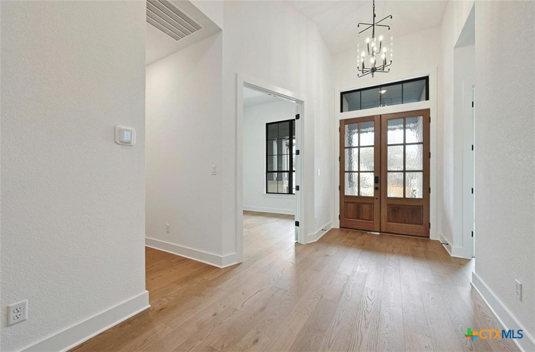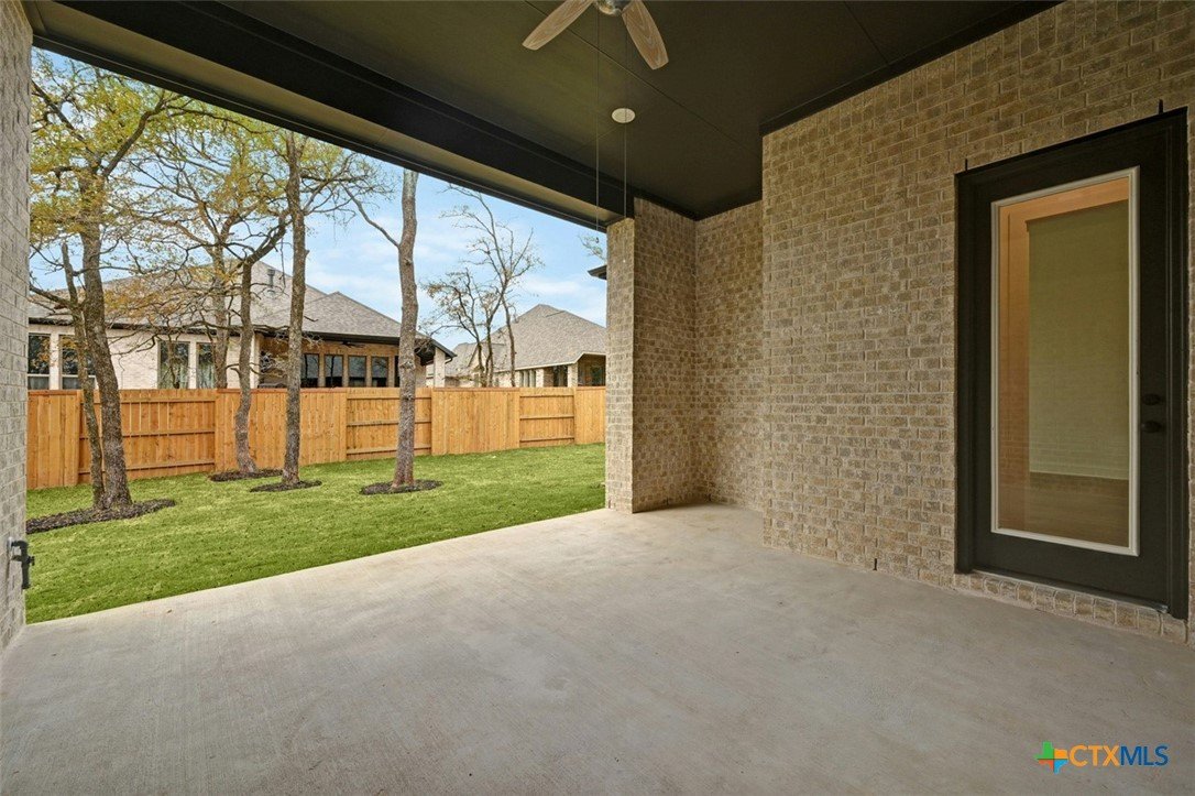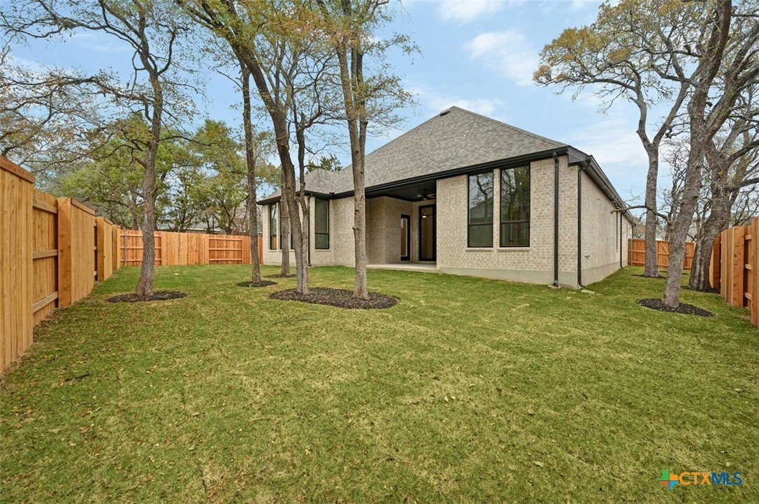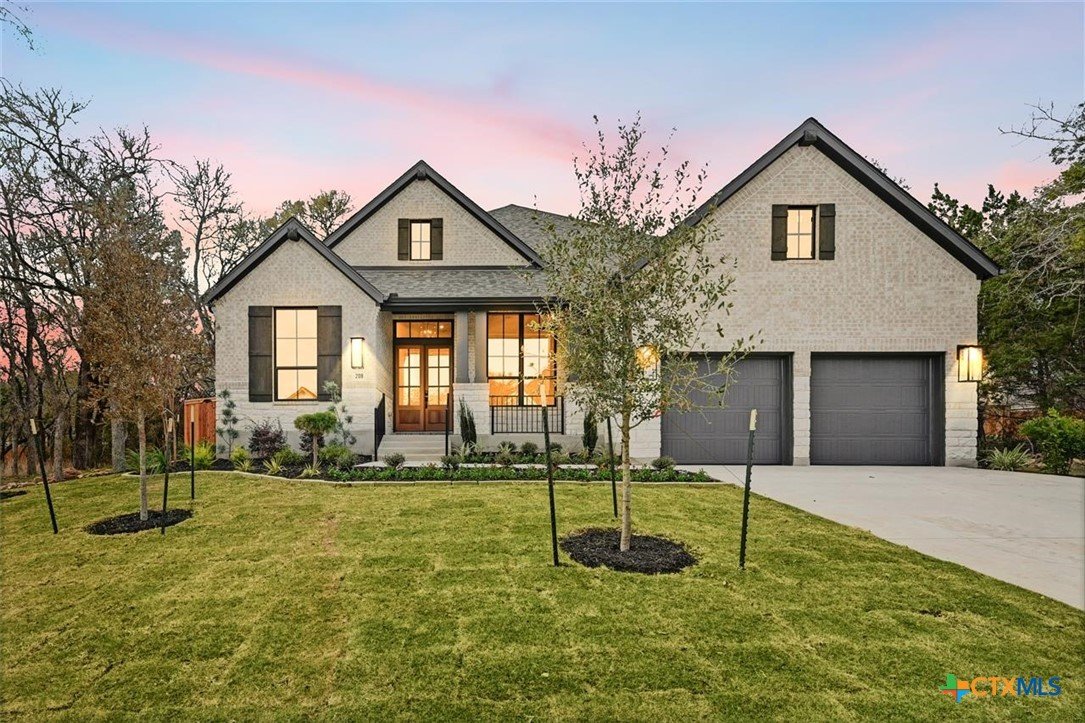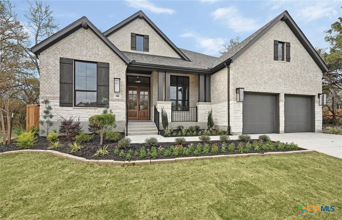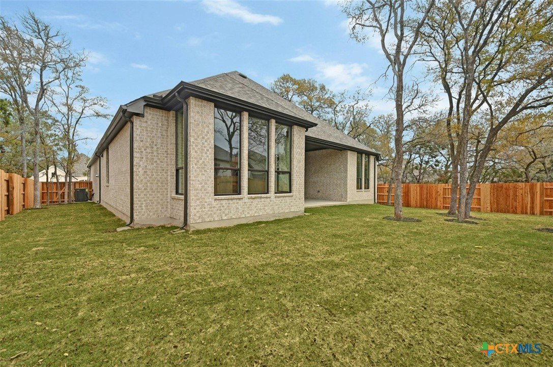 MLS 562186 - Built by Highland Homes - Ready Now! ~ POPULAR MODEL HOME PLAN! Stunning light brick home with white limestone & black window frames throughout for TONS of curb appeal. Mature oak trees onsite & upgraded landscaping package included! Grand home with double-door main entry & 13' ceilings throughout. Kitchen at heart of home with built-in hutch & wine rack! Sliding glass doors at patio that leads to oversized, private patio. Suite with oversized walk-in shower at front of home. Home offers 4 spacious beds with media & study. Primary is HUGE with sitting area that leads into luxury en-suite with freestanding tub & oversized shower. Built-in cabinets & sink in laundry for high-end living. Wood floors throughout all common areas, study & primary bed. Smart home technology package & energy star home!!!!