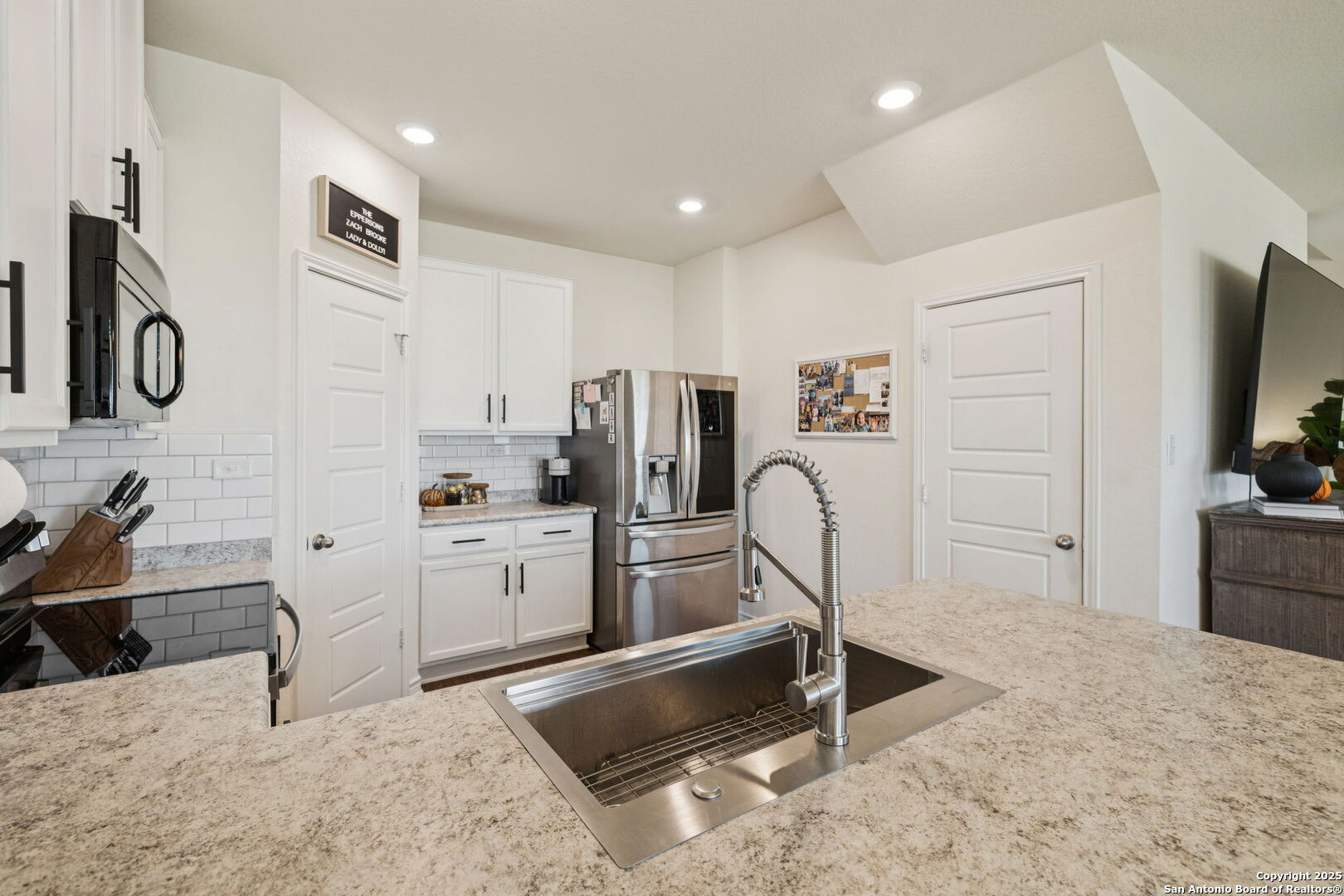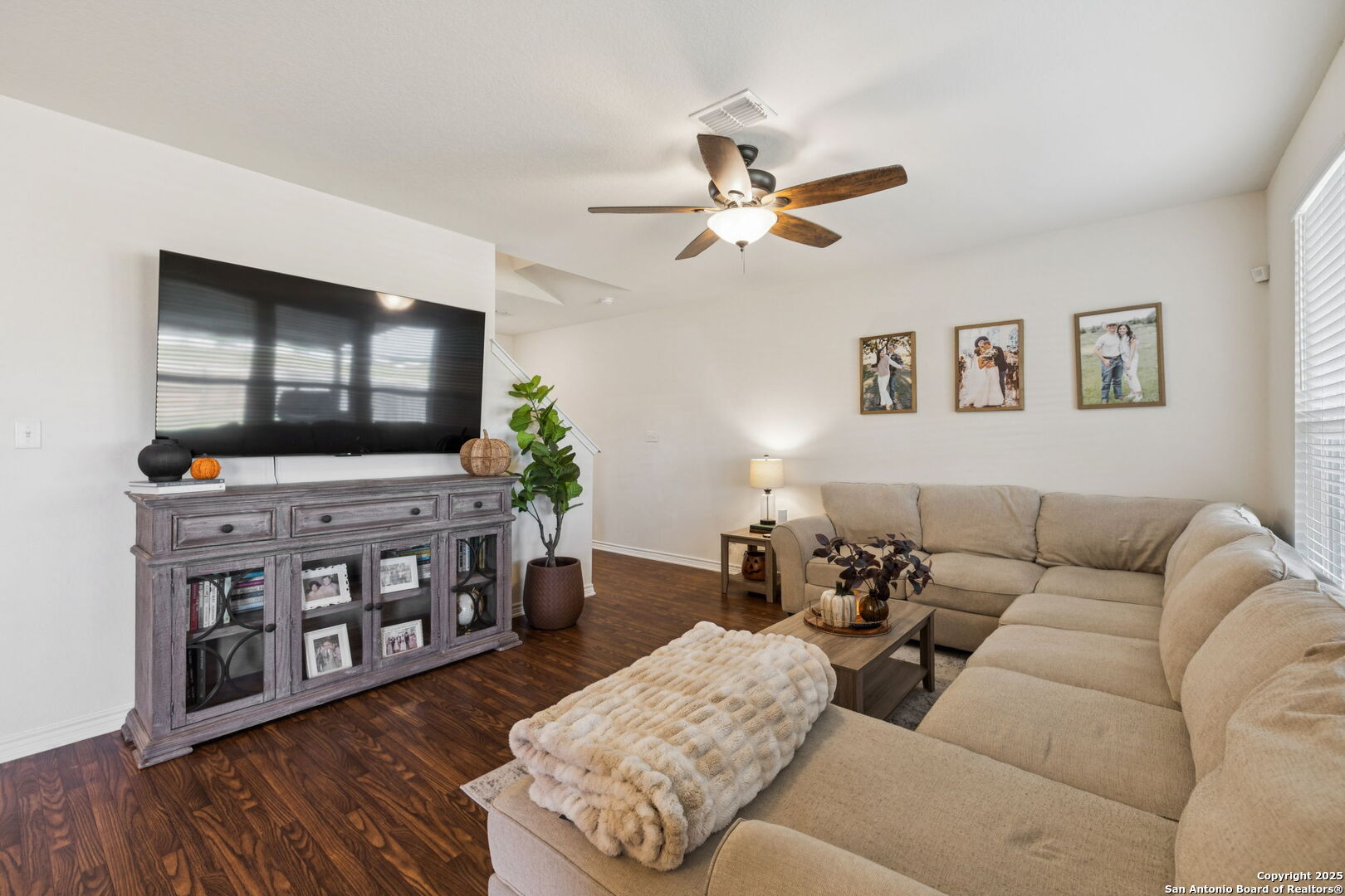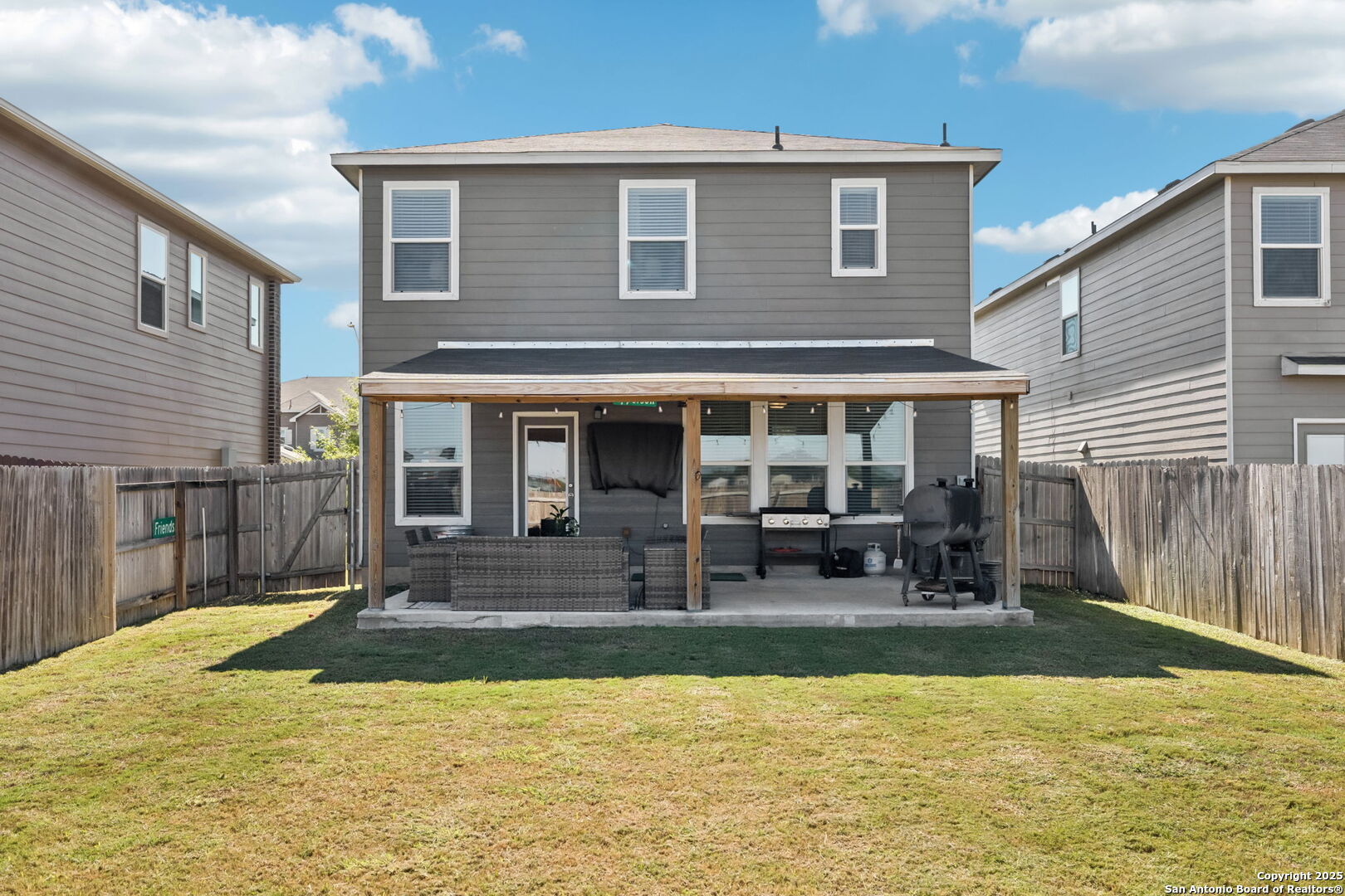 Step into this beautifully maintained two-story home with no backyard neighbors. With no permitted structures allowed within 50 feet of the back fence, you'll enjoy open views, privacy, and peace of mind-all while being just minutes from I-35, Creekside, Resolute Hospital, and the Freiheit shopping and dining districts, or a quick walk to "The Courthouse," a new pickleball hot spot! Inside, the well-designed layout features a bright, open-concept living space that flows seamlessly from the living room into the dining area and modern kitchen. The downstairs living area overlooks the backyard and open field, where a covered patio is perfect for morning coffee, weekend BBQs, or relaxing evenings. Upstairs, the spacious master suite easily fits a king bed and includes a large ensuite bathroom with a tiled, stand-alone shower. Two additional bedrooms provide comfort and versatility and are ready for you to enjoy.