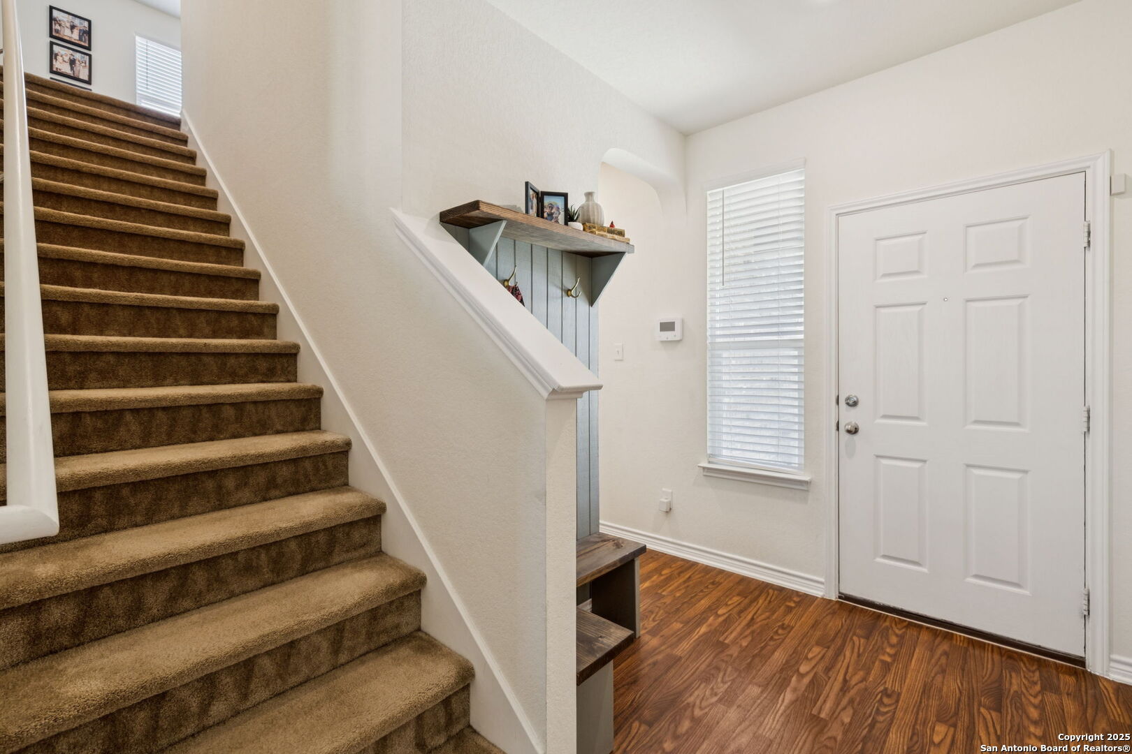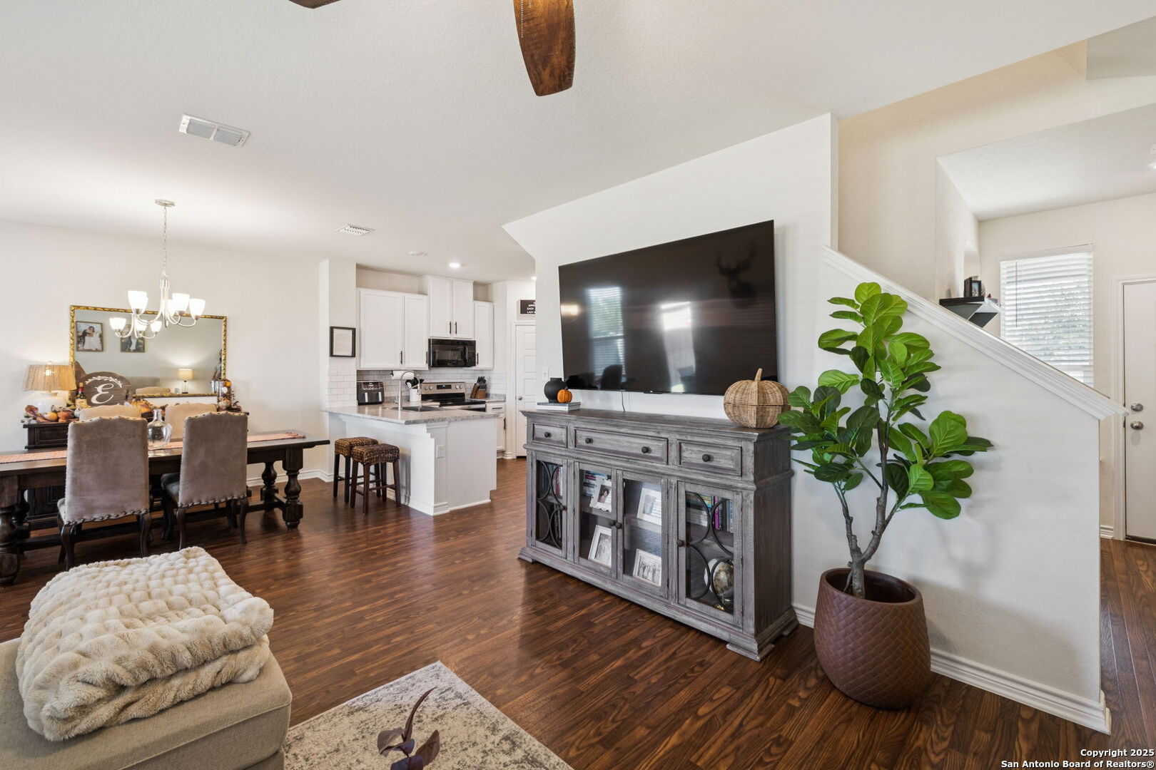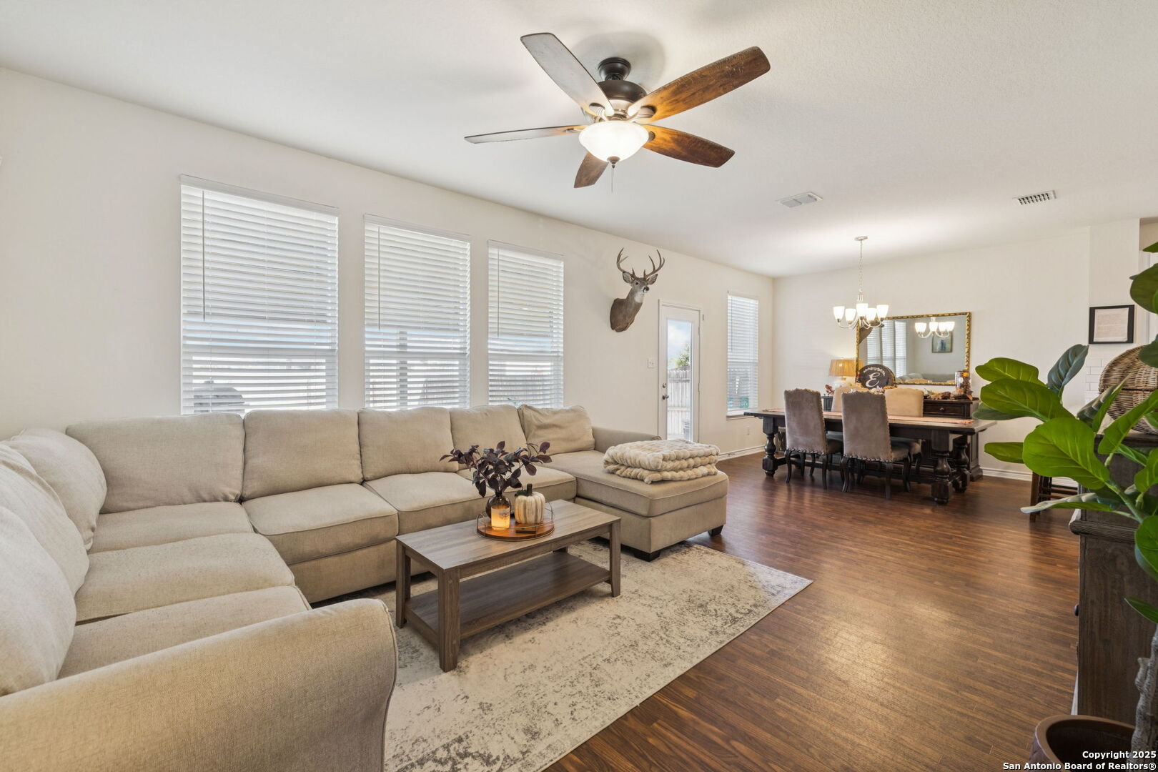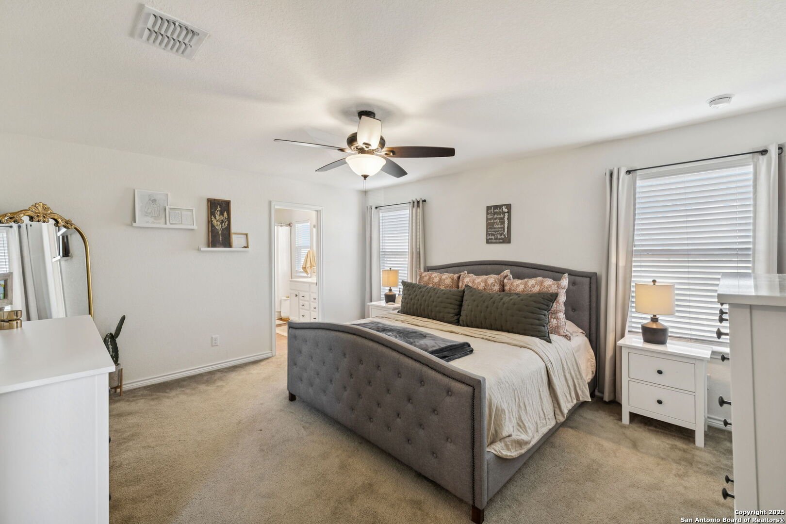 Step into this beautifully maintained two-story home with no backyard neighbors. With no permitted structures allowed within 50 feet of the back fence, you'll enjoy open views, privacy, and peace of mind-all while being just minutes from I-35, Creekside, Resolute Hospital, and the Freiheit shopping and dining districts, or a quick walk to "The Courthouse," a new pickleball hot spot! Inside, the well-designed layout features a bright, open-concept living space that flows seamlessly from the living room into the dining area and modern kitchen. The downstairs living area overlooks the backyard and open field, where a covered patio is perfect for morning coffee, weekend BBQs, or relaxing evenings. Upstairs, the spacious master suite easily fits a king bed and includes a large ensuite bathroom with a tiled, stand-alone shower. Two additional bedrooms provide comfort and versatility and are ready for you to enjoy.