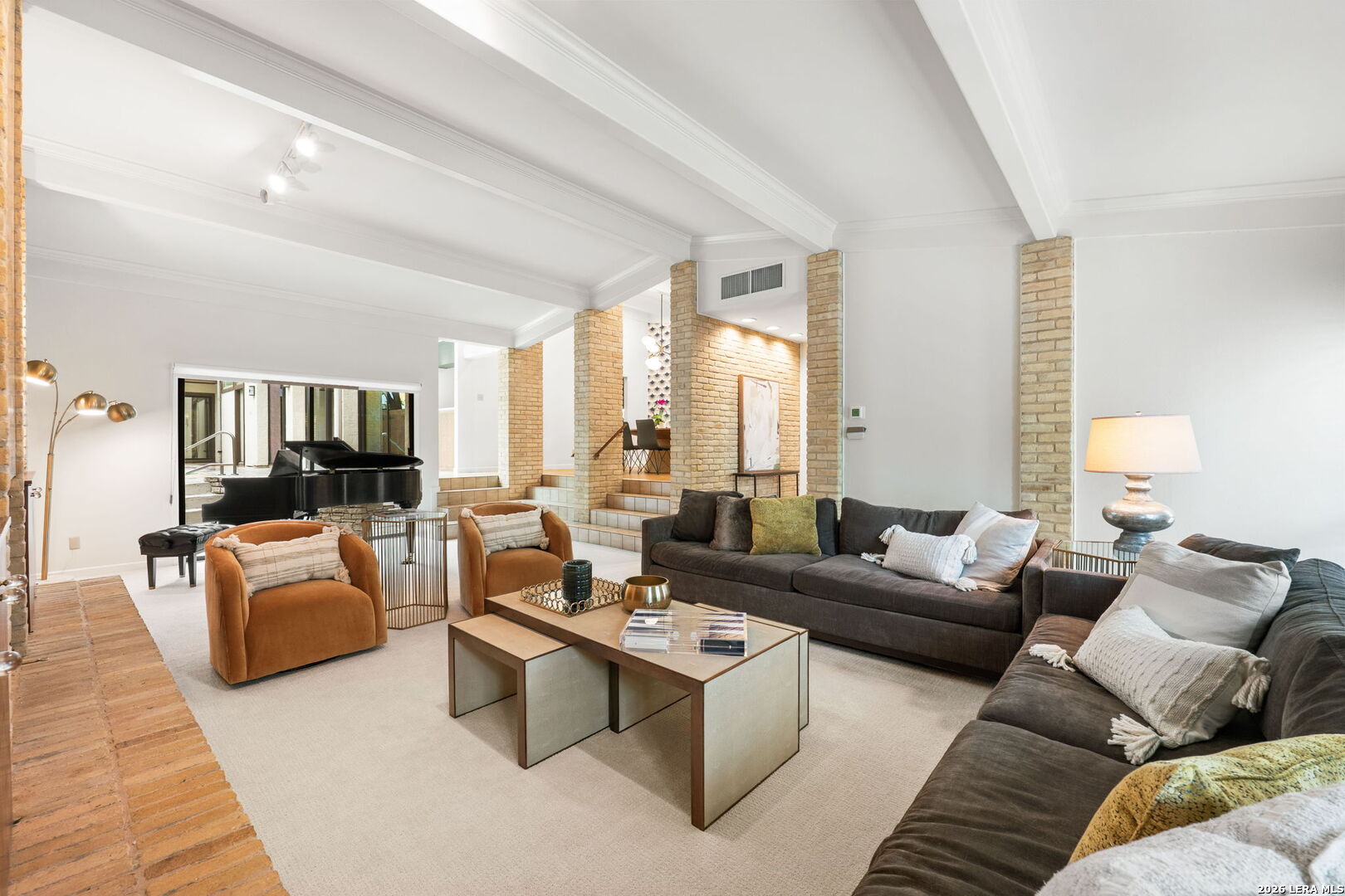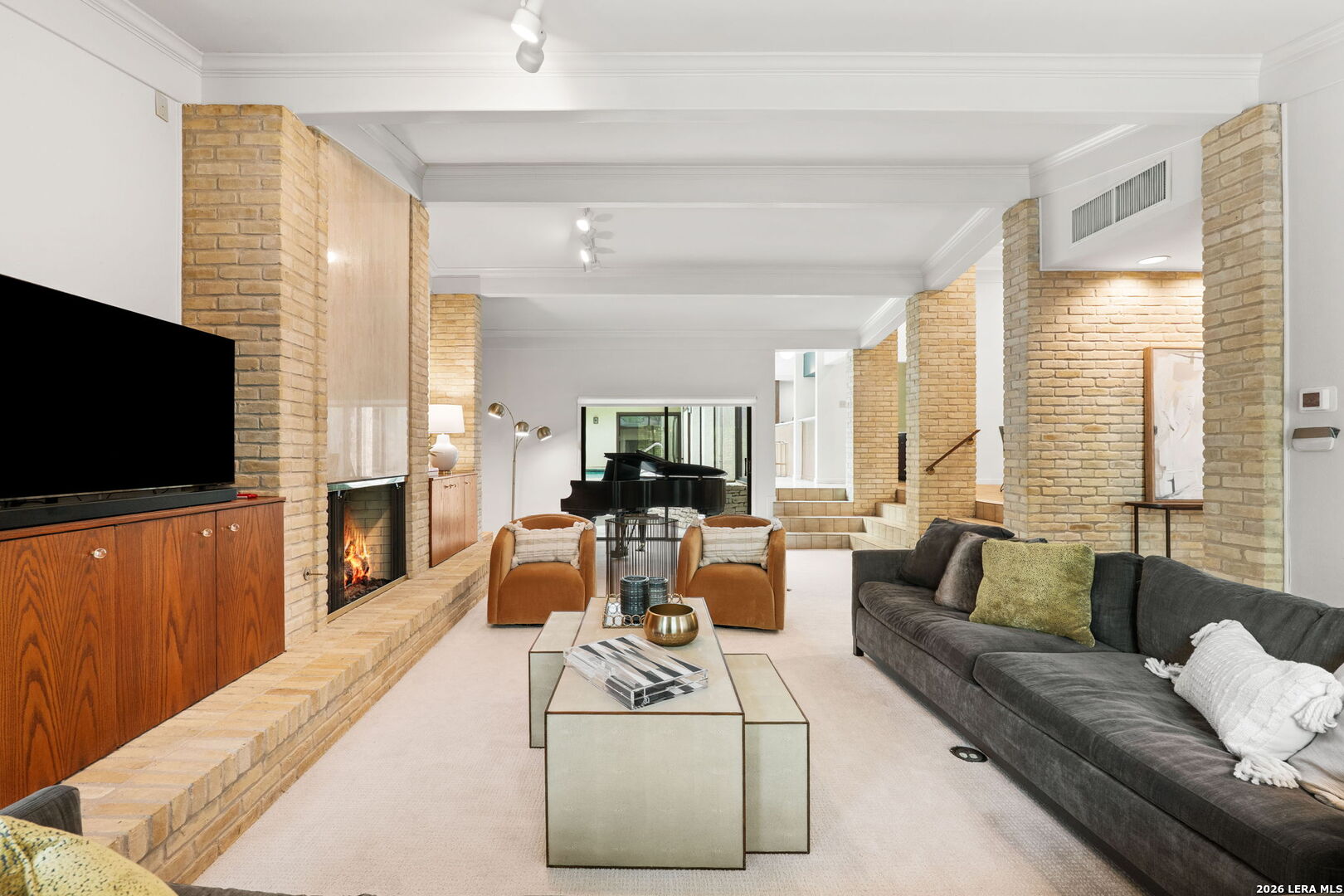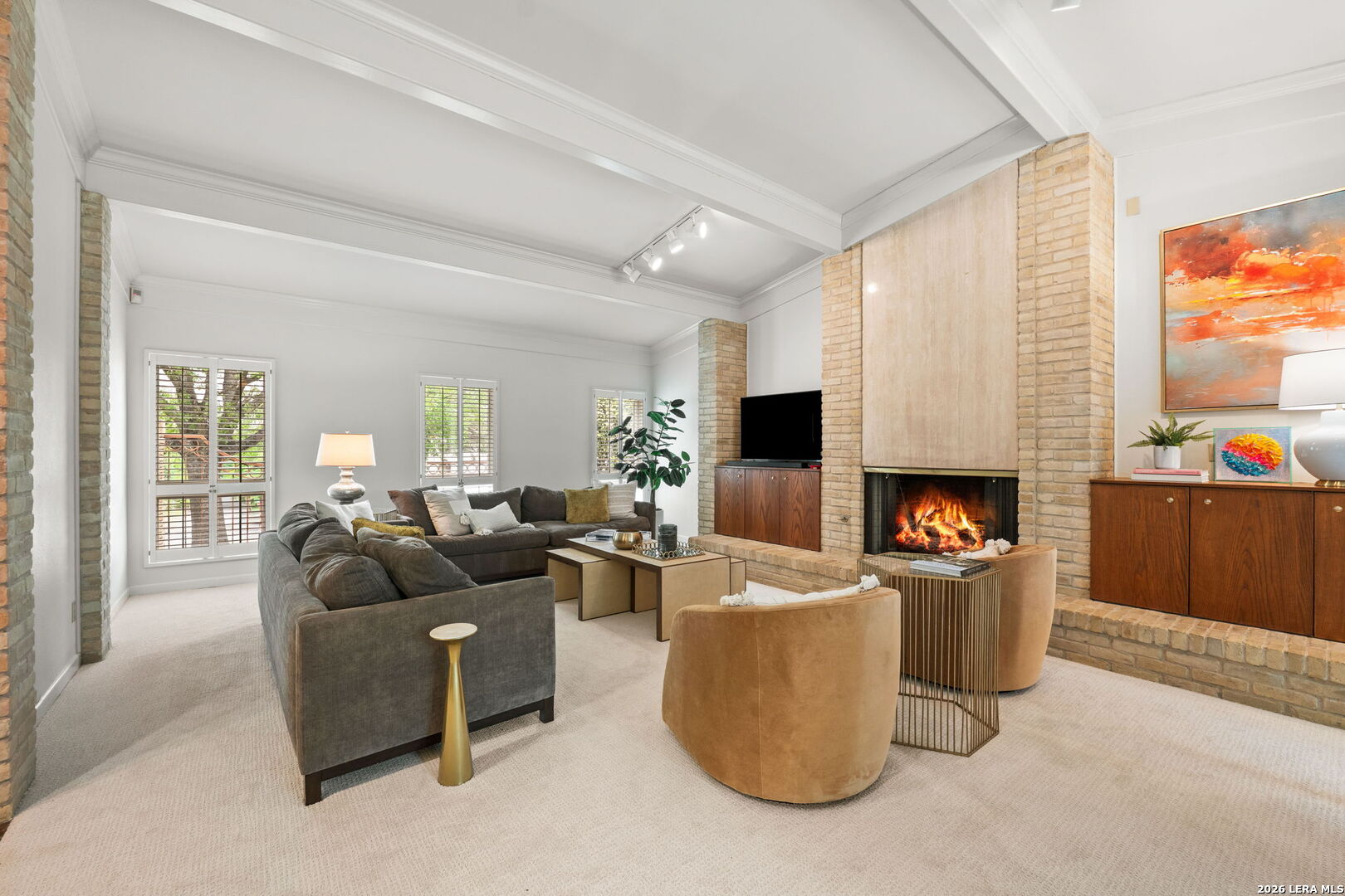 Architect-designed residence in coveted Alamo Heights, blending contemporary architecture with a timeless mid-century modern sensibility. Since 2022, the home has been thoughtfully improved with a renovated kitchen, new roof and HVAC system. The main living space impresses with soaring ceilings, custom built-ins, and a fireplace, while a comfortable family room just off the kitchen invites relaxed entertaining. Formal dining room with vaulted ceiling, butler pantry, and bar area offers wonderful space for entertaining. The primary suite is privately situated on the main level, with guest bedrooms upstairs. Walls of windows frame views of the private courtyard and sparkling pool, bringing the outdoors into nearly every room. Three-car rear-entry garage, with one bay currently serving as a climate-controlled office. A rare architectural offering in one of Alamo Heights' most desirable locations.