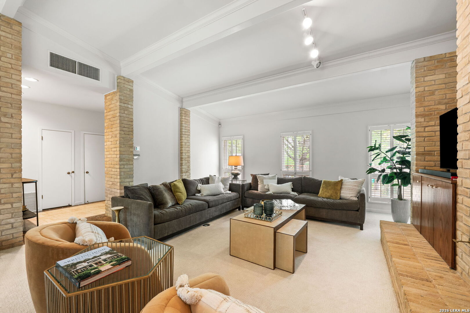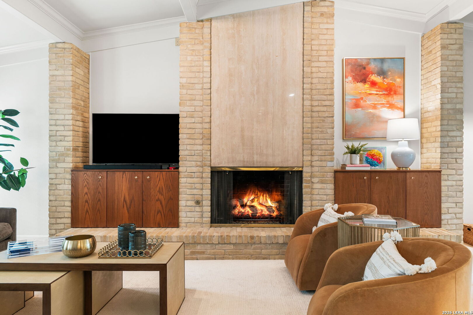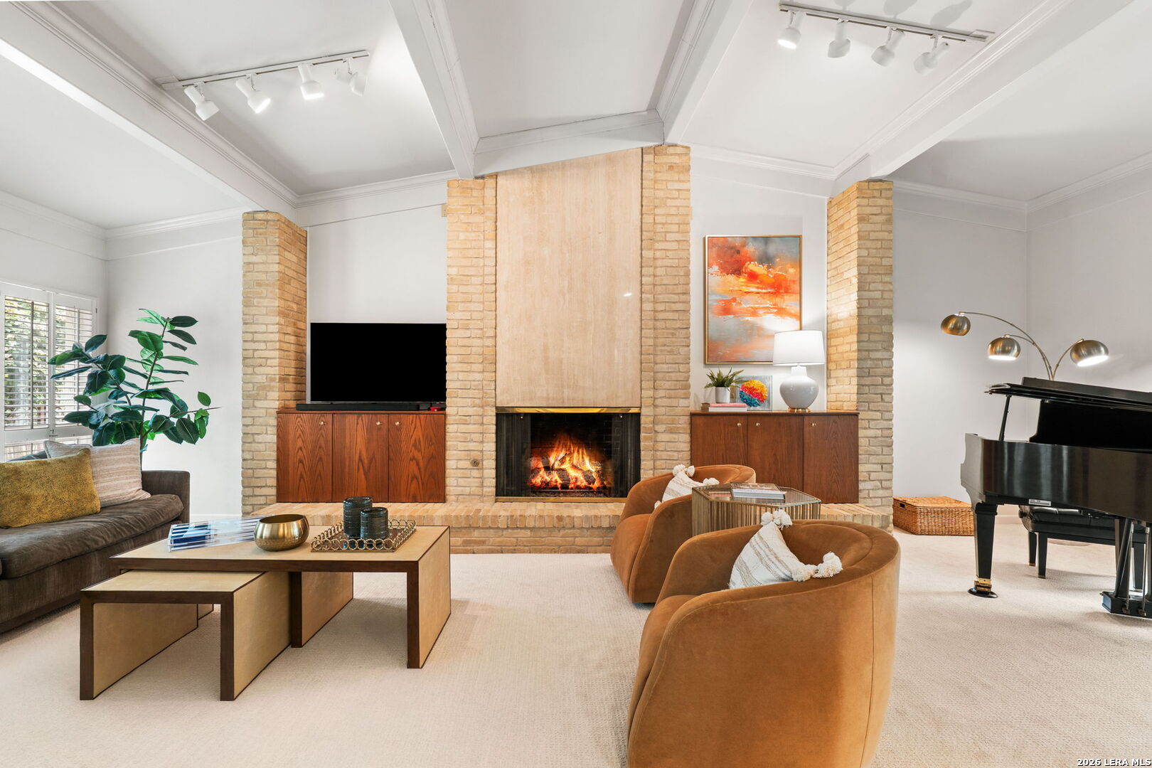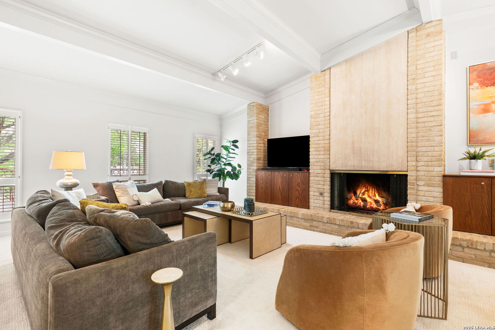 Architect-designed residence in coveted Alamo Heights, blending contemporary architecture with a timeless mid-century modern sensibility. Since 2022, the home has been thoughtfully improved with a renovated kitchen, new roof and HVAC system. The main living space impresses with soaring ceilings, custom built-ins, and a fireplace, while a comfortable family room just off the kitchen invites relaxed entertaining. Formal dining room with vaulted ceiling, butler pantry, and bar area offers wonderful space for entertaining. The primary suite is privately situated on the main level, with guest bedrooms upstairs. Walls of windows frame views of the private courtyard and sparkling pool, bringing the outdoors into nearly every room. Three-car rear-entry garage, with one bay currently serving as a climate-controlled office. A rare architectural offering in one of Alamo Heights' most desirable locations.