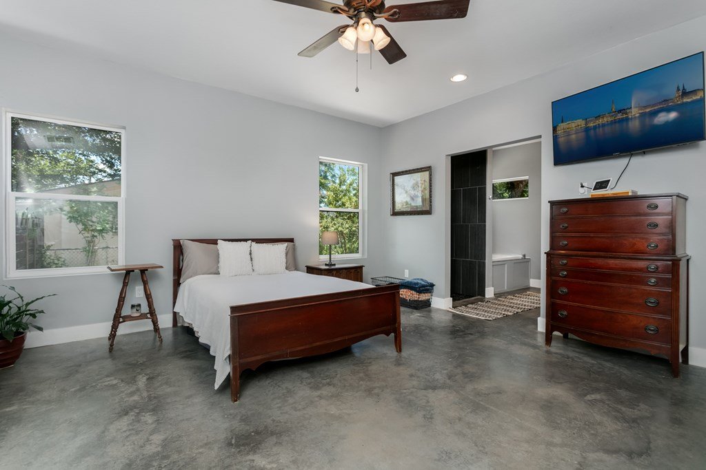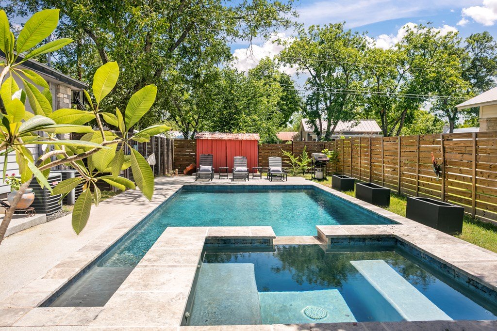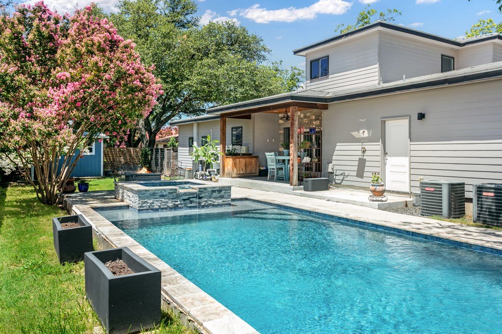 One-of-a-Kind Modern Luxury Just Two Blocks from Main Street on a Picture-Perfect Corner Lot! 209 N Elk St, Fredericksburg, TX. Step into a truly one-of-a-kind, custom-designed home where modern elegance meets Hill Country charm—just two blocks from the heart of historic Fredericksburg. Thoughtfully crafted with style, comfort, and functionality in mind, this stunning 5-bedroom, 4-bathroom residence sits on a beautifully landscaped corner lot and offers an effortless blend of clean lines, high-end finishes, and warm Texas hospitality. Inside, the open-concept living space is anchored by a statement designer chandelier and flows into a sleek, modern kitchen with stainless steel appliances, elegant finishes, and a stylish bar complete with built-in wine rack—perfect for entertaining. The expansive layout offers seamless transitions between living, dining, and outdoor spaces.The spacious primary suite offers a luxurious escape, while a private mother-in-law suite—featuring its own entrance, full kitchen, living area, closet, and bathroom—adds flexibility for hosting guests or extended family. Just outside the suite, enjoy a private, fenced-in courtyard with a cozy fire pit, offering the perfect space to unwind under the stars. The backyard is a true retreat, complete with a custom privacy fence, sparkling pool, hot tub, and multiple inviting areas for outdoor entertaining. A detached, air-conditioned shed provides a versatile bonus space—ideal as a home office, art studio, gym, or creative hideaway. With a two-car garage, premium finishes throughout, and a walkable location just steps from Fredericksburg's top restaurants, boutiques, and wineries, 209 N Elk St offers a rare opportunity to own a one-of-a-kind piece of modern Hill Country luxury. A 10 star location!