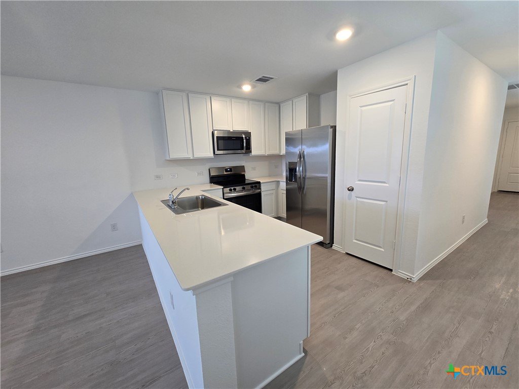 This single-level home showcases a spacious open floorplan shared between the kitchen, dining area and living room for easy entertaining. An owner’s suite enjoys a private location in a rear corner of the home, complemented by an en-suite bathroom and walk-in closet. There are two secondary bedrooms at the front of the home, which are comfortable spaces for household members and overnight guests.