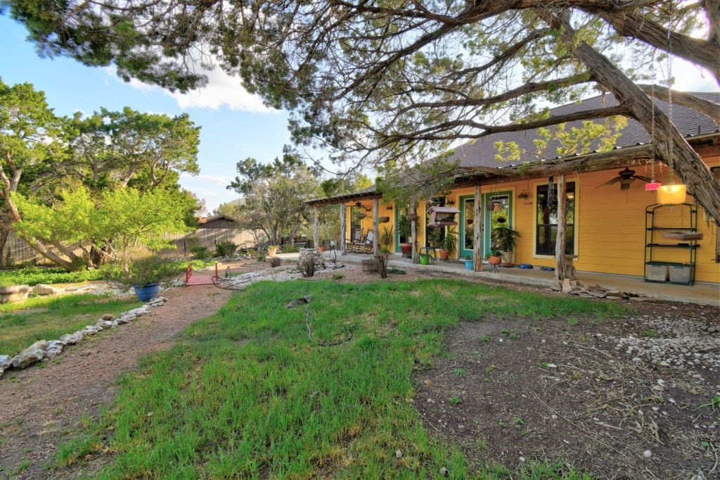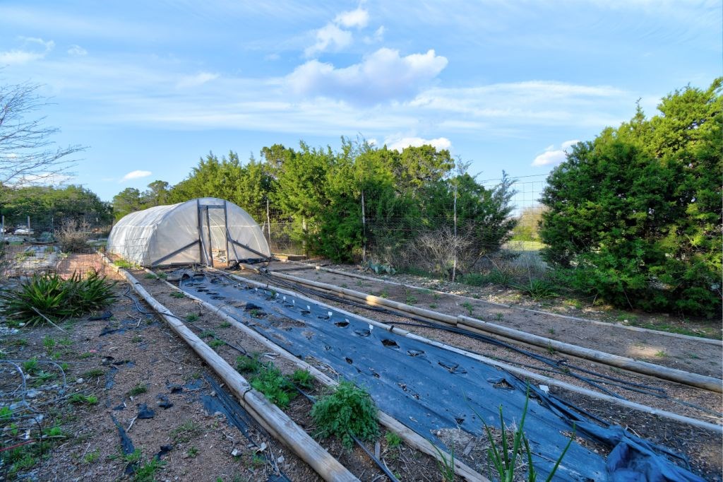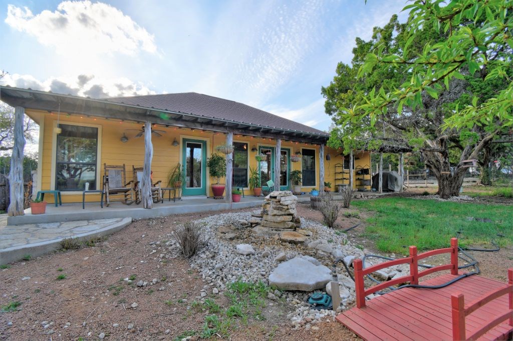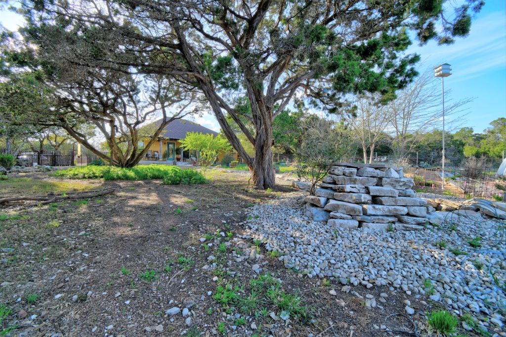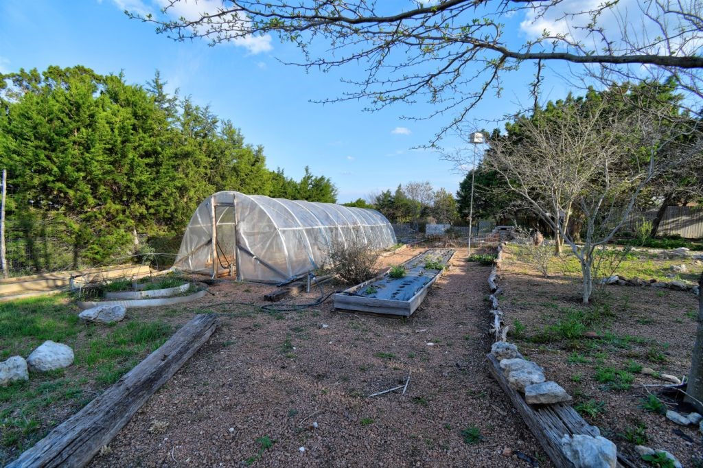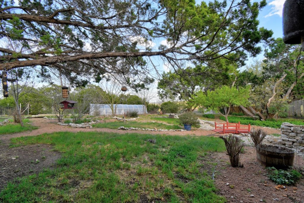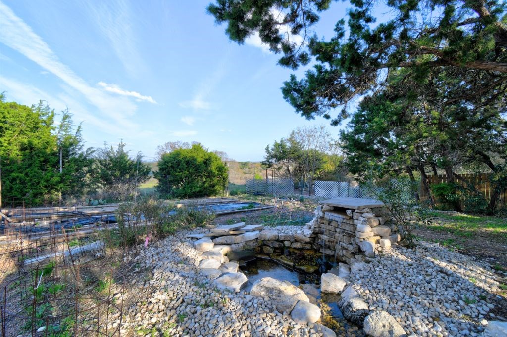 Custom built home on one acre in desirable Canyon Springs Ranch. Built in 2010 this immaculate, move-in ready home has 3 bedrooms, 2 baths. One of the bedrooms is currently an office. This open concept home has a large great room with French doors and wide windows looking out on the beautiful gardens and waterfall that grace the lot. The gourmet kitchen has a gas stove, two sinks, stained concrete countertops, wine cooler, pot filler over stove and two pantries. The gardens are ready for growing tomatoes, peppers, or whatever you desire. The 40 ft. hoop house and the in-place watering system make this garden easy to tend. Imagine serving healthy garden-to-table dinners to family and guests. Canyon Springs residents have deeded access to the Guadalupe River park. See photos.