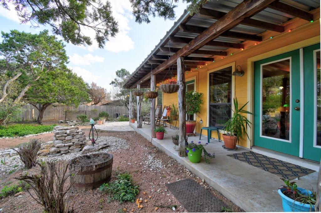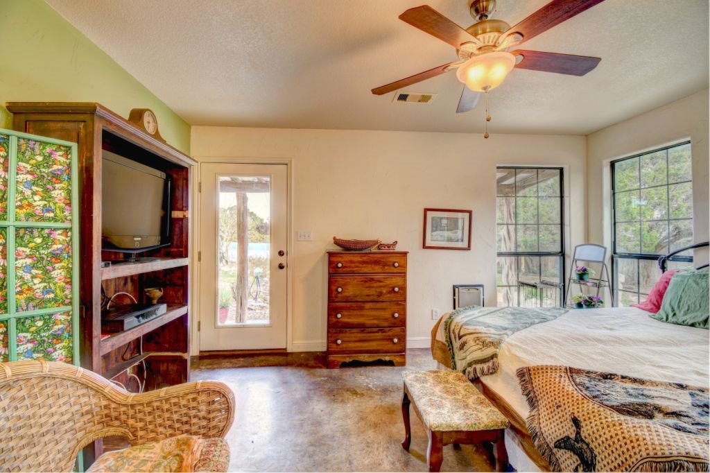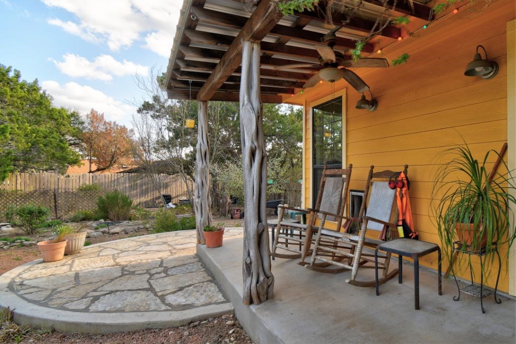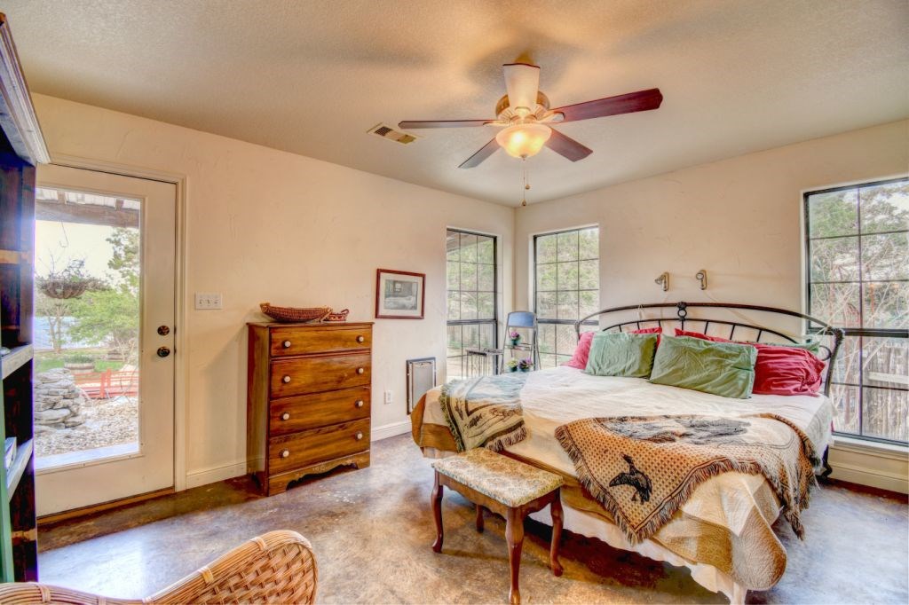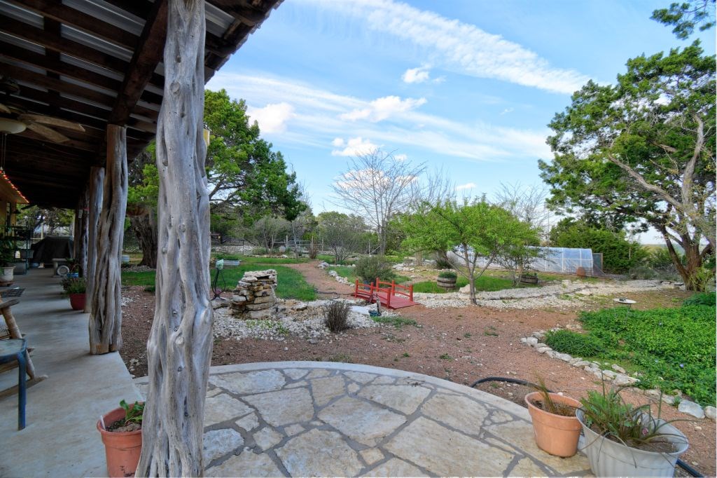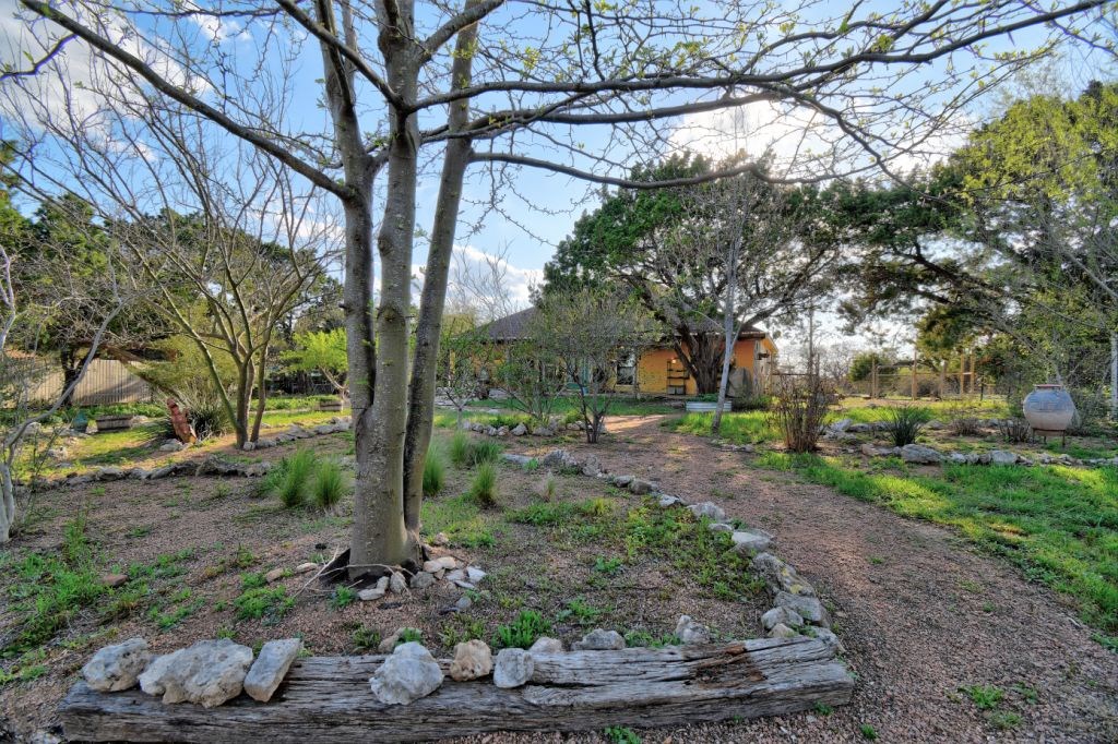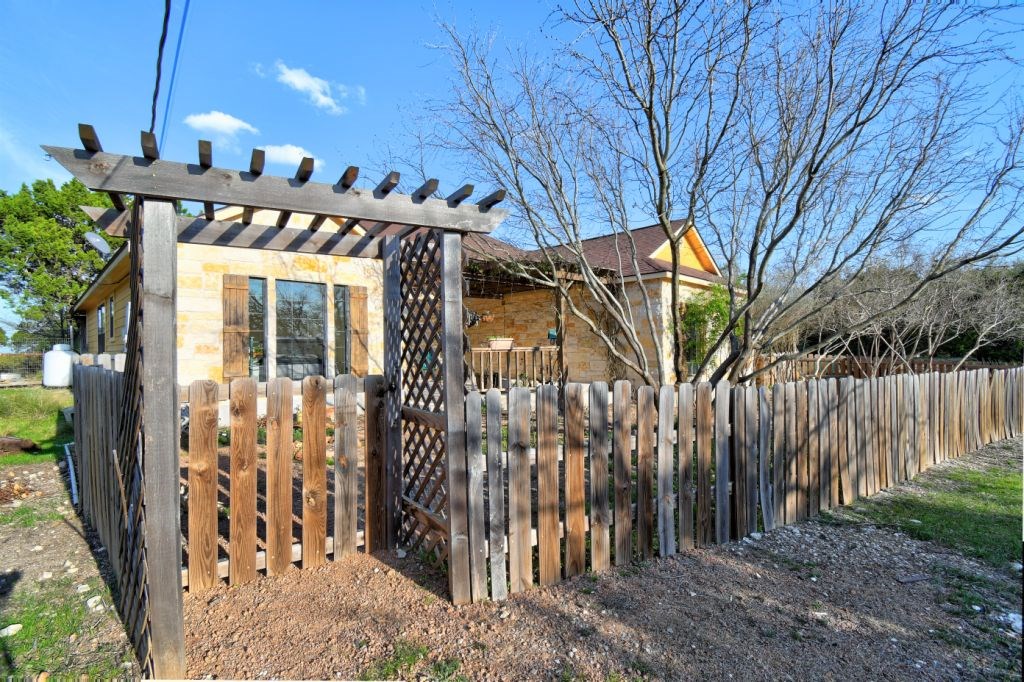 Custom built home on one acre in desirable Canyon Springs Ranch. Built in 2010 this immaculate, move-in ready home has 3 bedrooms, 2 baths. One of the bedrooms is currently an office. This open concept home has a large great room with French doors and wide windows looking out on the beautiful gardens and waterfall that grace the lot. The gourmet kitchen has a gas stove, two sinks, stained concrete countertops, wine cooler, pot filler over stove and two pantries. The gardens are ready for growing tomatoes, peppers, or whatever you desire. The 40 ft. hoop house and the in-place watering system make this garden easy to tend. Imagine serving healthy garden-to-table dinners to family and guests. Canyon Springs residents have deeded access to the Guadalupe River park. See photos.