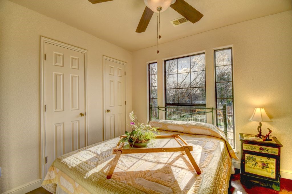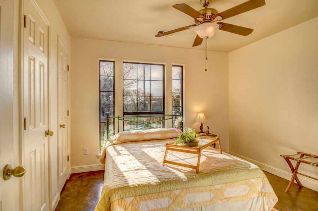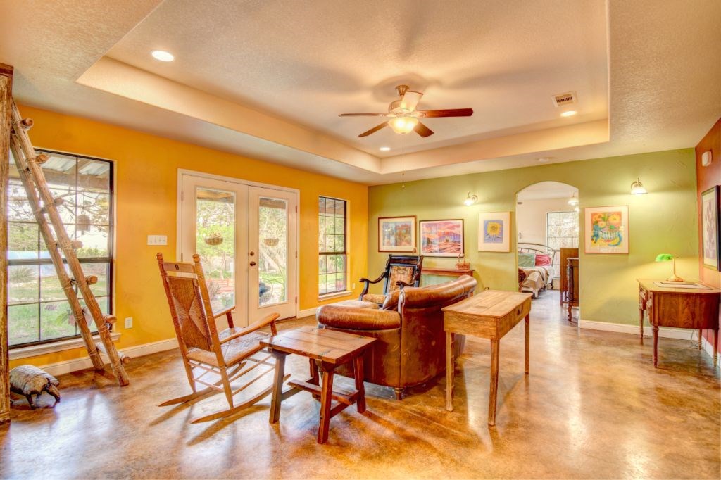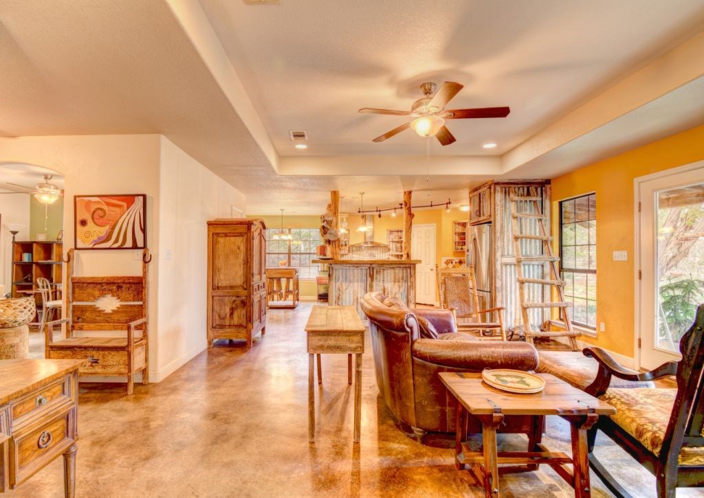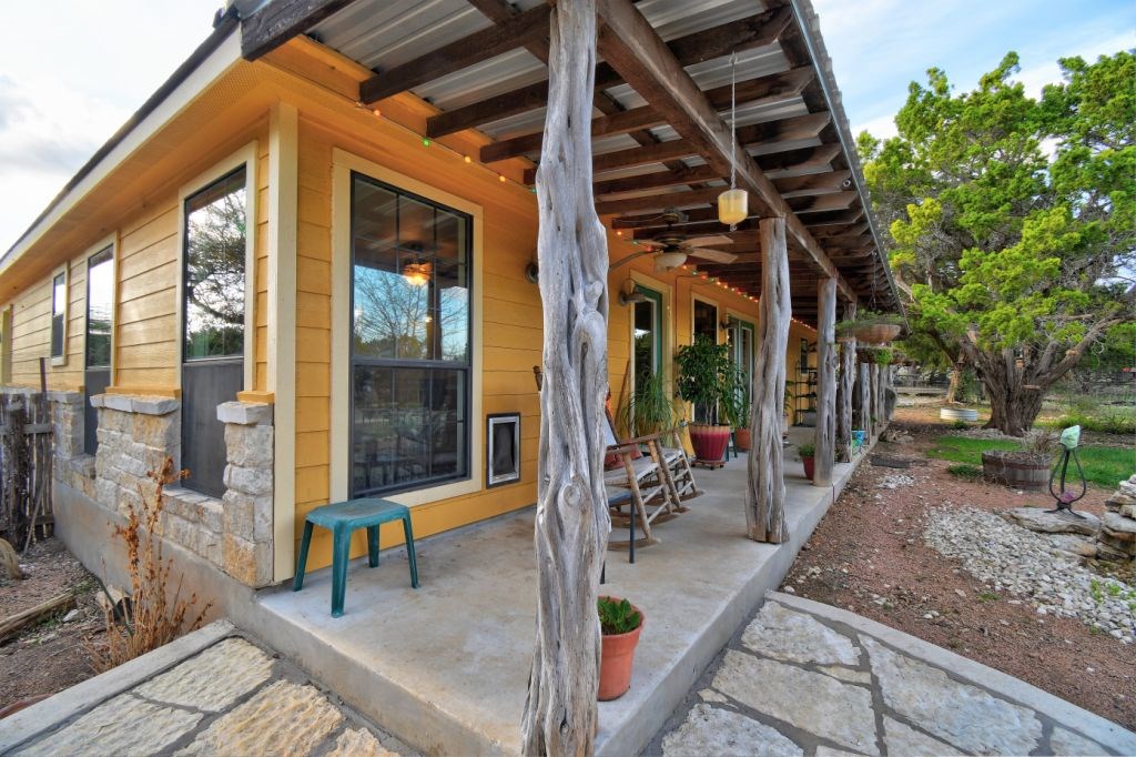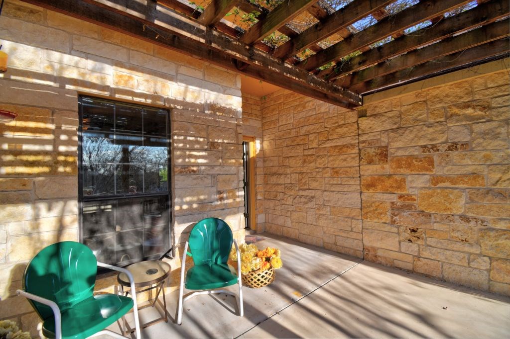 Custom built home on one acre in desirable Canyon Springs Ranch. Built in 2010 this immaculate, move-in ready home has 3 bedrooms, 2 baths. One of the bedrooms is currently an office. This open concept home has a large great room with French doors and wide windows looking out on the beautiful gardens and waterfall that grace the lot. The gourmet kitchen has a gas stove, two sinks, stained concrete countertops, wine cooler, pot filler over stove and two pantries. The gardens are ready for growing tomatoes, peppers, or whatever you desire. The 40 ft. hoop house and the in-place watering system make this garden easy to tend. Imagine serving healthy garden-to-table dinners to family and guests. Canyon Springs residents have deeded access to the Guadalupe River park. See photos.