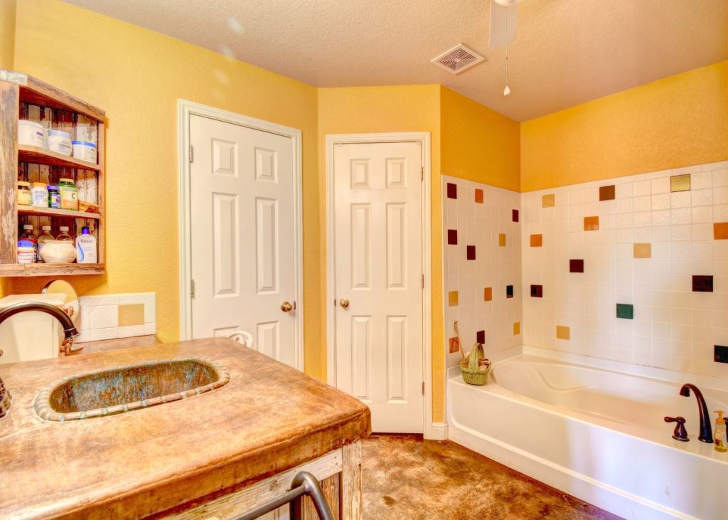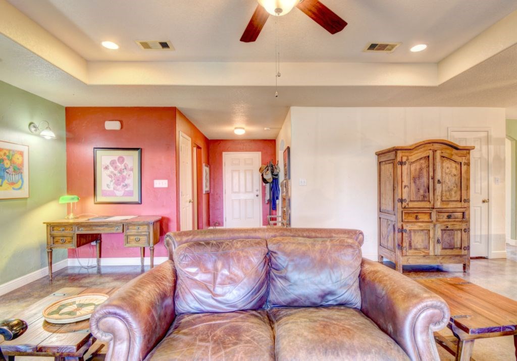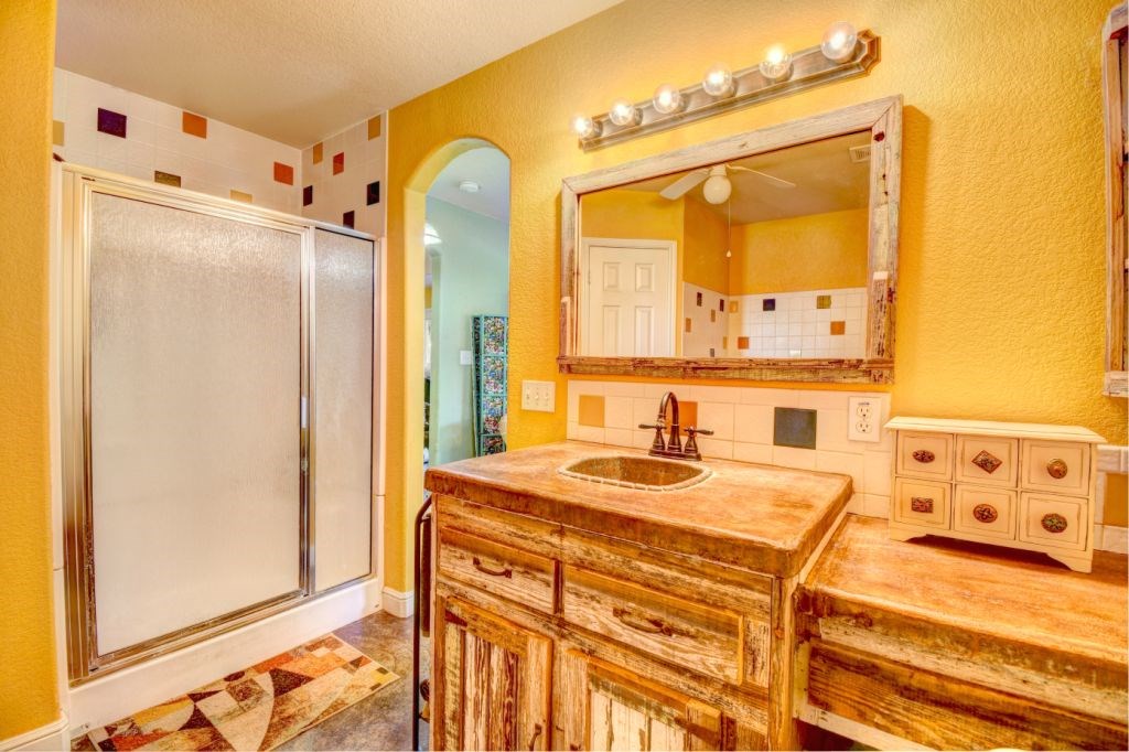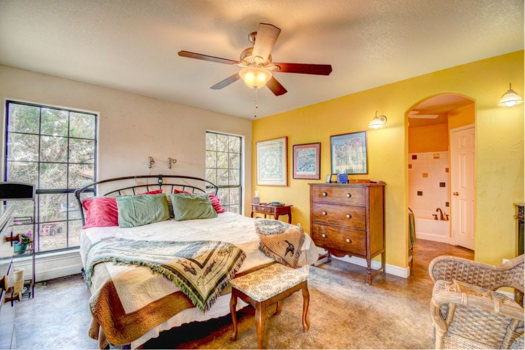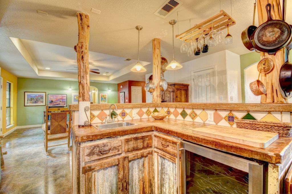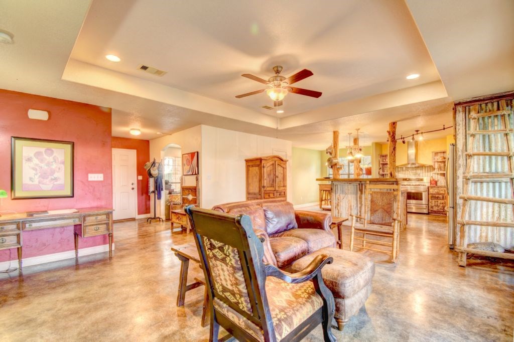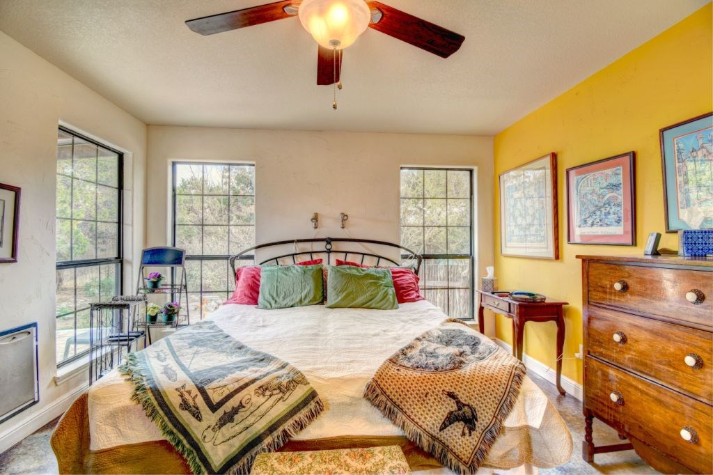 Custom built home on one acre in desirable Canyon Springs Ranch. Built in 2010 this immaculate, move-in ready home has 3 bedrooms, 2 baths. One of the bedrooms is currently an office. This open concept home has a large great room with French doors and wide windows looking out on the beautiful gardens and waterfall that grace the lot. The gourmet kitchen has a gas stove, two sinks, stained concrete countertops, wine cooler, pot filler over stove and two pantries. The gardens are ready for growing tomatoes, peppers, or whatever you desire. The 40 ft. hoop house and the in-place watering system make this garden easy to tend. Imagine serving healthy garden-to-table dinners to family and guests. Canyon Springs residents have deeded access to the Guadalupe River park. See photos.