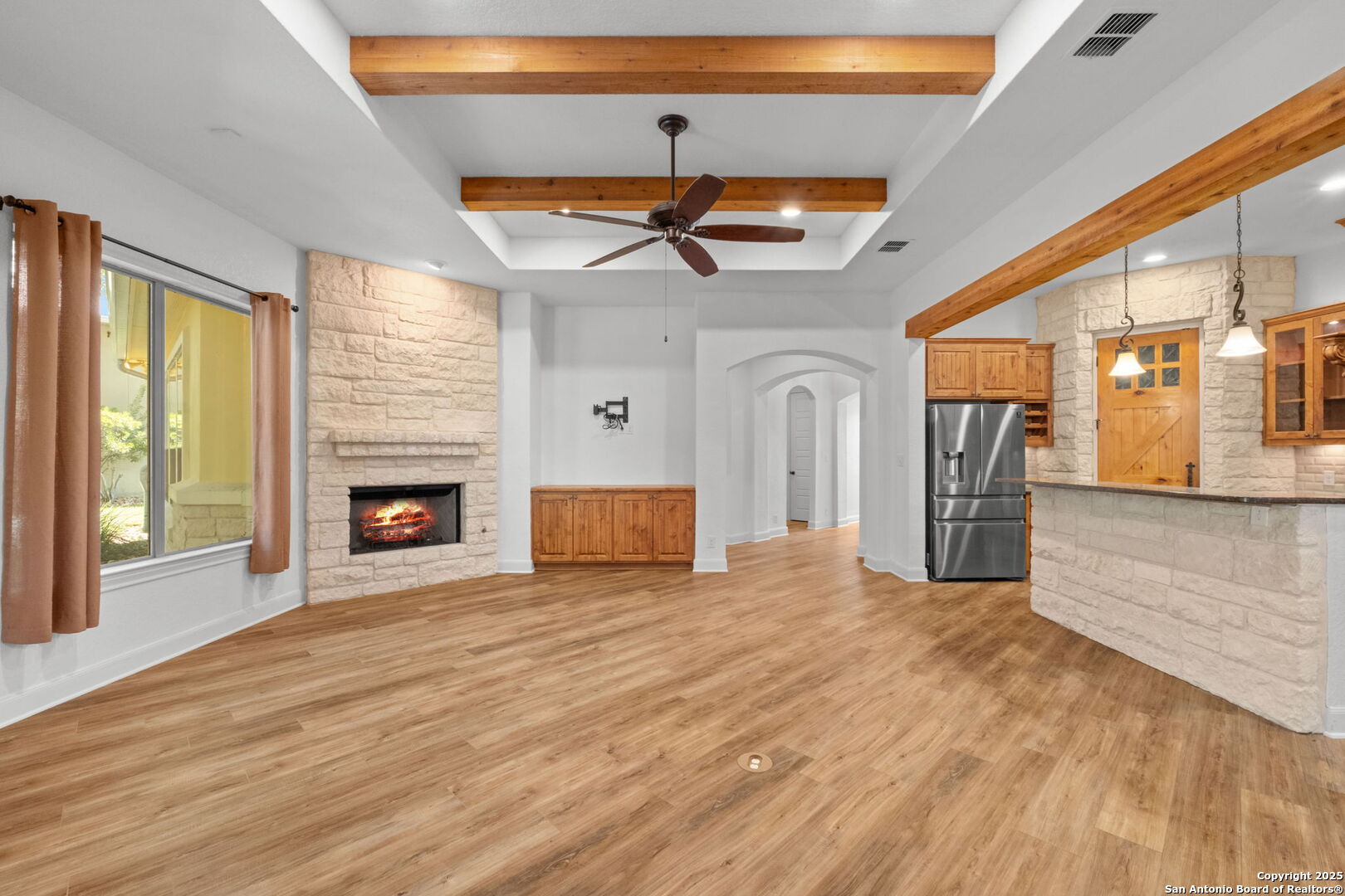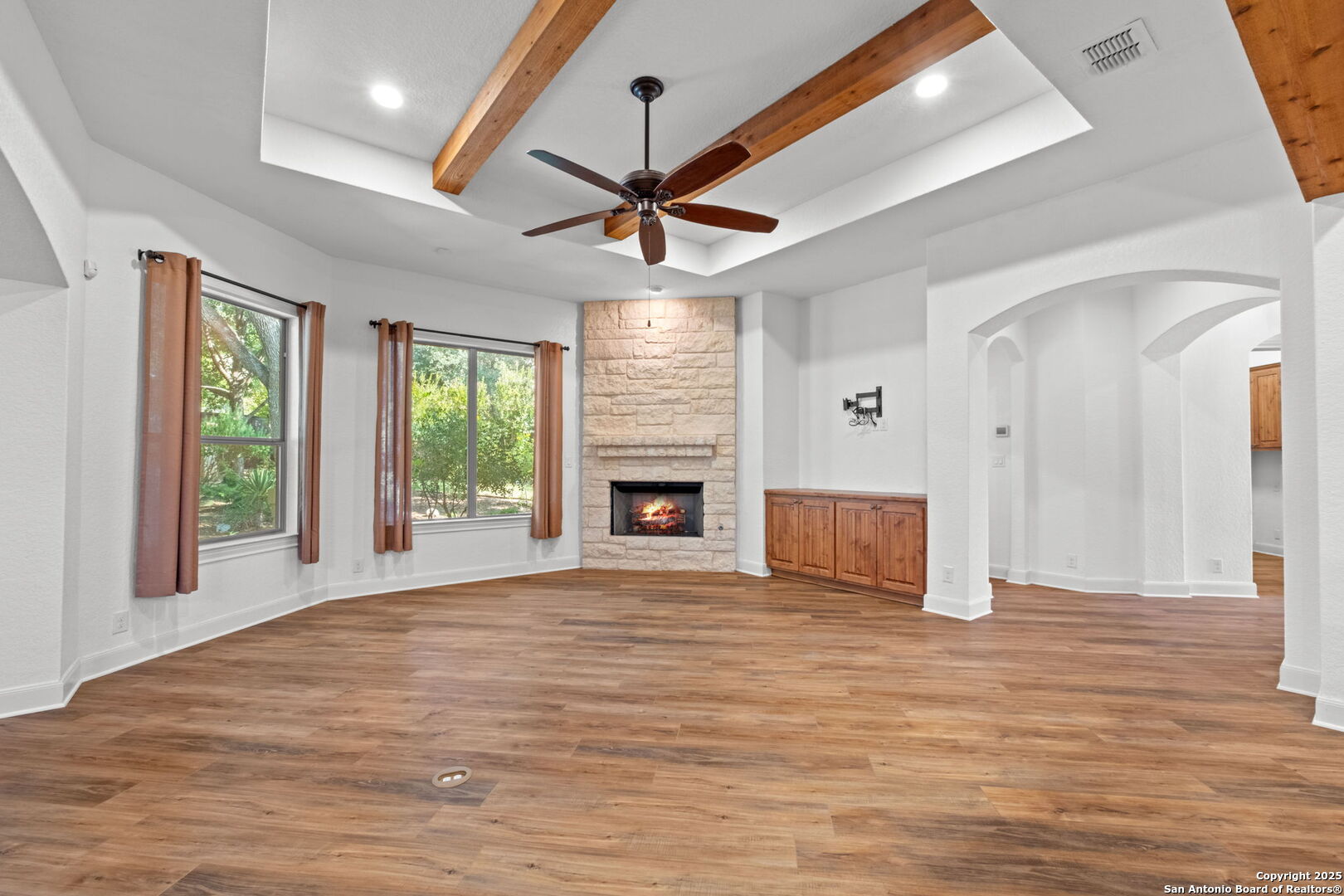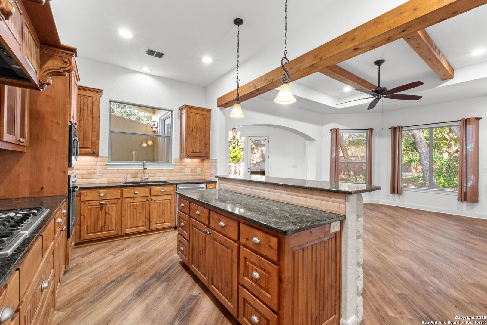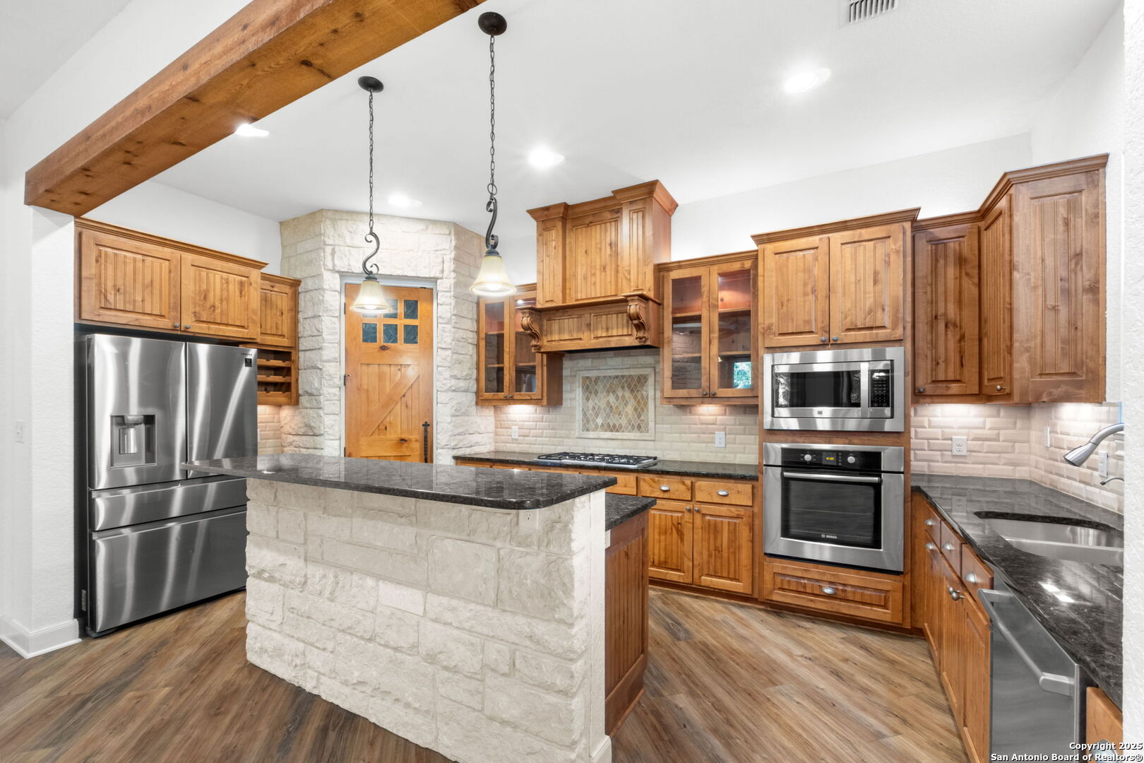 Nestled within one of Boerne's most coveted neighborhoods, this beautifully updated one-story home captures the essence of refined Hill Country living. Menger Springs is known for its serene setting, mature trees, and sweeping views, offering residents both privacy and a welcoming sense of community. Its established charm and easy access to I-10, Boerne's Main Street, shopping, dining, and top-rated schools create the perfect balance of tranquility and convenience. Inside, natural light fills open, airy spaces with high ceilings and large windows. The kitchen flows into the living and dining areas, ideal for entertaining or relaxing. Enjoy peaceful evenings on the covered patio surrounded by mature oaks-low-maintenance living in a timeless Hill Country setting.Boerne ISD. Welcome Home!