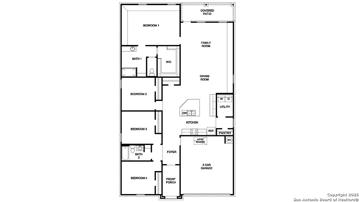 Step into The Kingston floor plan at Brookstone Creek located in San Antonio, TX, a single story home offering 4 bedrooms and 2 bathrooms. This home also features 2 classic front exteriors, a 2-car garage and 2024 square feet of comfortable living. The Kingston features and open-concept layout that blends together to form the perfect space for everyday living. An inviting foyer welcomes you into the kitchen, complete with a natural gas cooking range, stainless steel appliances, subjway tile backsplash, quartz countertops and shaker style cabinets. The kitchen island faces the dining area and living room and offers a deep, single bowl sink and extra countertop space, perfect for bar seating. The private main bedroom suite is located off the living room towards the back of the home and features quality carpet, large windows and a ceiling fan. Your connected bathroom is an oasis, complete with dual vanity sinks, cultured marble countertops, a tiled walk-in shower, shaker style cabinets and a separate room for the toilet. You'll have all the space you need to get ready in the morning with a large walk-in closet. You'll find quality carpet and closets in all of your secondary bedrooms, which can also be used as offices, play rooms or other bonus rooms. Head out the back door located off the living room to find the rear covered patio (per plan) and full yard landscaping & irrigation. Additional features of The Kingston include hard surface flooring at entry, downstairs, halls, living room, kitchen, and dining/breakfast area, tile in all bathrooms and utility room, pre-plumb for water softener loop and faux wood window blinds throughoutt the home. This home also includes our HOME IS CONNECTED base package. Using one central hub that talks to all the devices in your home, you can control the lights, thermostat and locks, all from your cellular device.