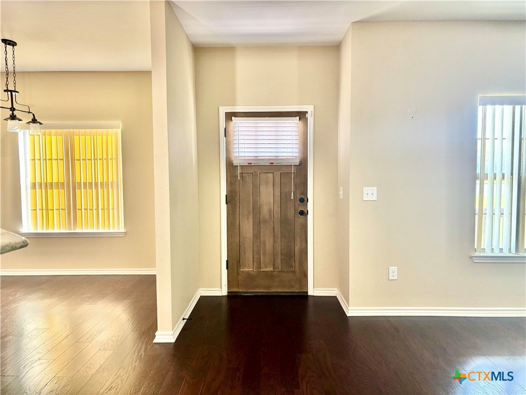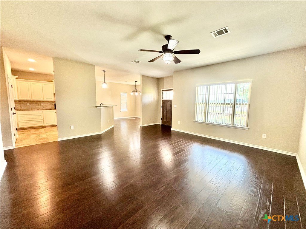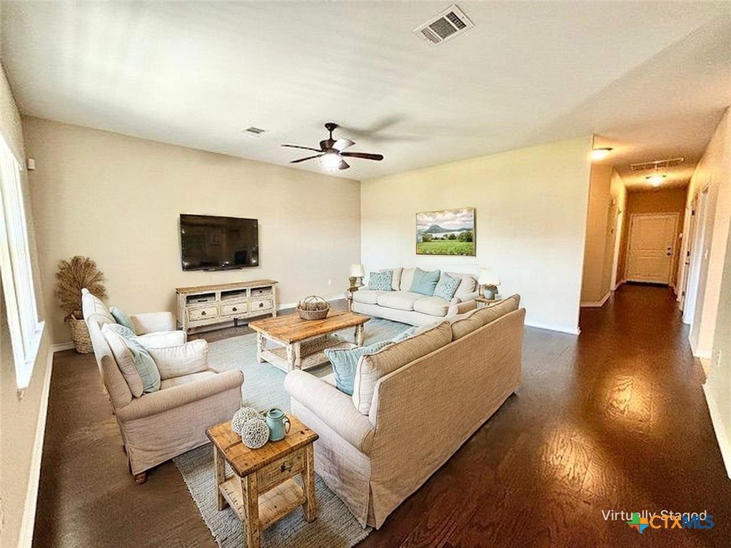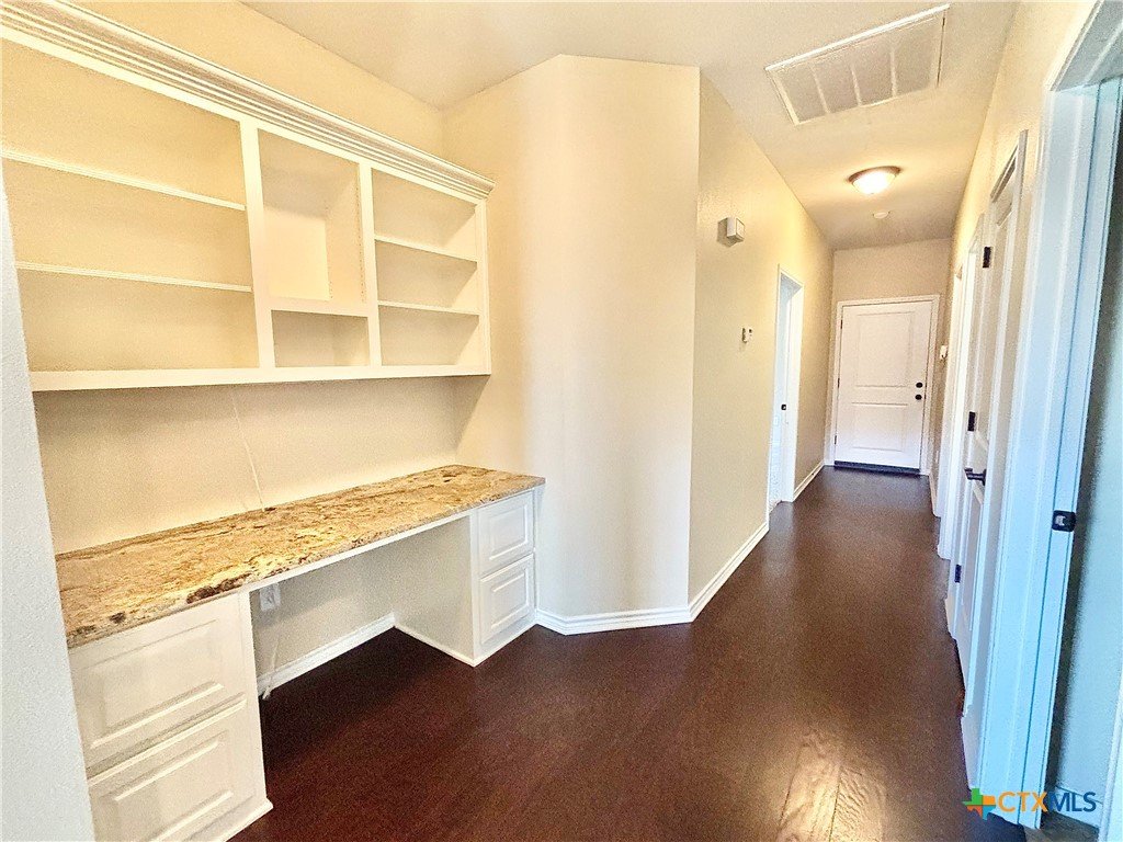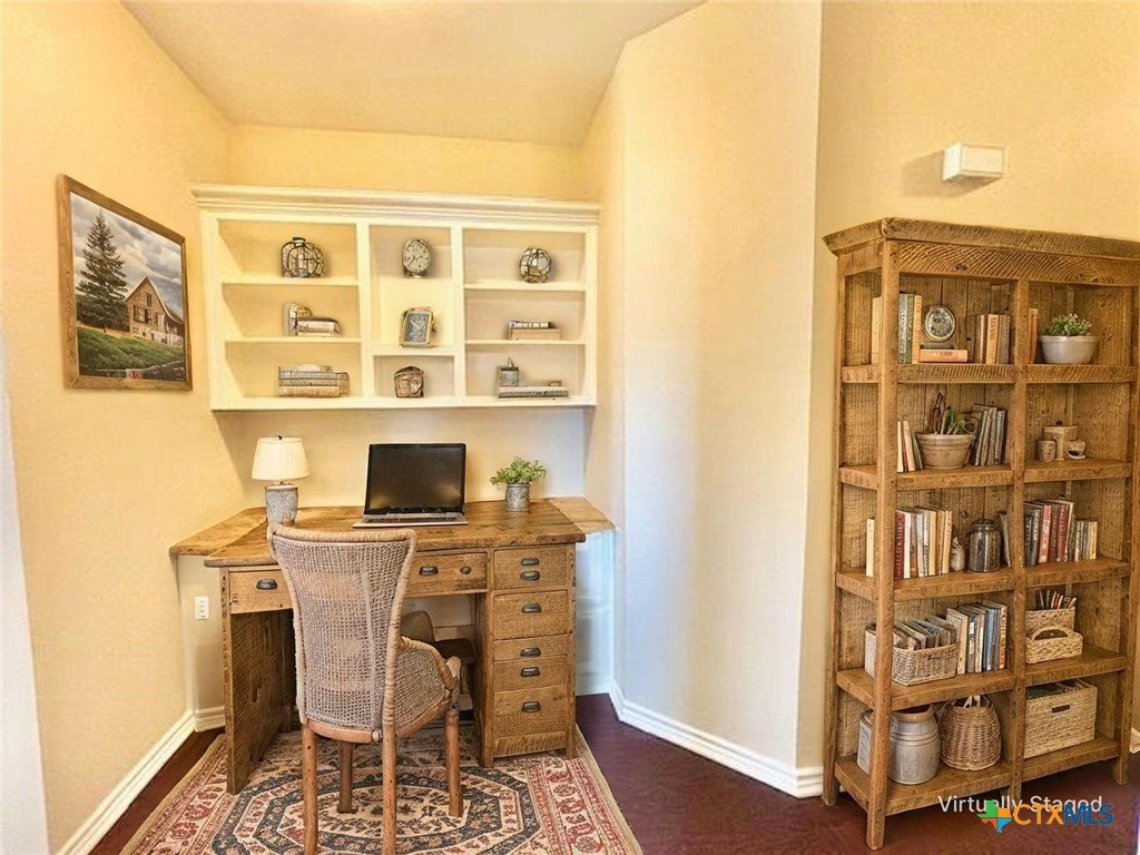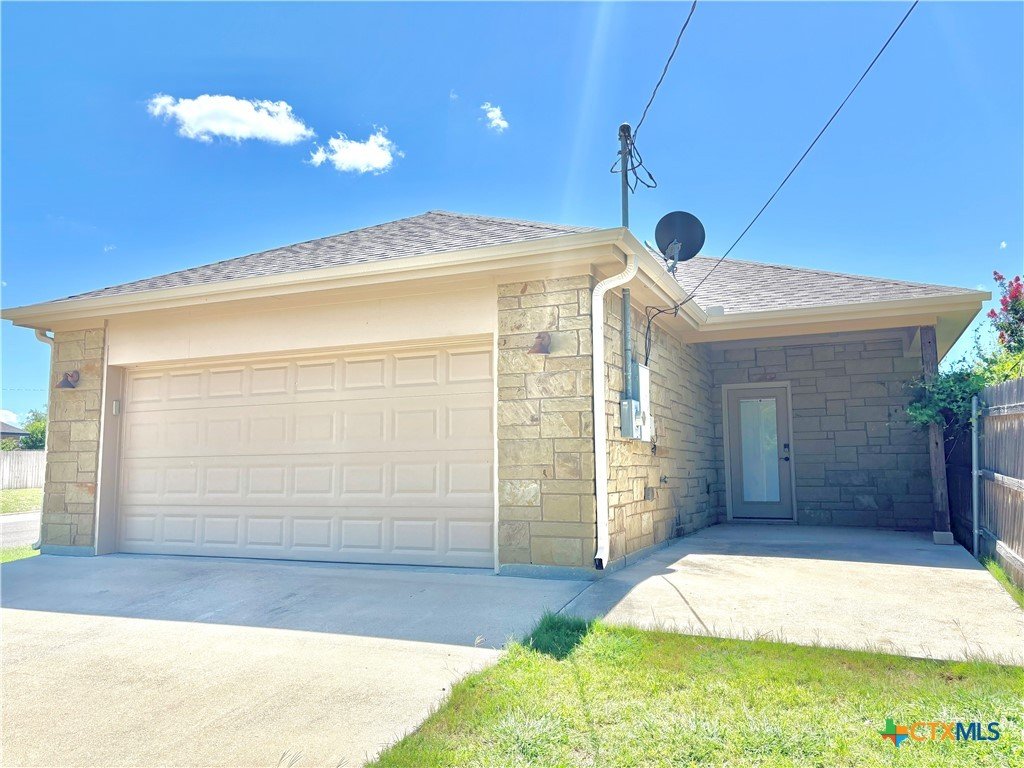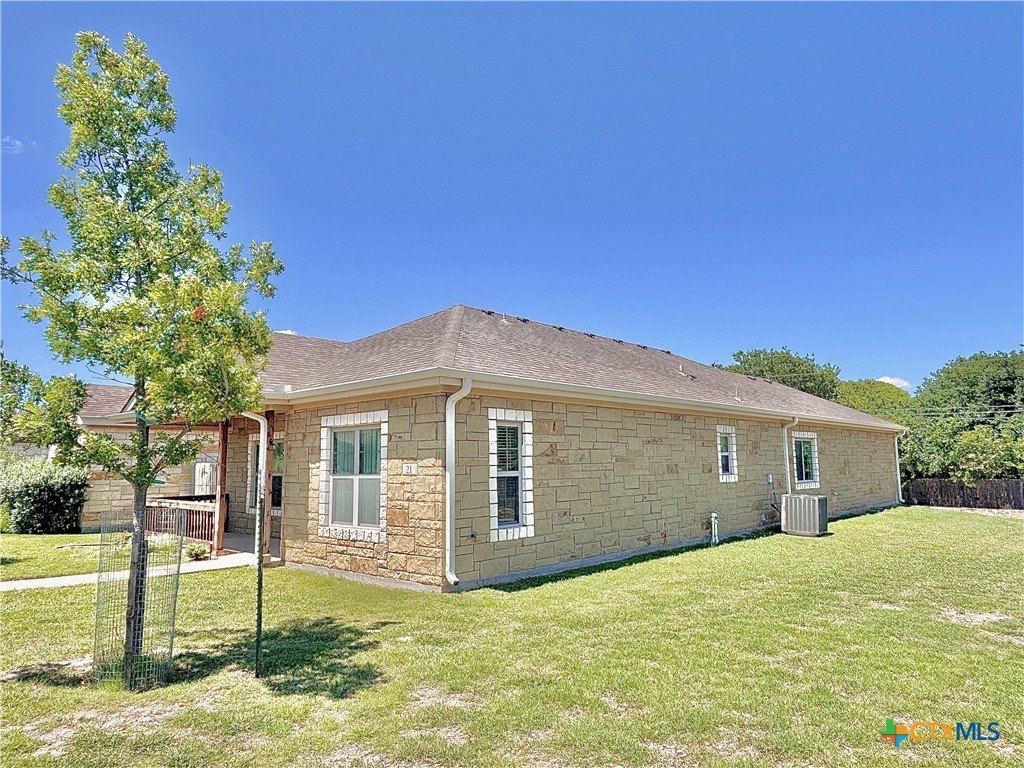 Charming Garden Home in Serene Lampasas, Texas! Discover this delightful 2-bedroom, 2-bath residence tucked away on a large .21-acre corner lot, in a well-established neighborhood on a tranquil cul-de-sac street. A great fit for those seeking a low-maintenance lifestyle, this garden home combines comfort and style, beginning with a spacious two-car garage. The living area boasts beautiful, engineered hardwood floors, complemented by a kitchen featuring a breakfast bar and sleek granite countertops. Functional and stylish, a built-in desk with granite adds charm and utility. The master suite offers a large, deep shower with dual sinks and a generous sized closet. Bedrooms are cozy with plush carpeting, while the kitchen and baths feature easy-to-maintain tile flooring. Step outside to enjoy summer evenings on your covered front porch or rear patio. With the serene backdrop of deer in your front yard and a wonderful view of the sunset, do not miss the opportunity to own this fabulous Lampasas home.