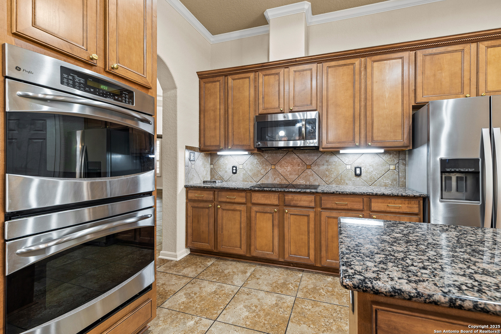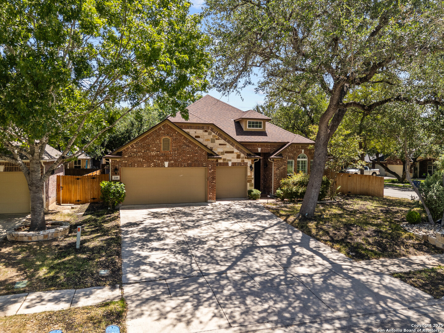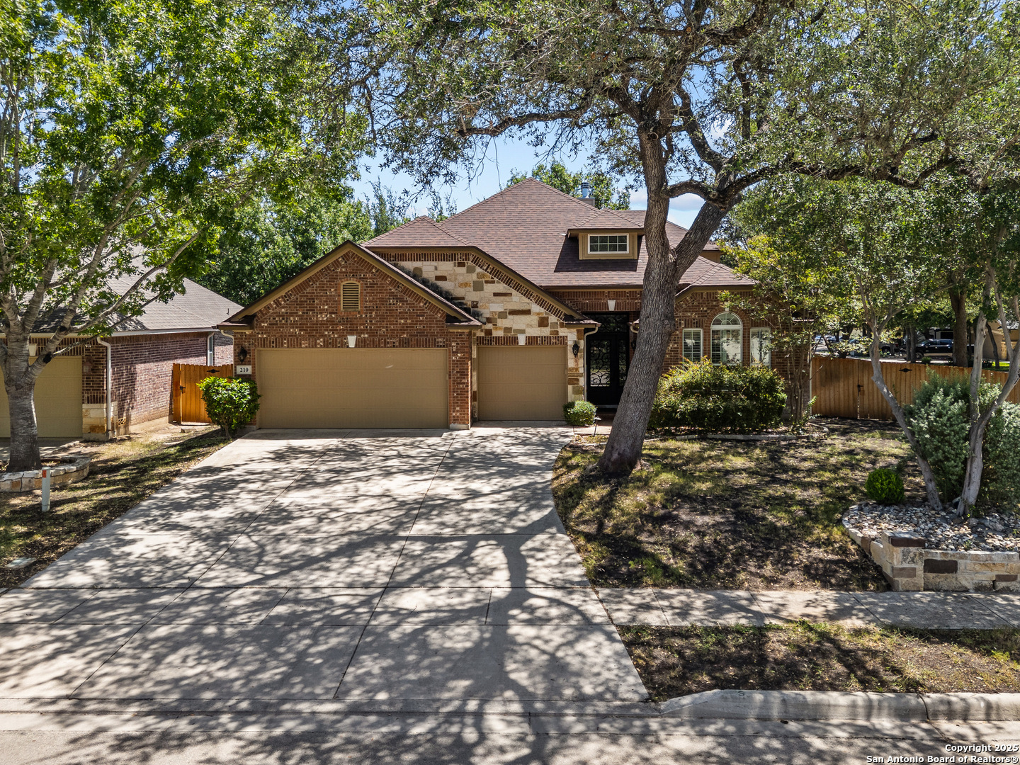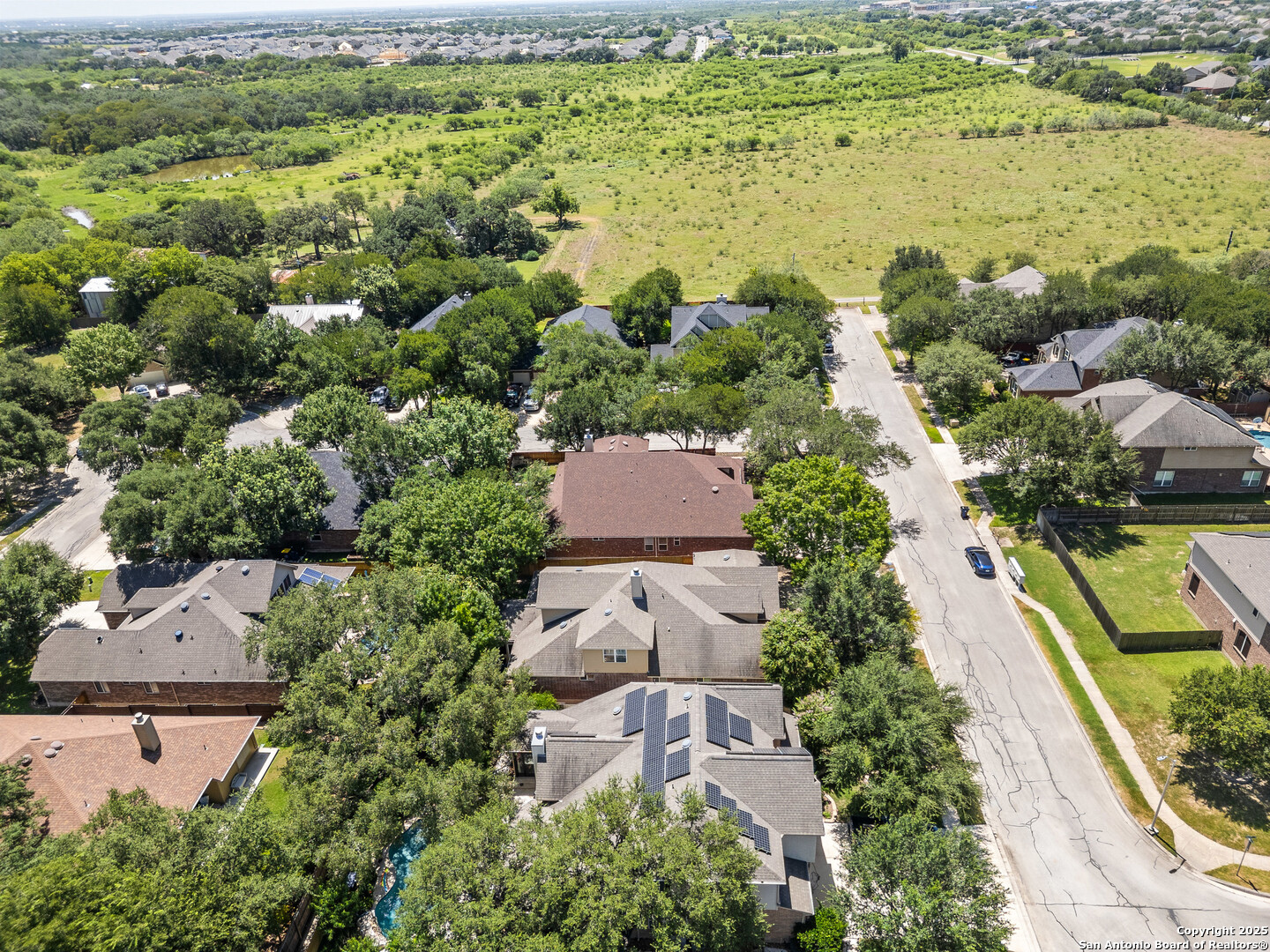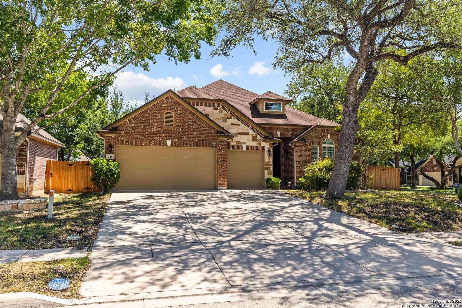Your Private Oasis Awaits in a Secluded Enclave! Enclave at Riata Oaks! Welcome home to unparalleled privacy and luxury within a charming, secluded subdivision of just 54 homes! With 5 bedrooms, 4 full baths, and a 3-car garage, this home effortlessly combines elegance, comfort, and functionality.This magnificent 1.5-story residence offers everything you could desire and more, perfectly situated on a desirable corner lot with mature trees providing ample shade and beauty. Step inside through custom iron doors to discover a spacious and thoughtfully designed layout. The main level boasts four generously sized bedrooms, including a convenient guest suite with its own ensuite bathroom - perfect for visitors. You'll also find a dedicated office, featuring a matching custom iron door, ideal for remote work or quiet study. Meal times will be a delight, whether you're enjoying a casual bite in the charming breakfast nook or hosting elegant dinners in the separate formal dining room, complete with two built-in wine refrigerators - perfect for the discerning host! Kitchen boasts an island and Double Ovens. The heart of the home, the living room, is an entertainer's dream, wired for 7.2 surround sound with in-ceiling speakers to create an immersive audio experience. Cozy up by the elegant fireplace on cooler evenings. Upstairs, a massive media room awaits, complete with surround sound speakers - the ultimate space for movie nights or gaming marathons. 5th BR is off of media room with a large walk-in closet and a full bath upstairs. Ideal for multi family or a teen. Wood shutters and crown molding throughout. Outside, your private retreat continues! The expansive flagstone covered patio is home to a fantastic outdoor kitchen, ready for al fresco dining and entertaining. An accompanying deck offers additional space for relaxation and enjoyment of your beautifully landscaped yard. Practical updates include a roof and fence that are both only 3 years old, providing peace of mind for years to come. And the location couldn't be better! Enjoy the convenience of being just 5 minutes from a variety of shopping and dining options, as well as a local park. Plus, you're only 6 miles from Joint Base Randolph and benefit from quick access to major highways, making commutes a breeze. Zoned for sought after Schertz-Cibolo-Universal City ISD, with bus service.