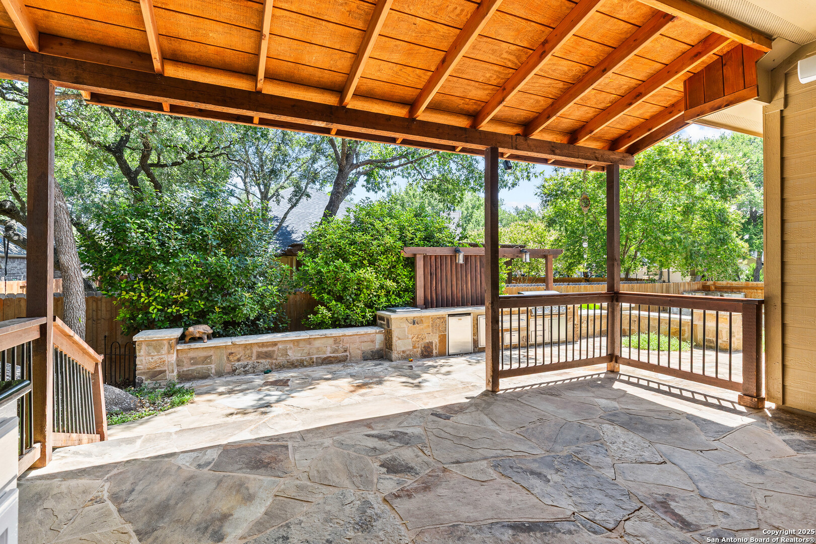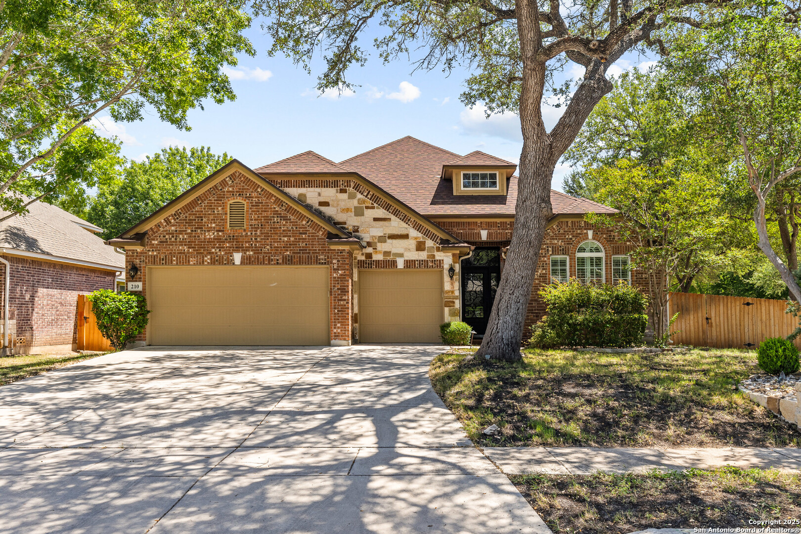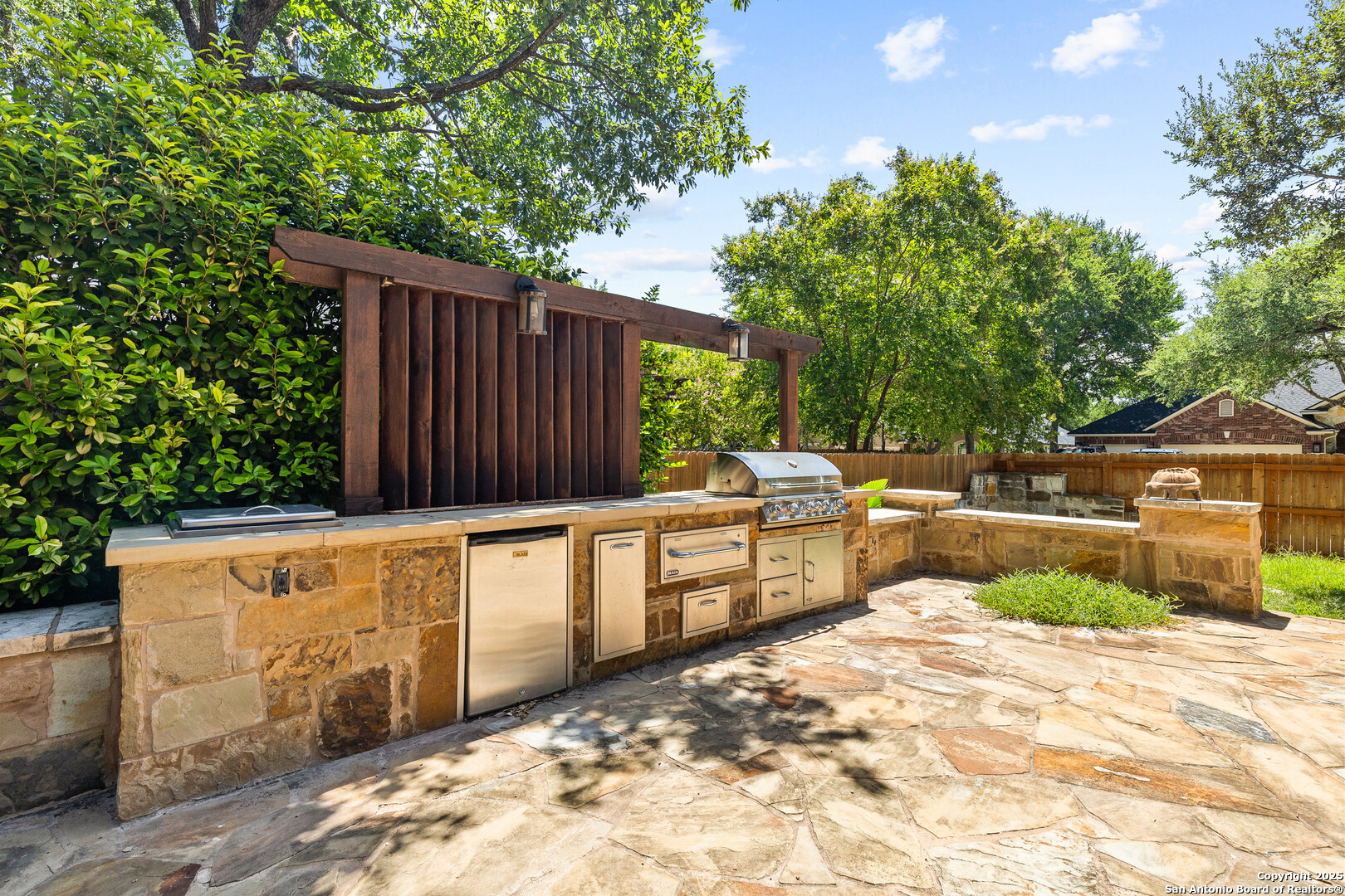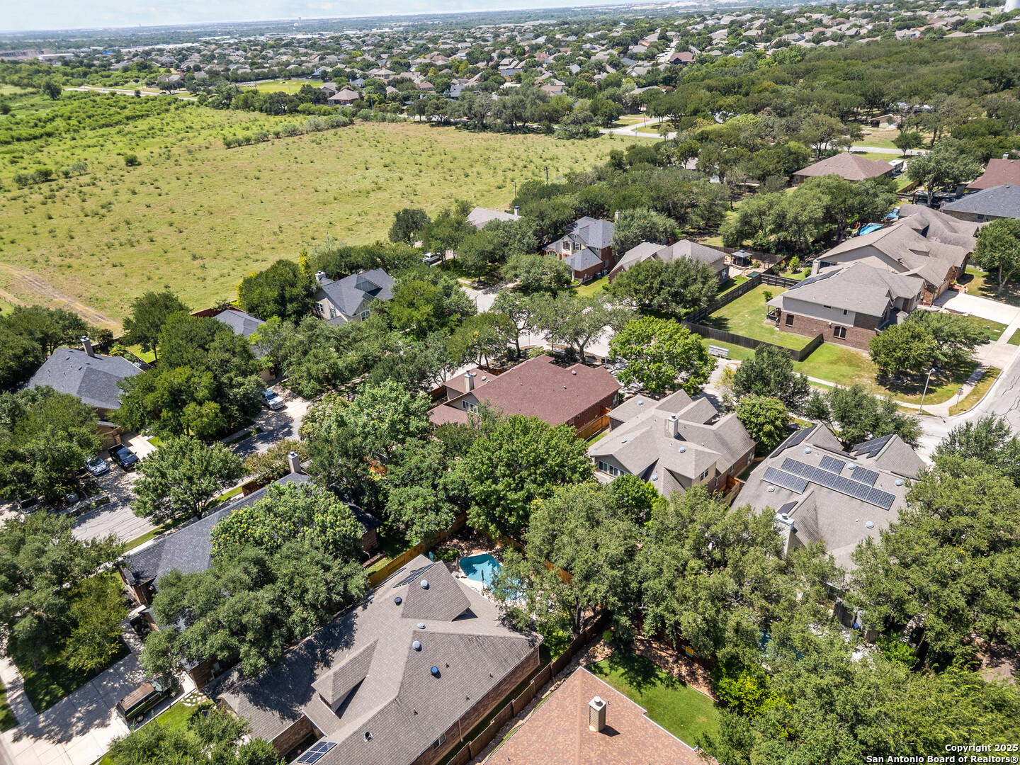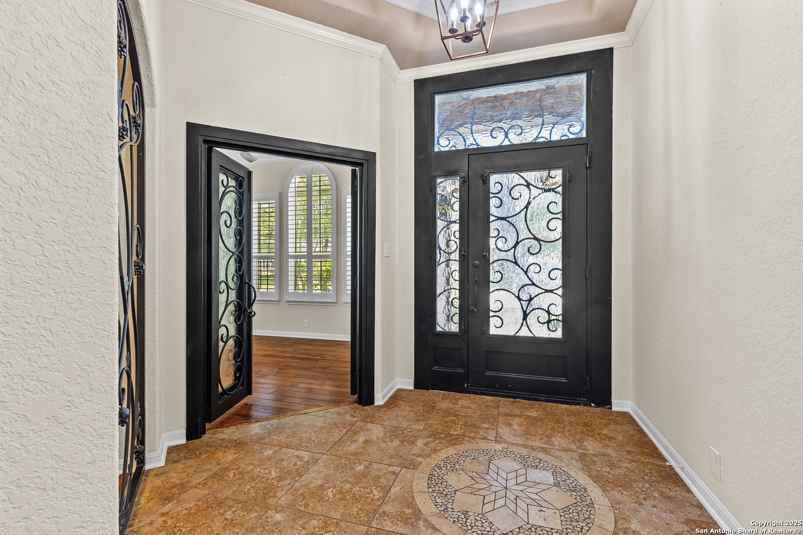 Your Private Oasis Awaits in a Secluded Enclave! Enclave at Riata Oaks! Welcome home to unparalleled privacy and luxury within a charming, secluded subdivision of just 54 homes! With 5 bedrooms, 4 full baths, and a 3-car garage, this home effortlessly combines elegance, comfort, and functionality.This magnificent 1.5-story residence offers everything you could desire and more, perfectly situated on a desirable corner lot with mature trees providing ample shade and beauty. Step inside through custom iron doors to discover a spacious and thoughtfully designed layout. The main level boasts four generously sized bedrooms, including a convenient guest suite with its own ensuite bathroom - perfect for visitors. You'll also find a dedicated office, featuring a matching custom iron door, ideal for remote work or quiet study. Meal times will be a delight, whether you're enjoying a casual bite in the charming breakfast nook or hosting elegant dinners in the separate formal dining room, complete with two built-in wine refrigerators - perfect for the discerning host! Kitchen boasts an island and Double Ovens. The heart of the home, the living room, is an entertainer's dream, wired for 7.2 surround sound with in-ceiling speakers to create an immersive audio experience. Cozy up by the elegant fireplace on cooler evenings. Upstairs, a massive media room awaits, complete with surround sound speakers - the ultimate space for movie nights or gaming marathons. 5th BR is off of media room with a large walk-in closet and a full bath upstairs. Ideal for multi family or a teen. Wood shutters and crown molding throughout. Outside, your private retreat continues! The expansive flagstone covered patio is home to a fantastic outdoor kitchen, ready for al fresco dining and entertaining. An accompanying deck offers additional space for relaxation and enjoyment of your beautifully landscaped yard. Practical updates include a roof and fence that are both only 3 years old, providing peace of mind for years to come. And the location couldn't be better! Enjoy the convenience of being just 5 minutes from a variety of shopping and dining options, as well as a local park. Plus, you're only 6 miles from Joint Base Randolph and benefit from quick access to major highways, making commutes a breeze. Zoned for sought after Schertz-Cibolo-Universal City ISD, with bus service.