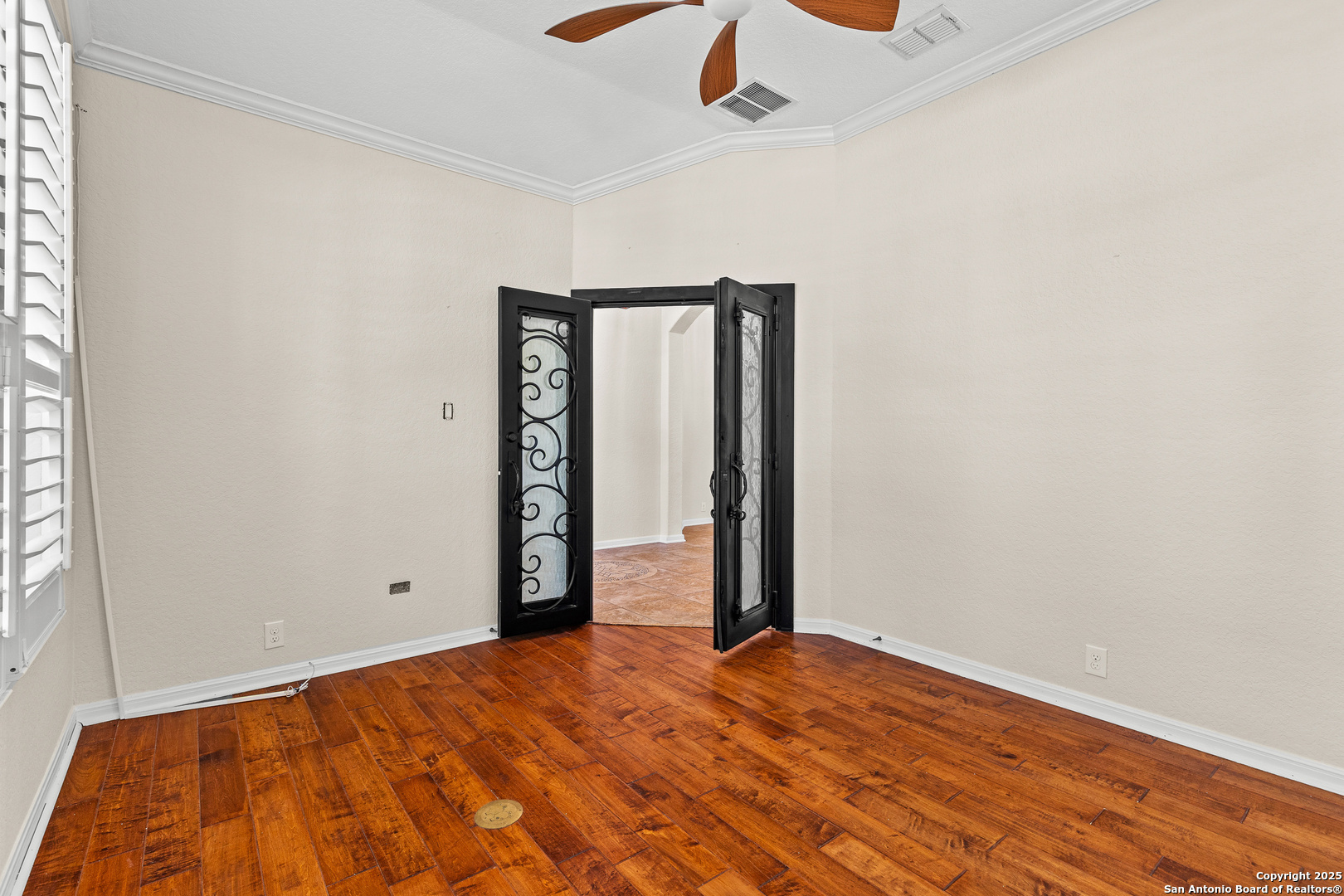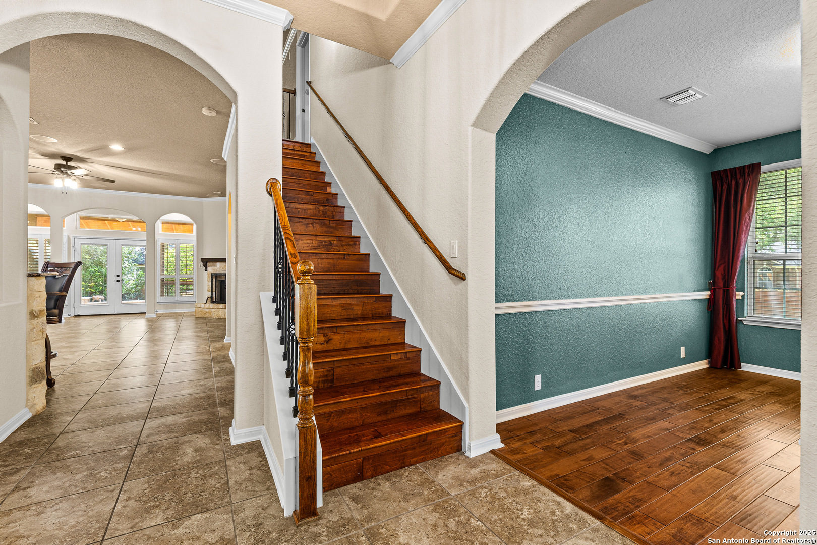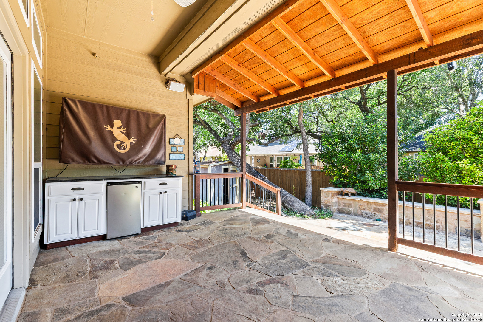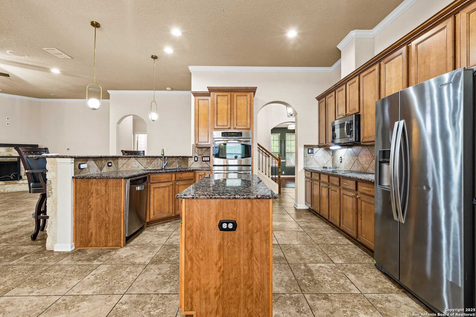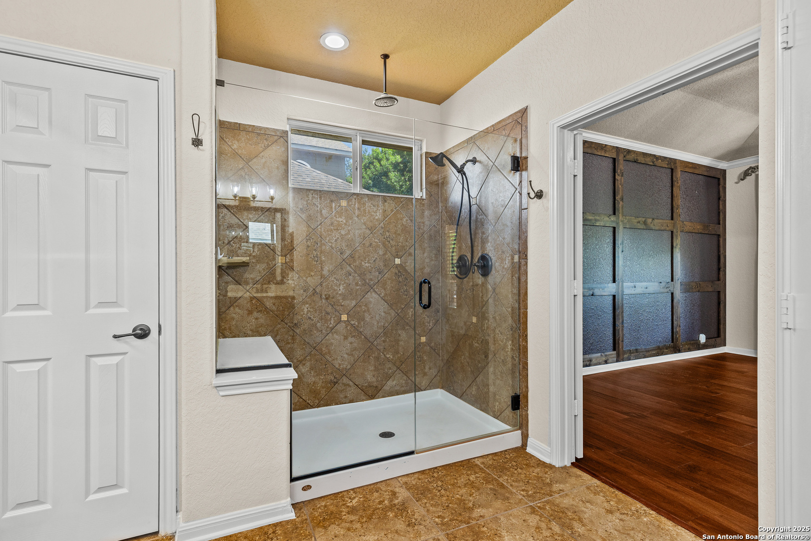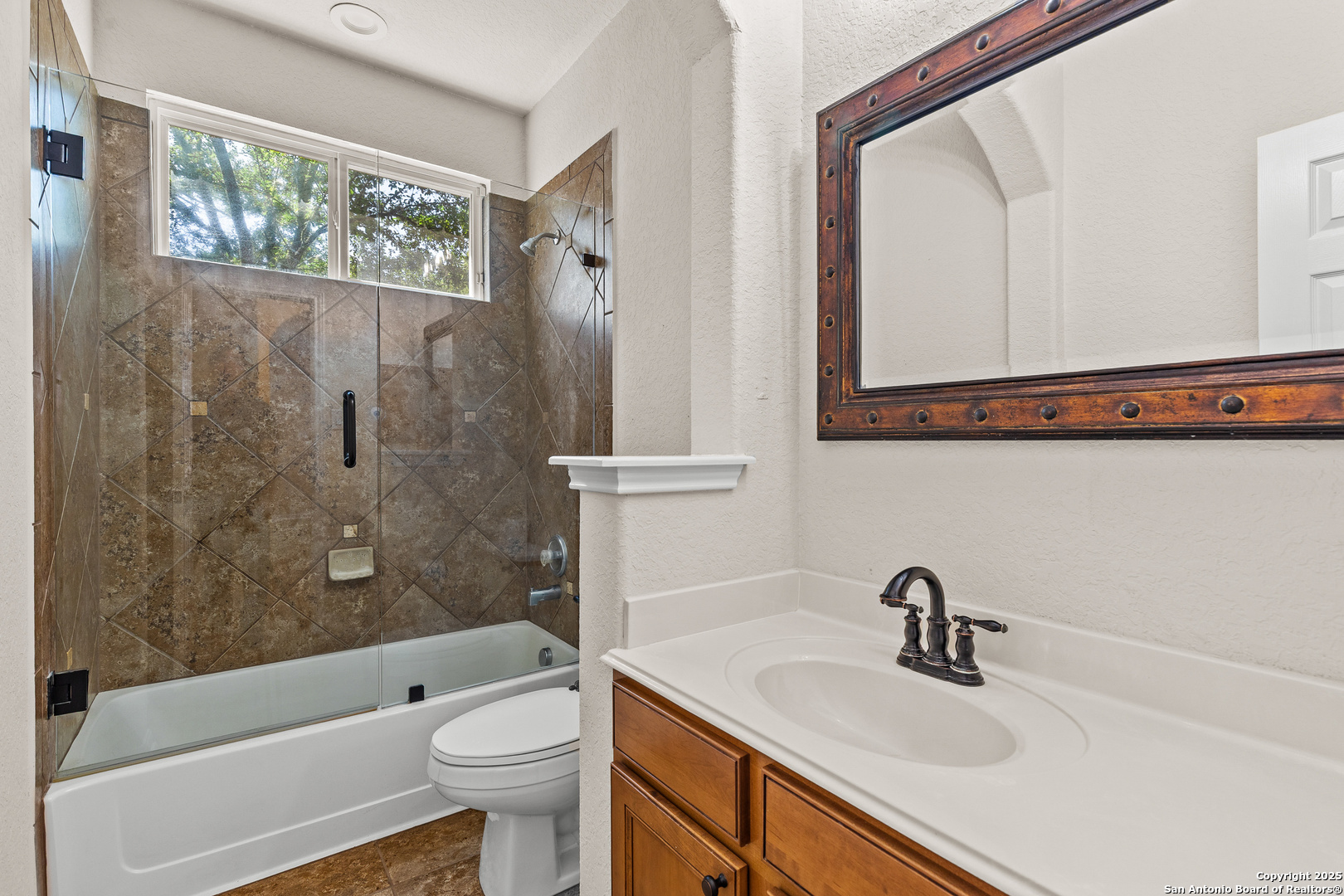 Your Private Oasis Awaits in a Secluded Enclave! Enclave at Riata Oaks! Welcome home to unparalleled privacy and luxury within a charming, secluded subdivision of just 54 homes! With 5 bedrooms, 4 full baths, and a 3-car garage, this home effortlessly combines elegance, comfort, and functionality.This magnificent 1.5-story residence offers everything you could desire and more, perfectly situated on a desirable corner lot with mature trees providing ample shade and beauty. Step inside through custom iron doors to discover a spacious and thoughtfully designed layout. The main level boasts four generously sized bedrooms, including a convenient guest suite with its own ensuite bathroom - perfect for visitors. You'll also find a dedicated office, featuring a matching custom iron door, ideal for remote work or quiet study. Meal times will be a delight, whether you're enjoying a casual bite in the charming breakfast nook or hosting elegant dinners in the separate formal dining room, complete with two built-in wine refrigerators - perfect for the discerning host! Kitchen boasts an island and Double Ovens. The heart of the home, the living room, is an entertainer's dream, wired for 7.2 surround sound with in-ceiling speakers to create an immersive audio experience. Cozy up by the elegant fireplace on cooler evenings. Upstairs, a massive media room awaits, complete with surround sound speakers - the ultimate space for movie nights or gaming marathons. 5th BR is off of media room with a large walk-in closet and a full bath upstairs. Ideal for multi family or a teen. Wood shutters and crown molding throughout. Outside, your private retreat continues! The expansive flagstone covered patio is home to a fantastic outdoor kitchen, ready for al fresco dining and entertaining. An accompanying deck offers additional space for relaxation and enjoyment of your beautifully landscaped yard. Practical updates include a roof and fence that are both only 3 years old, providing peace of mind for years to come. And the location couldn't be better! Enjoy the convenience of being just 5 minutes from a variety of shopping and dining options, as well as a local park. Plus, you're only 6 miles from Joint Base Randolph and benefit from quick access to major highways, making commutes a breeze. Zoned for sought after Schertz-Cibolo-Universal City ISD, with bus service.