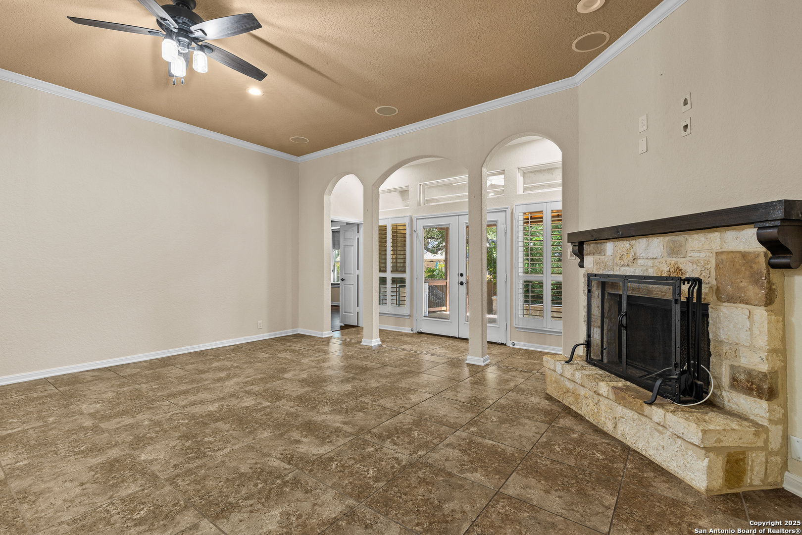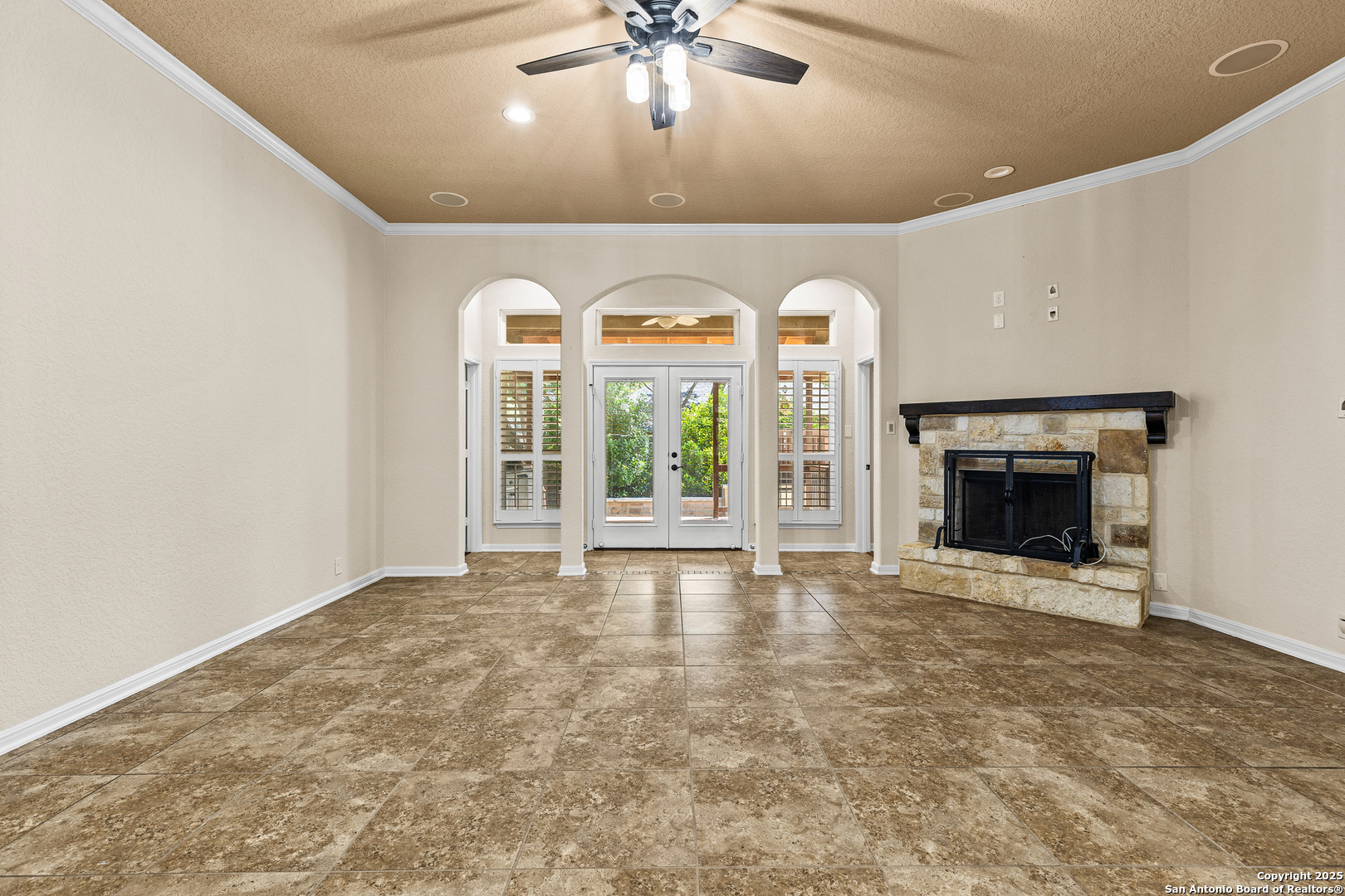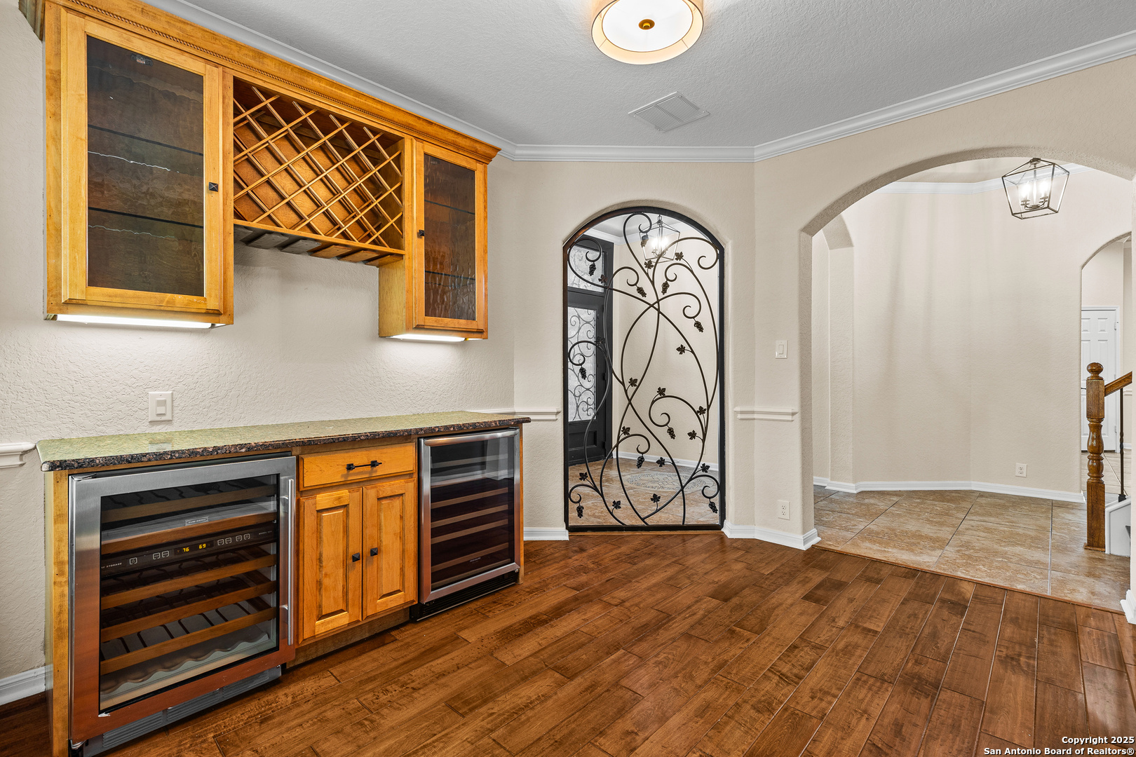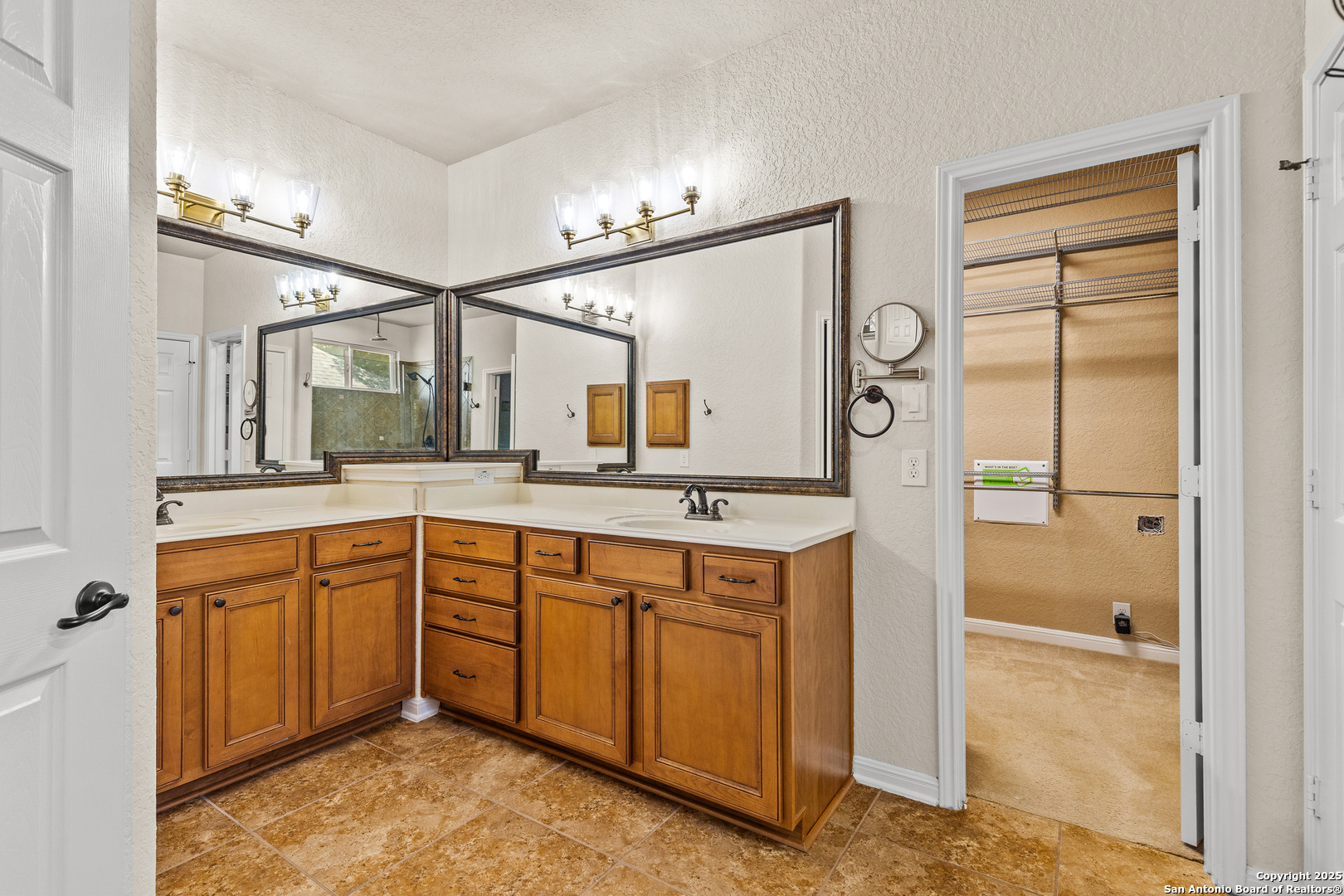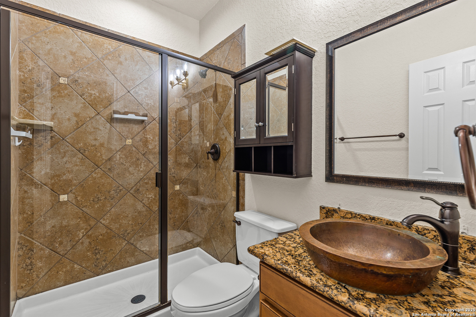 Your Private Oasis Awaits in a Secluded Enclave! Enclave at Riata Oaks! Welcome home to unparalleled privacy and luxury within a charming, secluded subdivision of just 54 homes! With 5 bedrooms, 4 full baths, and a 3-car garage, this home effortlessly combines elegance, comfort, and functionality.This magnificent 1.5-story residence offers everything you could desire and more, perfectly situated on a desirable corner lot with mature trees providing ample shade and beauty. Step inside through custom iron doors to discover a spacious and thoughtfully designed layout. The main level boasts four generously sized bedrooms, including a convenient guest suite with its own ensuite bathroom - perfect for visitors. You'll also find a dedicated office, featuring a matching custom iron door, ideal for remote work or quiet study. Meal times will be a delight, whether you're enjoying a casual bite in the charming breakfast nook or hosting elegant dinners in the separate formal dining room, complete with two built-in wine refrigerators - perfect for the discerning host! Kitchen boasts an island and Double Ovens. The heart of the home, the living room, is an entertainer's dream, wired for 7.2 surround sound with in-ceiling speakers to create an immersive audio experience. Cozy up by the elegant fireplace on cooler evenings. Upstairs, a massive media room awaits, complete with surround sound speakers - the ultimate space for movie nights or gaming marathons. 5th BR is off of media room with a large walk-in closet and a full bath upstairs. Ideal for multi family or a teen. Wood shutters and crown molding throughout. Outside, your private retreat continues! The expansive flagstone covered patio is home to a fantastic outdoor kitchen, ready for al fresco dining and entertaining. An accompanying deck offers additional space for relaxation and enjoyment of your beautifully landscaped yard. Practical updates include a roof and fence that are both only 3 years old, providing peace of mind for years to come. And the location couldn't be better! Enjoy the convenience of being just 5 minutes from a variety of shopping and dining options, as well as a local park. Plus, you're only 6 miles from Joint Base Randolph and benefit from quick access to major highways, making commutes a breeze. Zoned for sought after Schertz-Cibolo-Universal City ISD, with bus service.