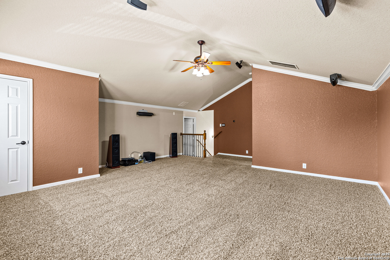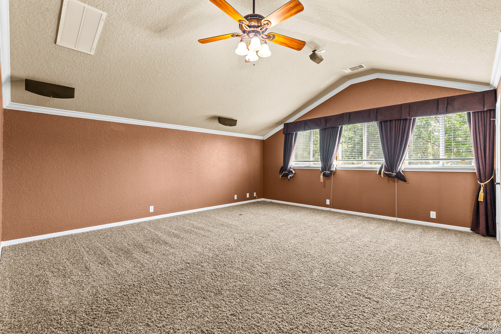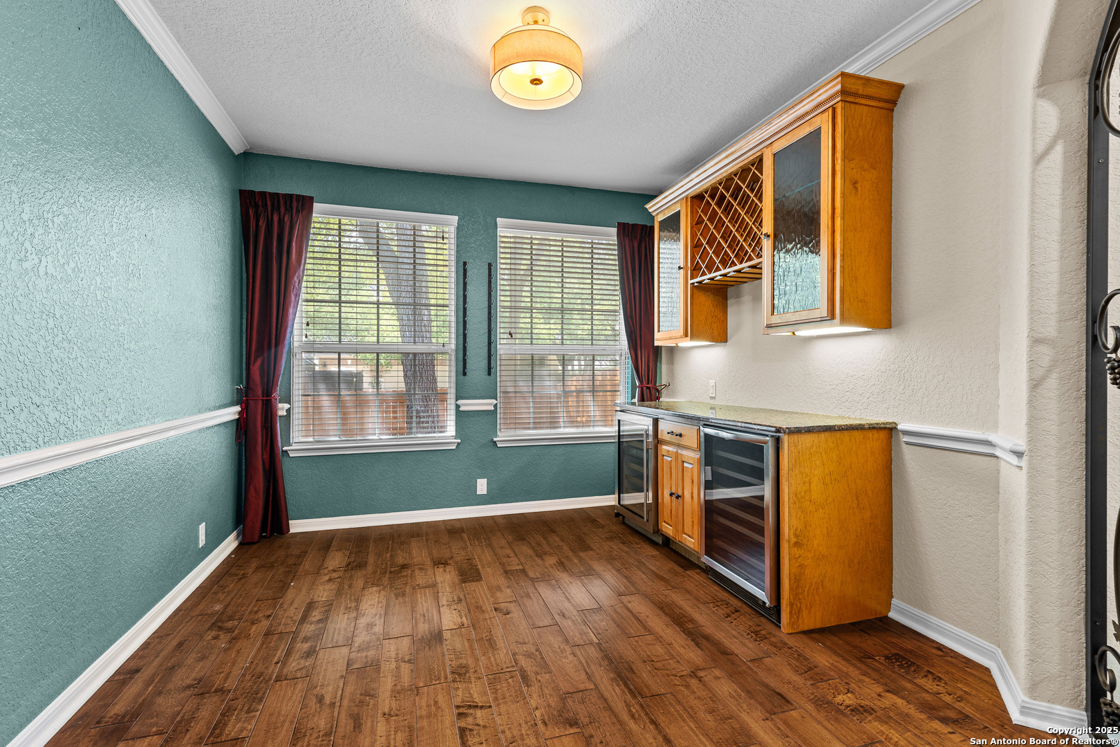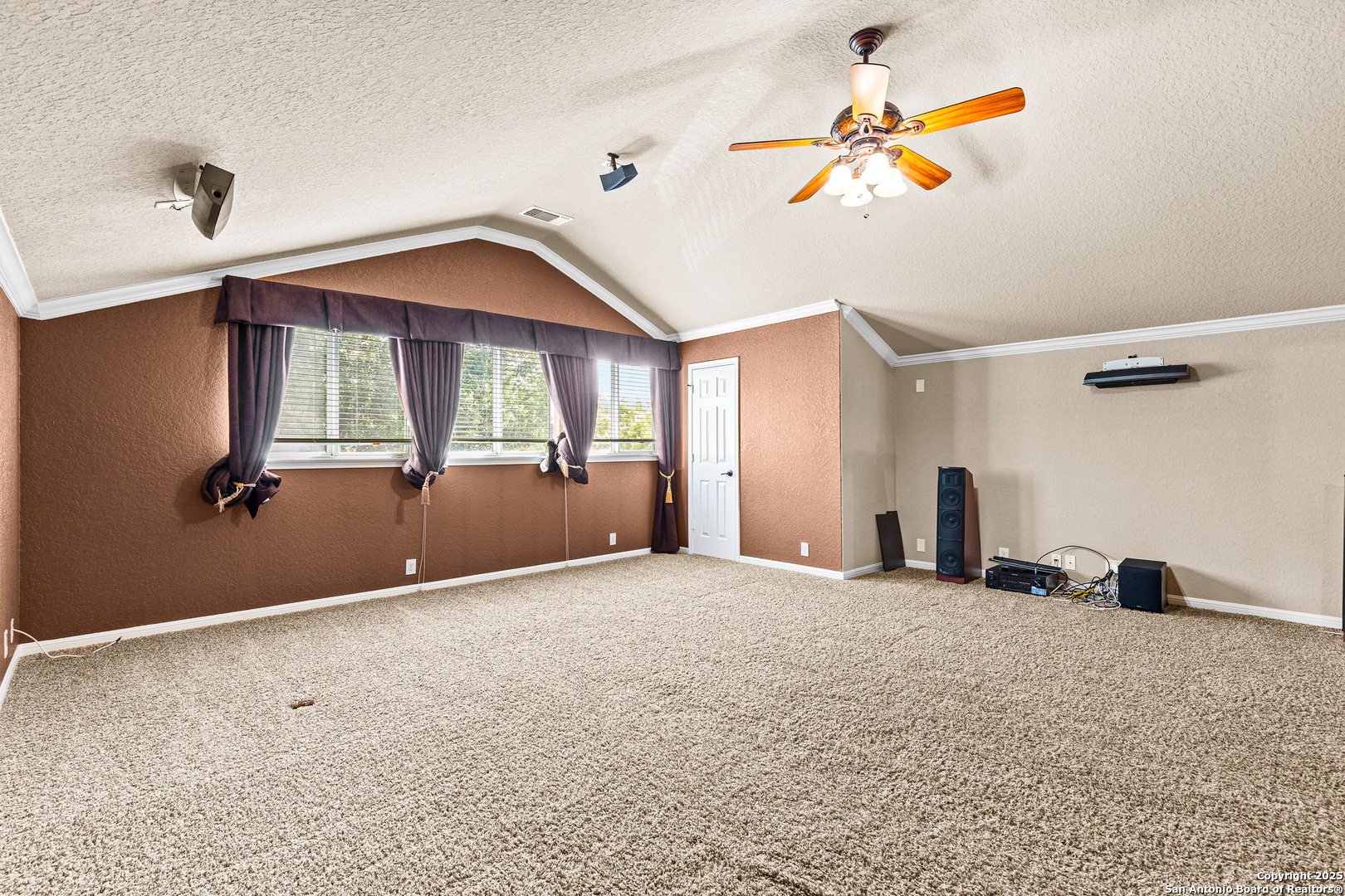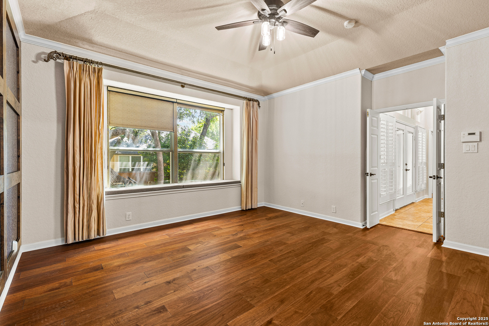 Your Private Oasis Awaits in a Secluded Enclave! Enclave at Riata Oaks! Welcome home to unparalleled privacy and luxury within a charming, secluded subdivision of just 54 homes! With 5 bedrooms, 4 full baths, and a 3-car garage, this home effortlessly combines elegance, comfort, and functionality.This magnificent 1.5-story residence offers everything you could desire and more, perfectly situated on a desirable corner lot with mature trees providing ample shade and beauty. Step inside through custom iron doors to discover a spacious and thoughtfully designed layout. The main level boasts four generously sized bedrooms, including a convenient guest suite with its own ensuite bathroom - perfect for visitors. You'll also find a dedicated office, featuring a matching custom iron door, ideal for remote work or quiet study. Meal times will be a delight, whether you're enjoying a casual bite in the charming breakfast nook or hosting elegant dinners in the separate formal dining room, complete with two built-in wine refrigerators - perfect for the discerning host! Kitchen boasts an island and Double Ovens. The heart of the home, the living room, is an entertainer's dream, wired for 7.2 surround sound with in-ceiling speakers to create an immersive audio experience. Cozy up by the elegant fireplace on cooler evenings. Upstairs, a massive media room awaits, complete with surround sound speakers - the ultimate space for movie nights or gaming marathons. 5th BR is off of media room with a large walk-in closet and a full bath upstairs. Ideal for multi family or a teen. Wood shutters and crown molding throughout. Outside, your private retreat continues! The expansive flagstone covered patio is home to a fantastic outdoor kitchen, ready for al fresco dining and entertaining. An accompanying deck offers additional space for relaxation and enjoyment of your beautifully landscaped yard. Practical updates include a roof and fence that are both only 3 years old, providing peace of mind for years to come. And the location couldn't be better! Enjoy the convenience of being just 5 minutes from a variety of shopping and dining options, as well as a local park. Plus, you're only 6 miles from Joint Base Randolph and benefit from quick access to major highways, making commutes a breeze. Zoned for sought after Schertz-Cibolo-Universal City ISD, with bus service.