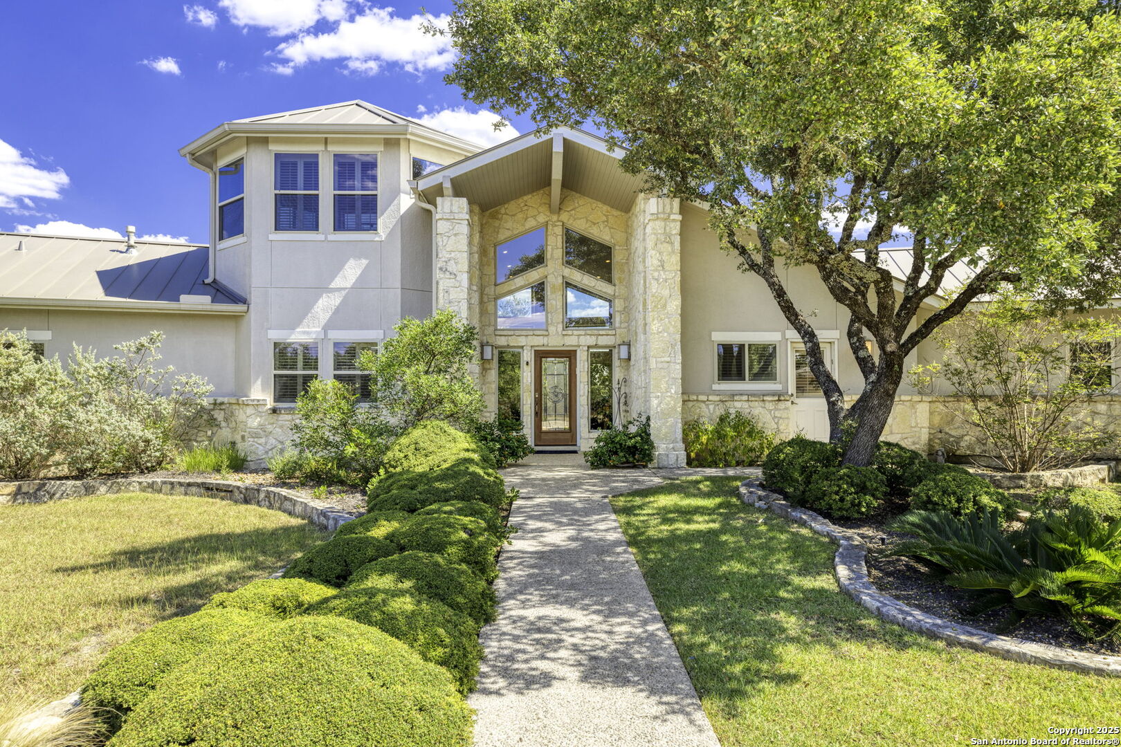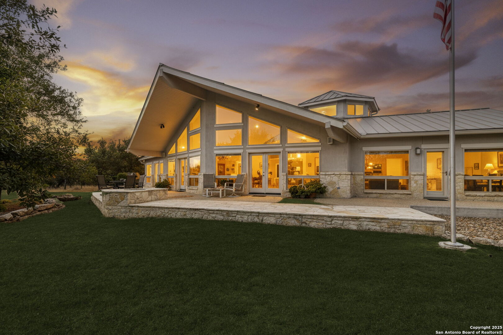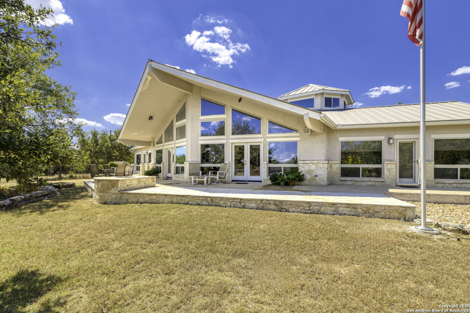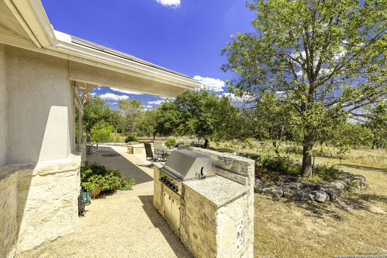 Welcome to true Texas Hill Country living! This one-of-a-kind home was custom designed with the help of the only Owner the home has had, built with custom features throughout and set into a little more than 3.5 acres to perfectly blend with the natural surroundings. A soaring entrance invites you into this open layout high ceiling inviting floorplan designed for maximum ability to capture the natural beauty with its amazing window designs and views from every room along with custom built-ins throughout. Designed for ultimate entertaining with its living/dining/kitchen layout, these areas are appointed with custom built-ins, custom lighting, a custom kitchen layout that includes Thermador/Bosch/Kitchen Aid appliances topped off by gas cooking being made available with natural propane to the home. Something here for everyone! Primary suite and Primary suite 2 are both laid out with full bathrooms, walk in closets and those windows aforementioned giving you that view to the outdoor entertaining area that includes a large, covered patio, fire pit and gas grill built in for those nights where a good grilled steak is just what's needed. If working from home is your need, not only one area, but a second in the custom loft is available or perhaps use it for a good card game table and gathering of friends. The options are endless, and this custom one-of-a-kind design is ready for its next chapter. Maybe that's you so, come see it today and Welcome, to Texas Hill Country living.