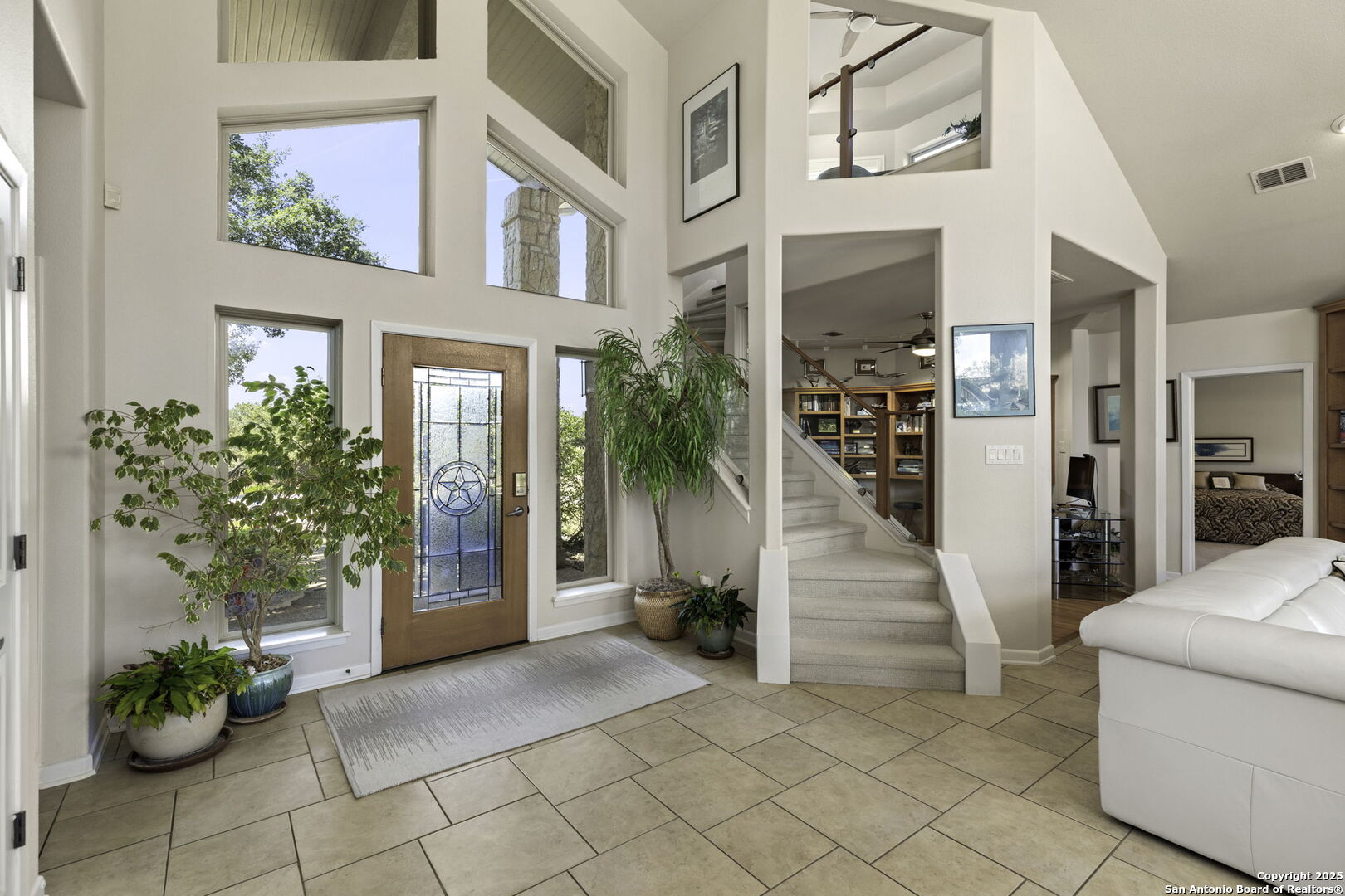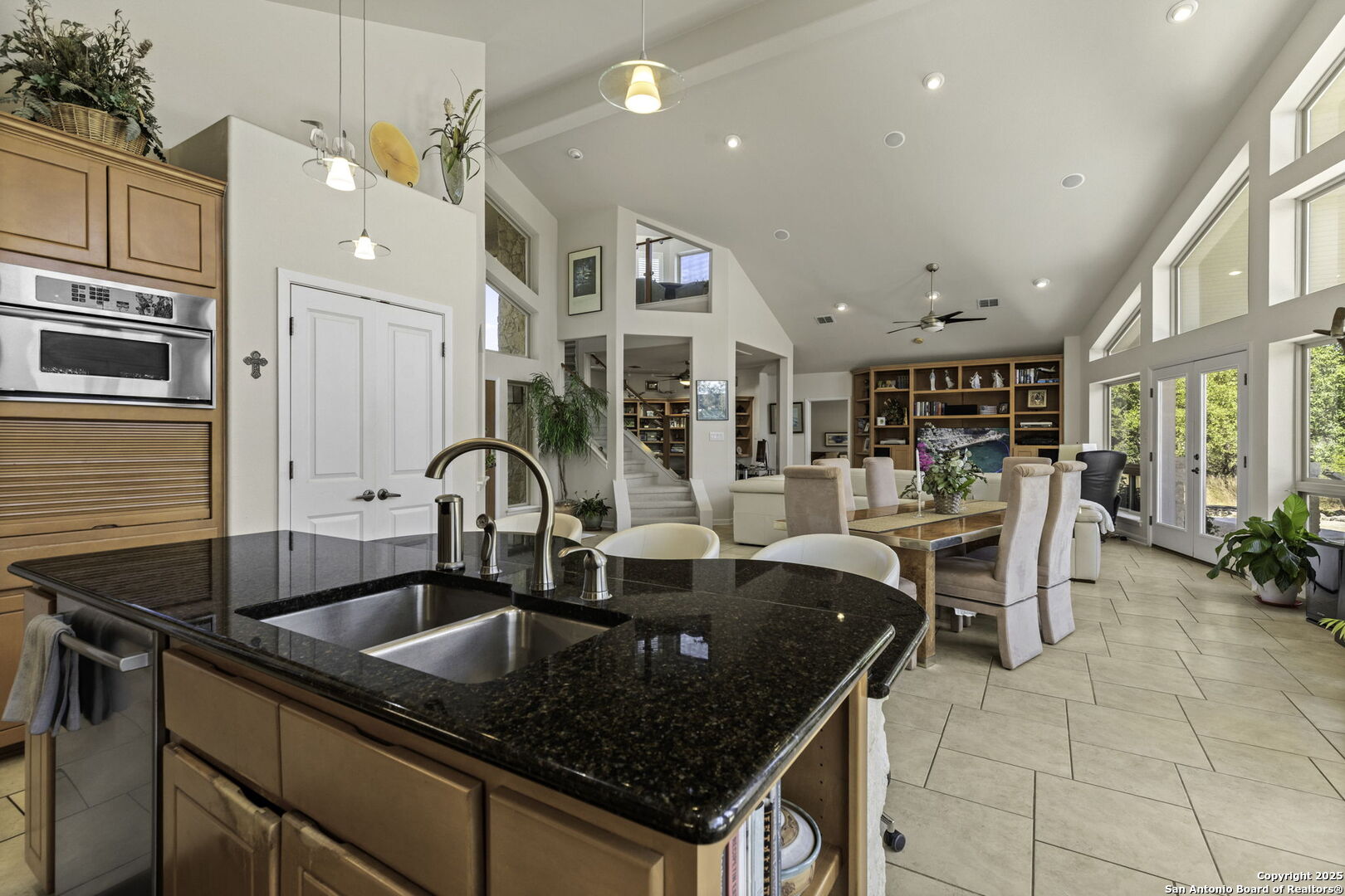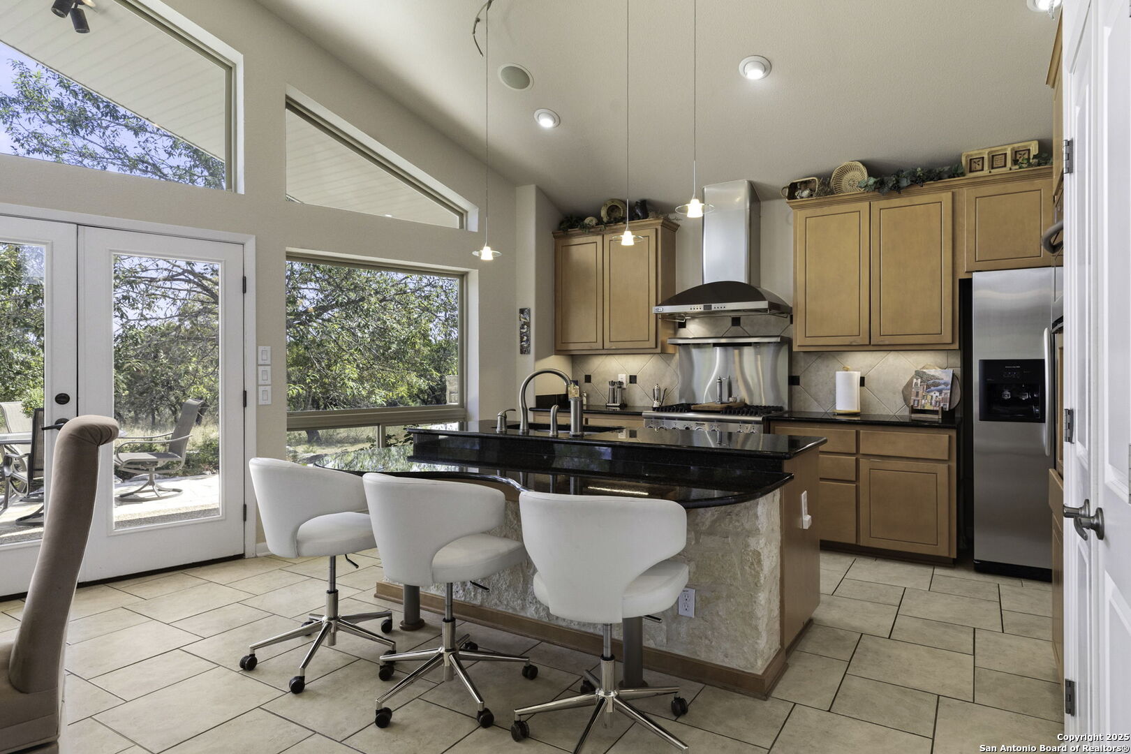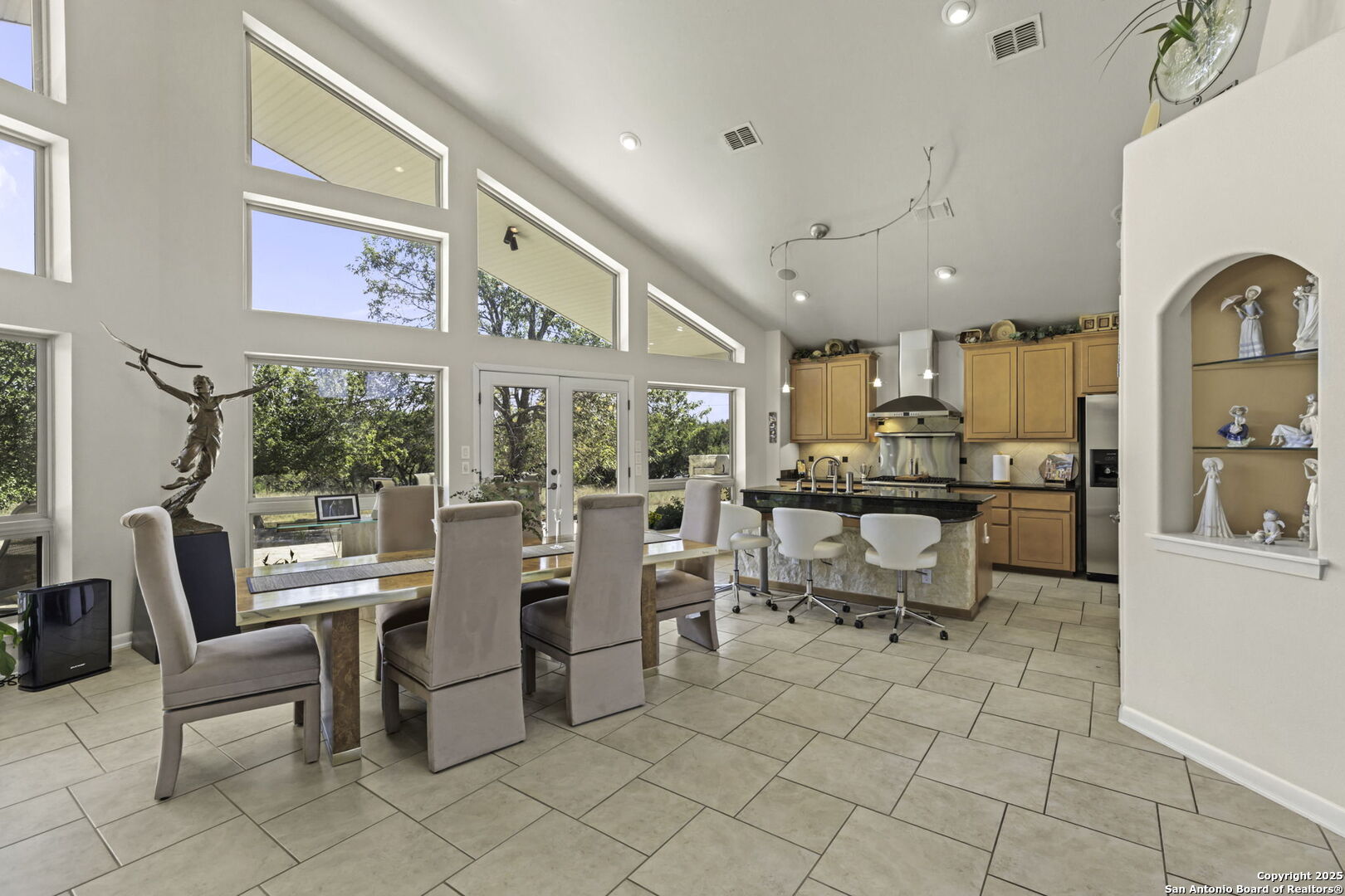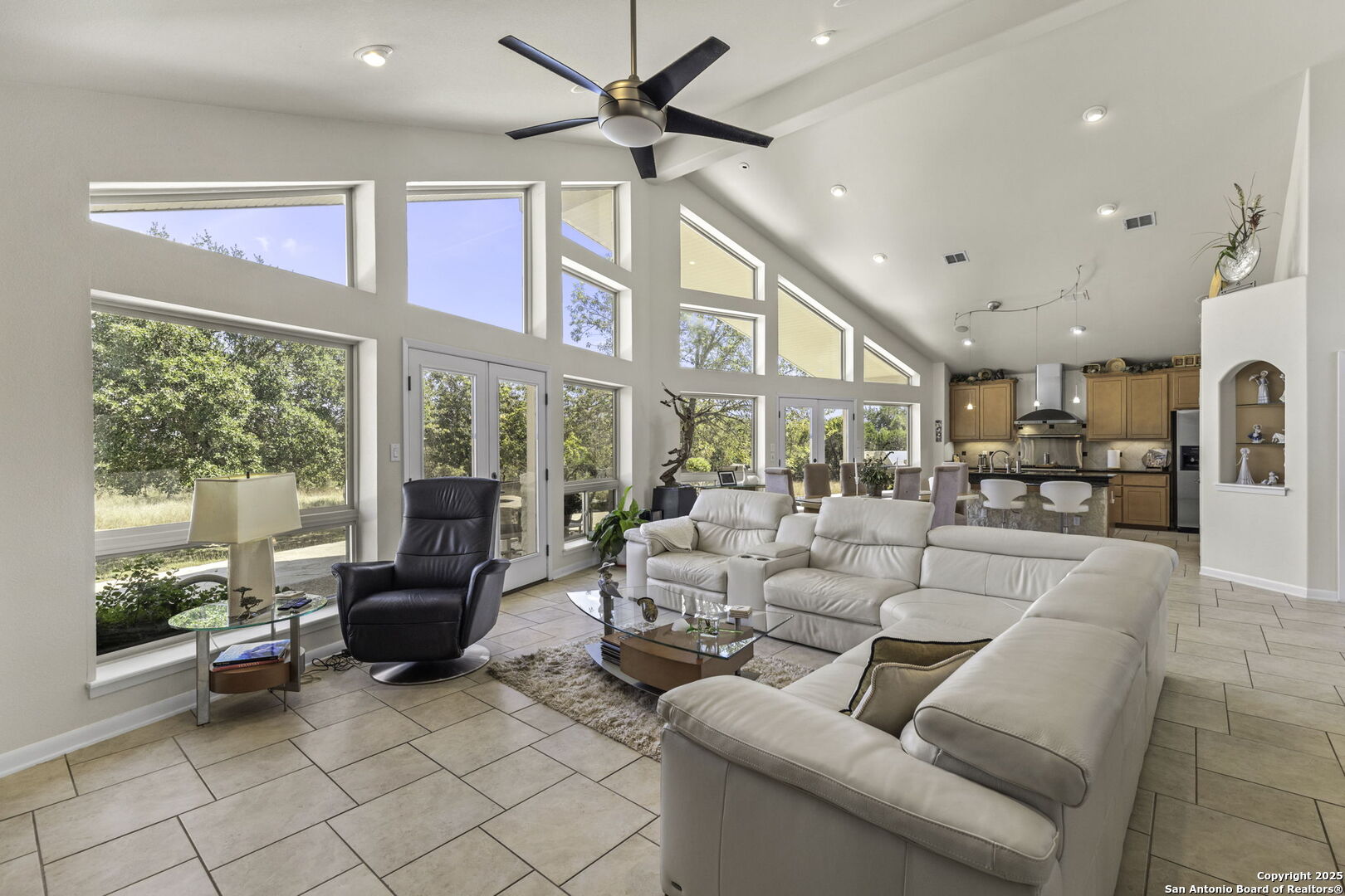 Welcome to true Texas Hill Country living! This one-of-a-kind home was custom designed with the help of the only Owner the home has had, built with custom features throughout and set into a little more than 3.5 acres to perfectly blend with the natural surroundings. A soaring entrance invites you into this open layout high ceiling inviting floorplan designed for maximum ability to capture the natural beauty with its amazing window designs and views from every room along with custom built-ins throughout. Designed for ultimate entertaining with its living/dining/kitchen layout, these areas are appointed with custom built-ins, custom lighting, a custom kitchen layout that includes Thermador/Bosch/Kitchen Aid appliances topped off by gas cooking being made available with natural propane to the home. Something here for everyone! Primary suite and Primary suite 2 are both laid out with full bathrooms, walk in closets and those windows aforementioned giving you that view to the outdoor entertaining area that includes a large, covered patio, fire pit and gas grill built in for those nights where a good grilled steak is just what's needed. If working from home is your need, not only one area, but a second in the custom loft is available or perhaps use it for a good card game table and gathering of friends. The options are endless, and this custom one-of-a-kind design is ready for its next chapter. Maybe that's you so, come see it today and Welcome, to Texas Hill Country living.