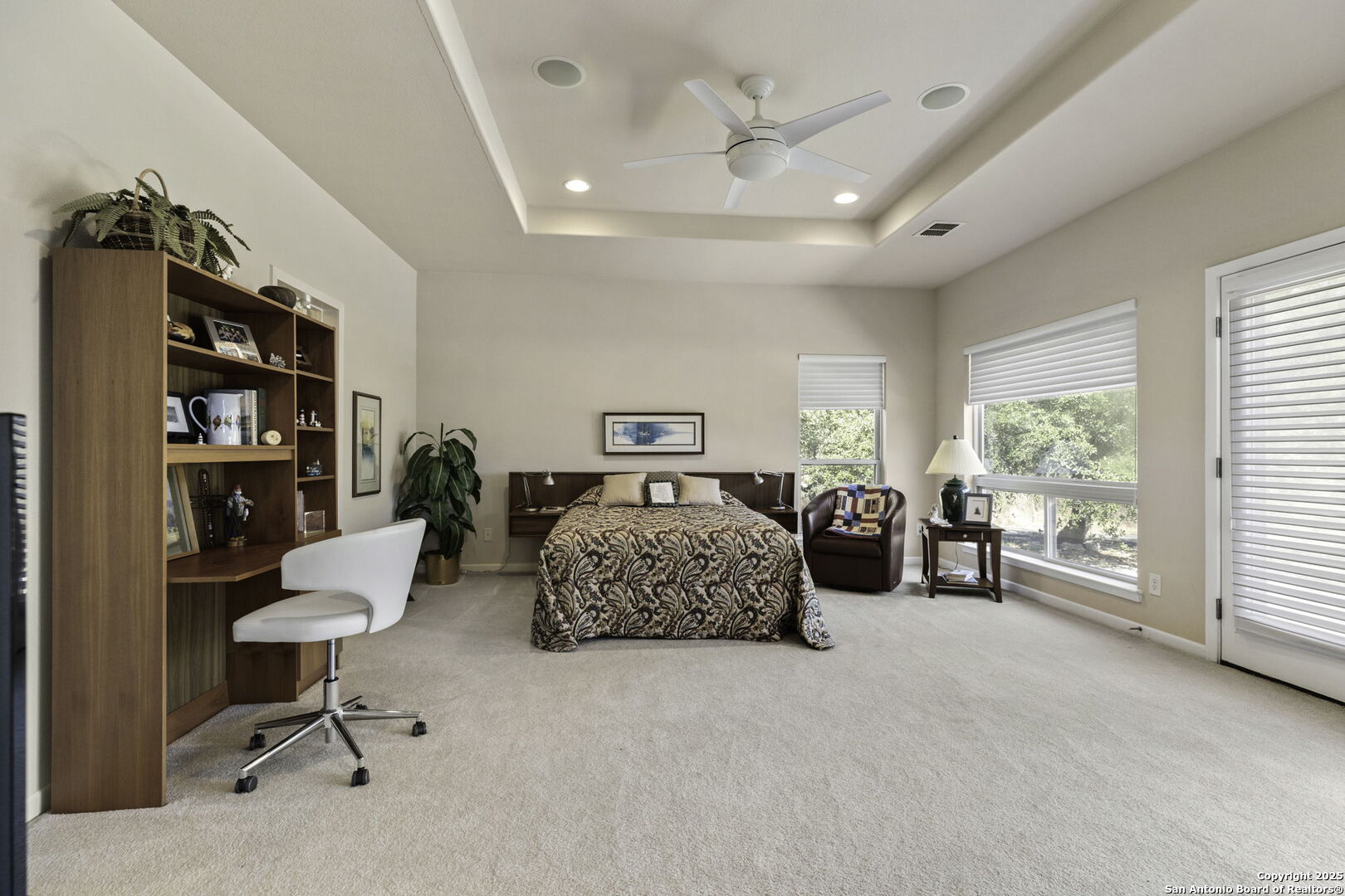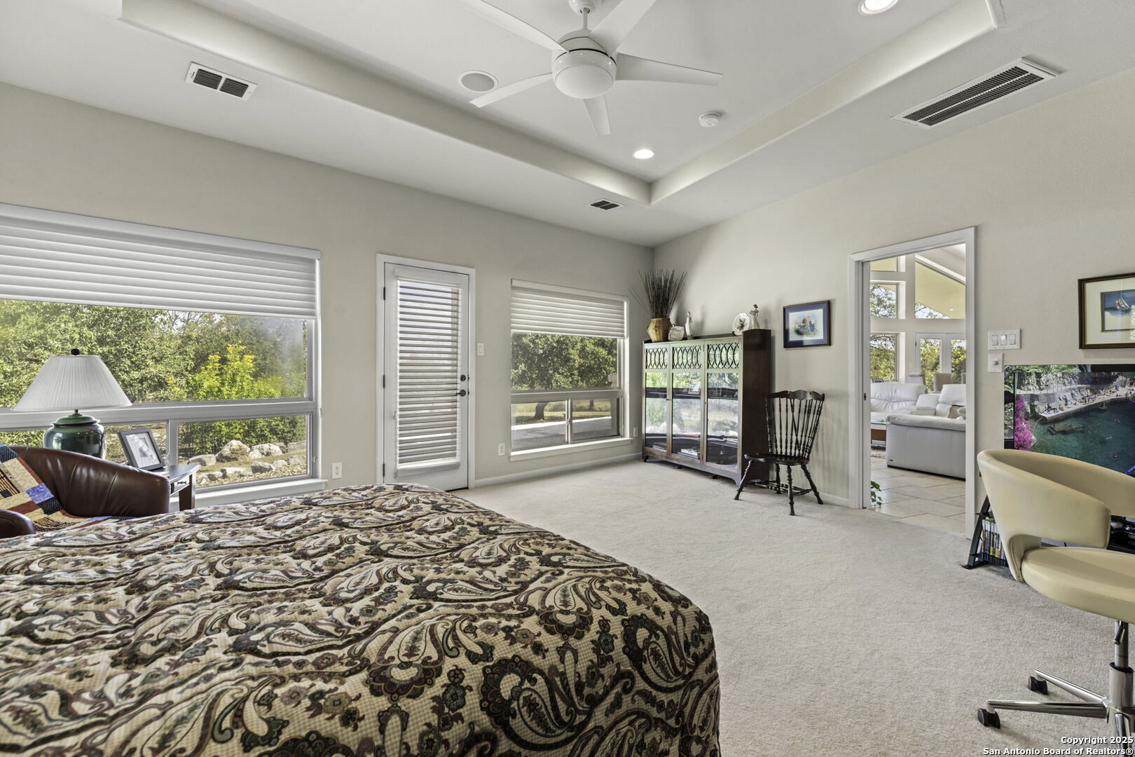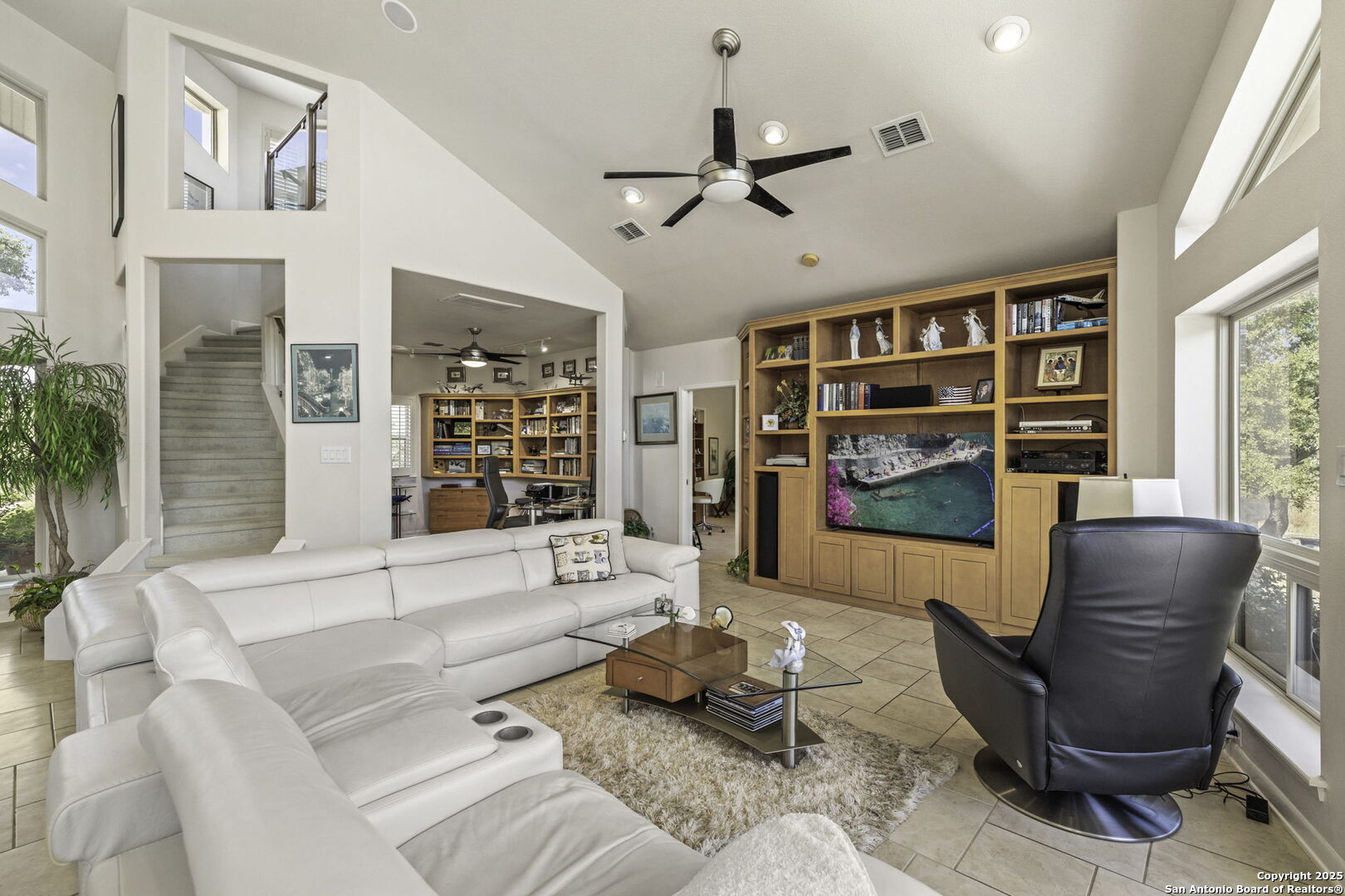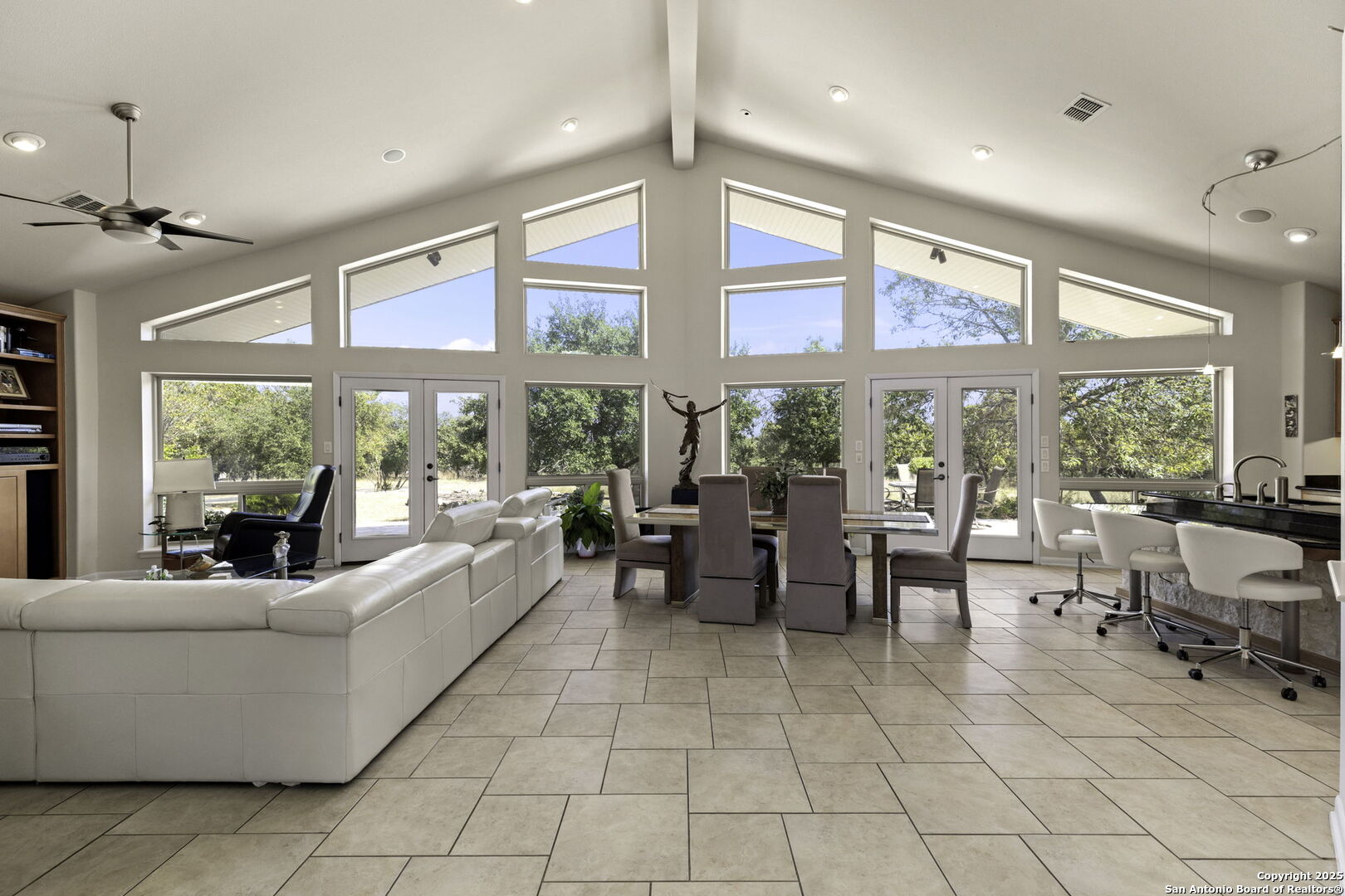 Welcome to true Texas Hill Country living! This one-of-a-kind home was custom designed with the help of the only Owner the home has had, built with custom features throughout and set into a little more than 3.5 acres to perfectly blend with the natural surroundings. A soaring entrance invites you into this open layout high ceiling inviting floorplan designed for maximum ability to capture the natural beauty with its amazing window designs and views from every room along with custom built-ins throughout. Designed for ultimate entertaining with its living/dining/kitchen layout, these areas are appointed with custom built-ins, custom lighting, a custom kitchen layout that includes Thermador/Bosch/Kitchen Aid appliances topped off by gas cooking being made available with natural propane to the home. Something here for everyone! Primary suite and Primary suite 2 are both laid out with full bathrooms, walk in closets and those windows aforementioned giving you that view to the outdoor entertaining area that includes a large, covered patio, fire pit and gas grill built in for those nights where a good grilled steak is just what's needed. If working from home is your need, not only one area, but a second in the custom loft is available or perhaps use it for a good card game table and gathering of friends. The options are endless, and this custom one-of-a-kind design is ready for its next chapter. Maybe that's you so, come see it today and Welcome, to Texas Hill Country living.