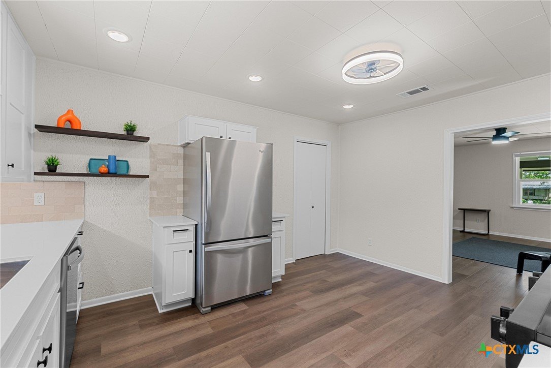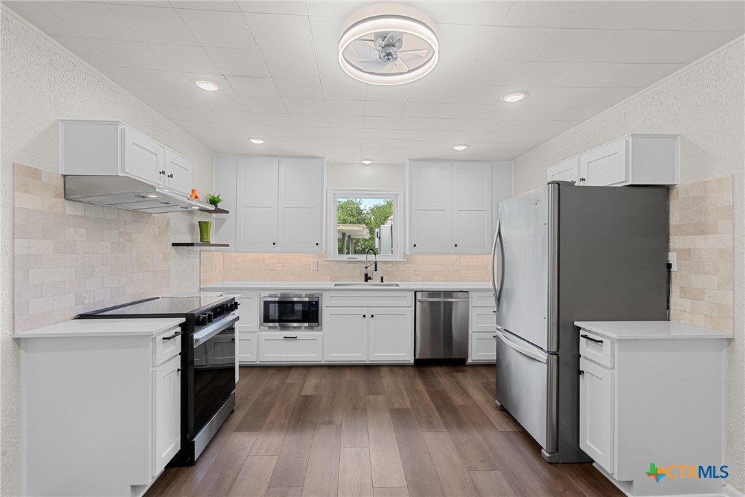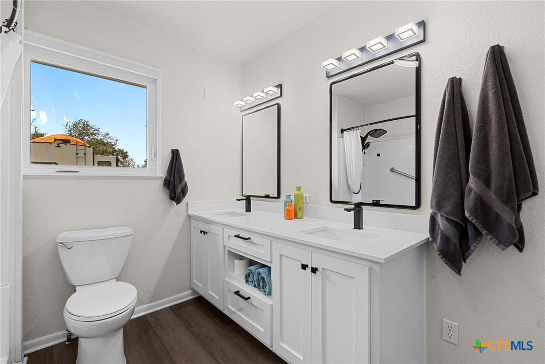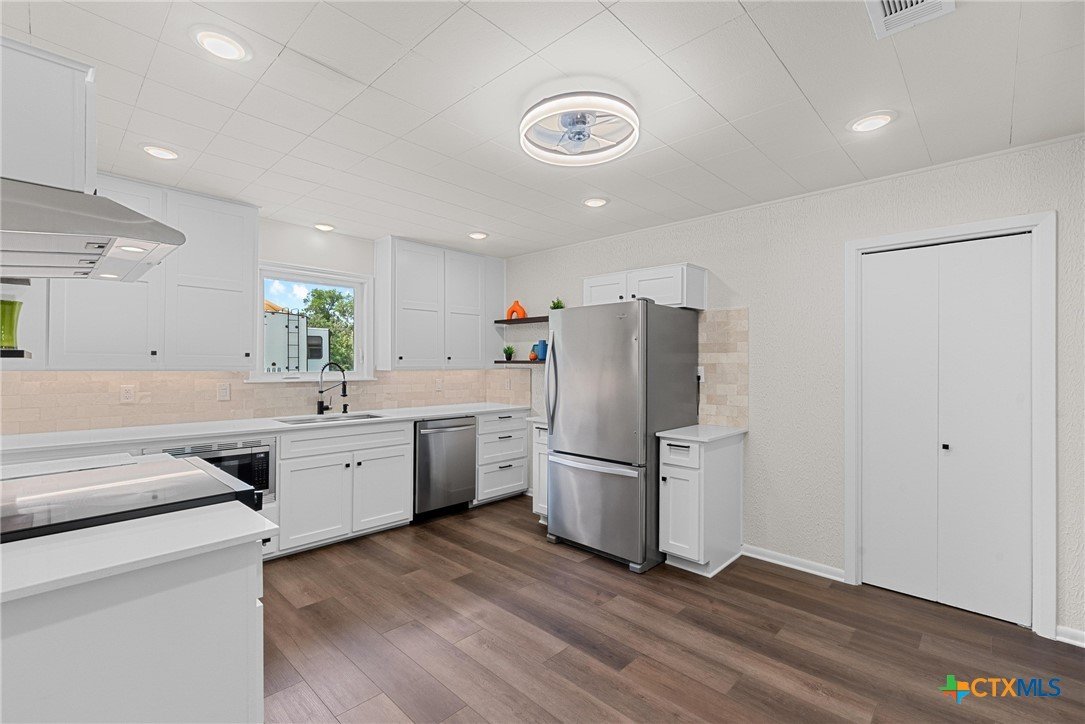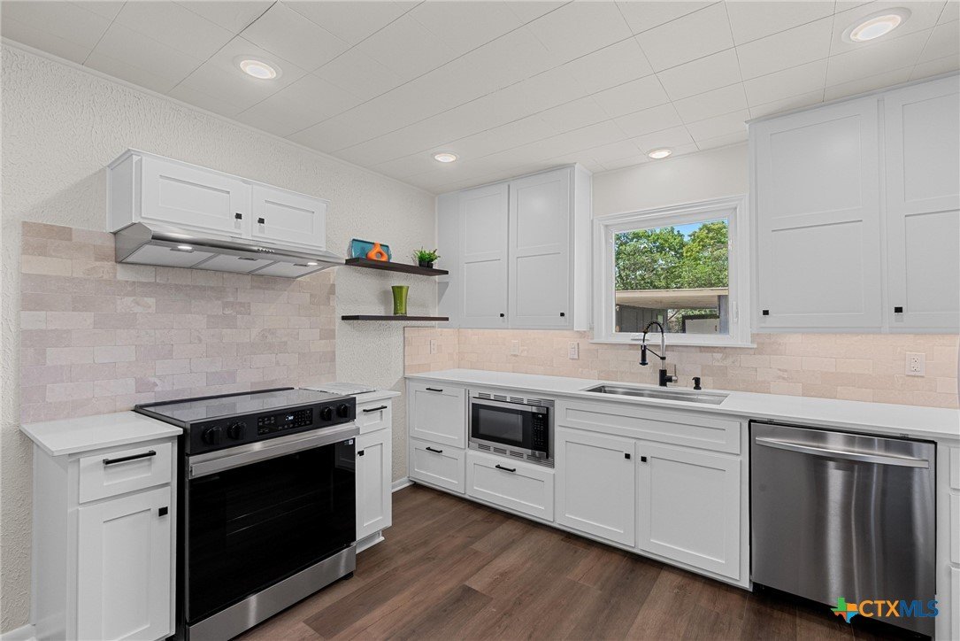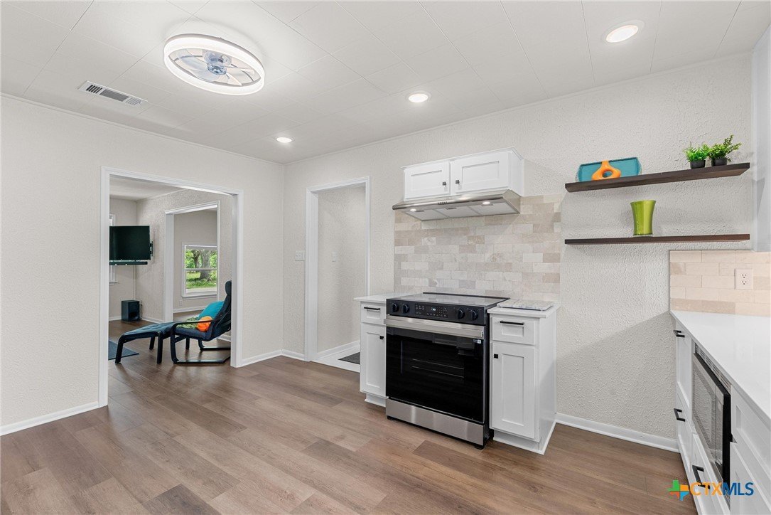 Welcome to 210 Fallwell St, Liberty Hill, TX 78642, a beautifully renovated 2-bedroom home with a bonus room, 1 bathroom, and 1,495 sq ft of flexible living space on a fully fenced 0.43-acre lot. Zoned SF3, this property is perfect for residential living, a home-based business, or investment opportunities. Inside, you'll find fresh updates throughout: new luxury vinyl waterproof flooring, new modern interior paint, and a fully remodeled kitchen with custom soft-close cabinets, natural stone tile backsplash, and brand-new appliances. The spacious bathroom features dual sinks, soft close custom cabinetry, and options to easily add a second bath. The home includes two large bedrooms, three walk-in closets, a versatile bonus room that could serve as a dining room, game room, third bedroom or office. Step outside and enjoy major upgrades including a metal roof (2016), energy-efficient windows (2021/2023), a updated HVAC system, new gutters, decks, railings, and fresh exterior paint (2024–2025). The property features two gates — one 16' and one 12' with remote access — and plenty of room for an RV, boat, or extra parking. There's also a 50 AMP hookup for an RV or electric vehicle. Need workshop or storage space? The 20x30 carport and 12x30 shop includes its own 50 AMP service and is perfect for hobbies, tools, or covered parking. Location is everything, and this home is within walking distance to downtown Liberty Hill, local restaurants, charming boutiques, the Liberty Hill Farmers Market, seasonal festivals, and the Wetzel Park Splash Pad — a favorite for families in the summer. Whether you're looking to live, work, or invest, this unique and well-maintained property offers unbeatable value and versatility in the heart of Liberty Hill.