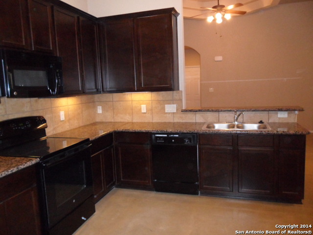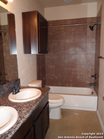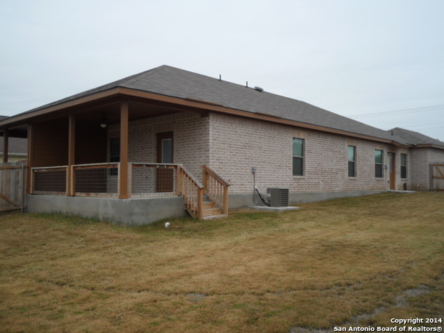 Nice duplex conveniently located in the Hwy 46/I-35 area. Home is clean & has been well maintained. Single level living w/high ceilings & stained concrete floors - no carpet! Open kitchen w/granite counters. Microwave & blinds included. Master bedroom has walk-in closet & relaxing covered patio. Master Bath w/double vanity & tub/shower. Double car garage w/opener. Nice yard w/privacy fence. Tenant is responsible for yard maintenance. Frig, washer/dryer are NOT included. 1 small pet (dog or cat) may be allowed w/owner approval, but no large breed dogs, please!