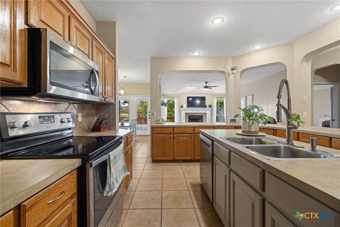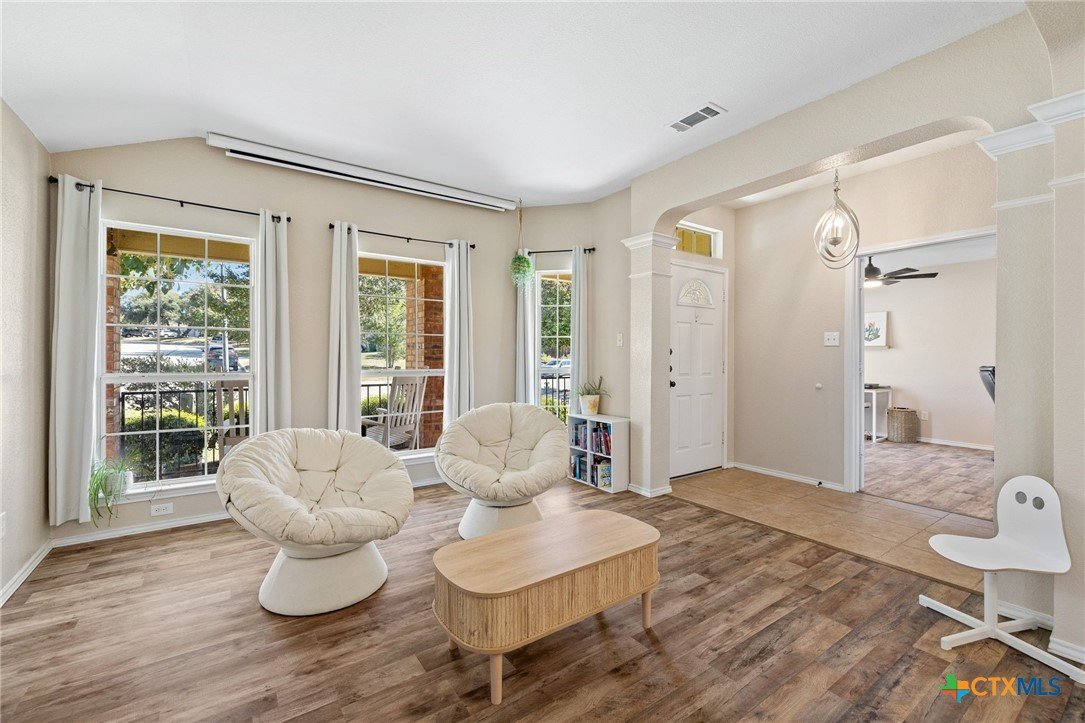 Welcome home to this warm and inviting single-story residence offering 4 bedrooms (with one thoughtfully designed as a private study featuring elegant French doors) and 2 full bathrooms. Wide, open walkways create a spacious flow throughout, connecting multiple living areas perfect for relaxing or entertaining. The expansive kitchen is a true centerpiece—complete with a large island, stainless steel appliances, generous storage, and plenty of room to gather. The living spaces are bright and comfortable, offering flexibility for everyday living. Step outside to the covered back deck overlooking Purser Family Park—your own peaceful backdrop with direct access to trails, green space, and nature. Whether you're enjoying your morning coffee or hosting guests, this outdoor retreat is a standout feature. This home blends comfort, style, and location seamlessly. A must-see!