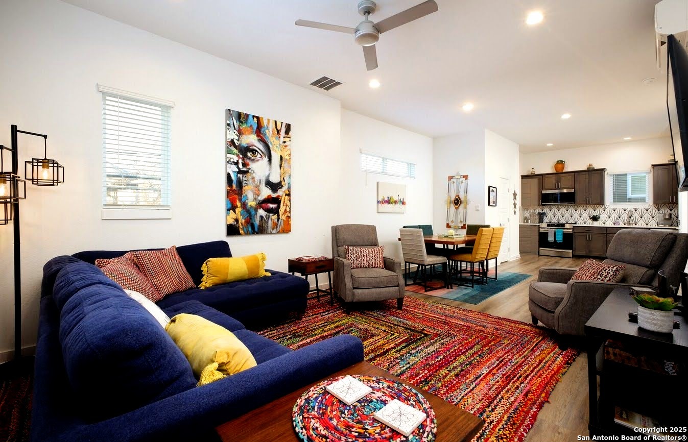 Available January 2026! Fully furnished 3 bed, 3.5 bath Tri-level Condo, individually situated in the community unattached to other units, located in very close proximity to San Antonio's most historical spots which includes the River Walk, The Alamo, and The Pearl Brewery! Enjoy the modern style of comfortable furnishings creating a relaxing retreat for even the busiest lifestyles. Every bedroom has its own full bathroom, a sectional size sofa with hide-a-way bed in the living area, a formal dining table seating up to six people for meal times, a fully furnished open kitchen with walk-in pantry for quick or elaborate meal preparations, half bath on second level, one bedroom on first level (equipped with a desk) and two bedrooms on third level, a stacked, front load washer & dryer, one car attached garage with storage, security system, and high speed internet access. Pet Friendly with approval (Pet screening required). The community has a dog park as well as Crockett Park being one block away. Even when you choose to drive instead of walk you are conveniently located near IH 35 & IH 10 with short distances to HWY 281 and Hwy 37. Notably nearby are downtown hospitals, shopping, universities, Air Force & Army bases, and the San Antonio Airport. Schedule a showing today!