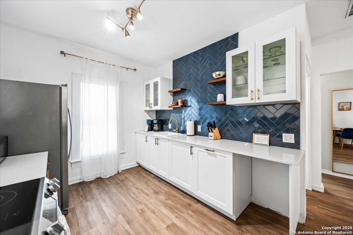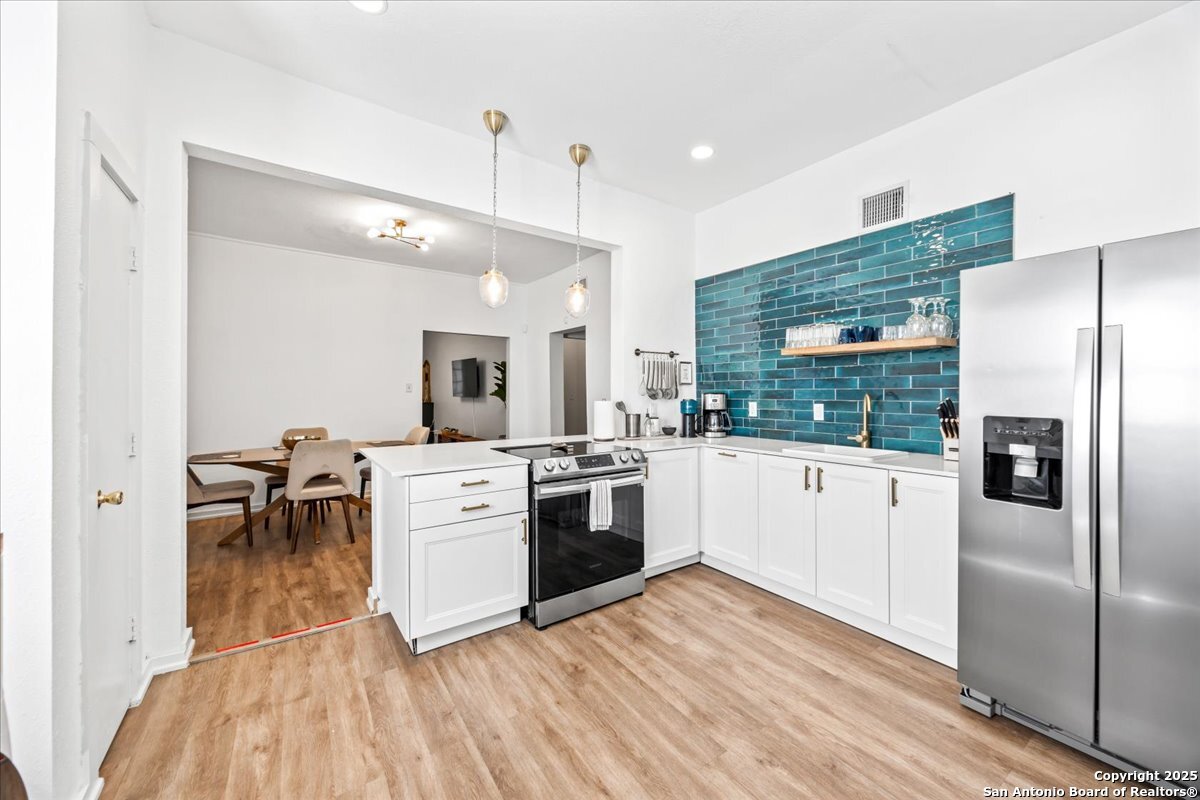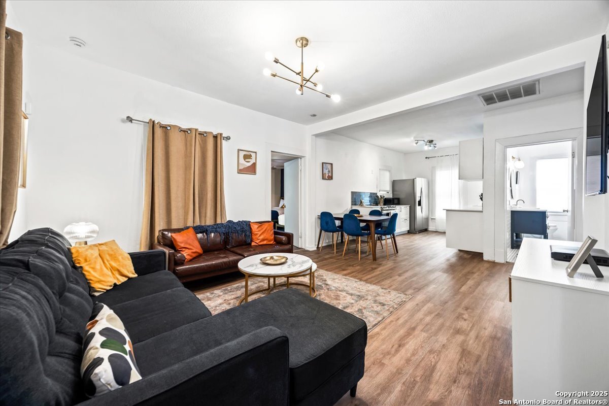 Don't miss this incredible opportunity to own a beautiful newly renovated duplex. Perfectly positioned within walking distance of Lone Star Brewery, Roosevelt Park, the Art Complex, and the vibrant King William District, this property places you just minutes from the Riverwalk, Hemisfair Park, La Villita, and all the best that downtown San Antonio has to offer. This duplex combines historic charm with modern upgrades, featuring new flooring, remodeled bathrooms, stylish new cabinets, granite countertops, updated AC units, a newer roof, and a wrought iron fence that adds both security and curb appeal. Whether you're looking to live in one unit and rent the other, expand your rental portfolio, or invest in a prime location near downtown, this property checks all the boxes for flexibility and convenience. Schedule your showing today - opportunities like this don't last long!